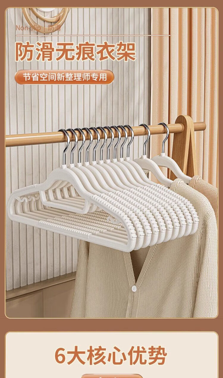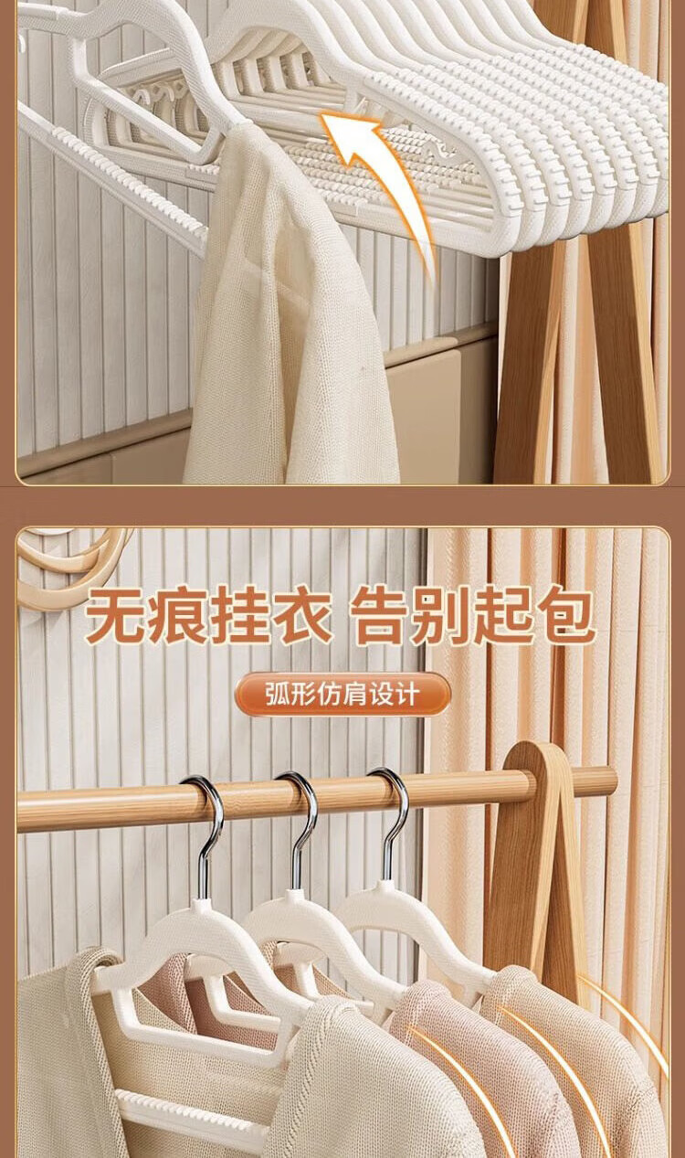 百易特无痕防滑衣架家用衣架防肩角不起包晾衣服撑子整理师专用挂衣收纳 简约白【升级款/省空间】 40支