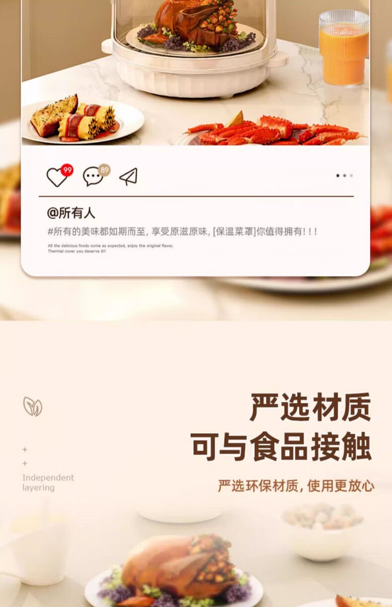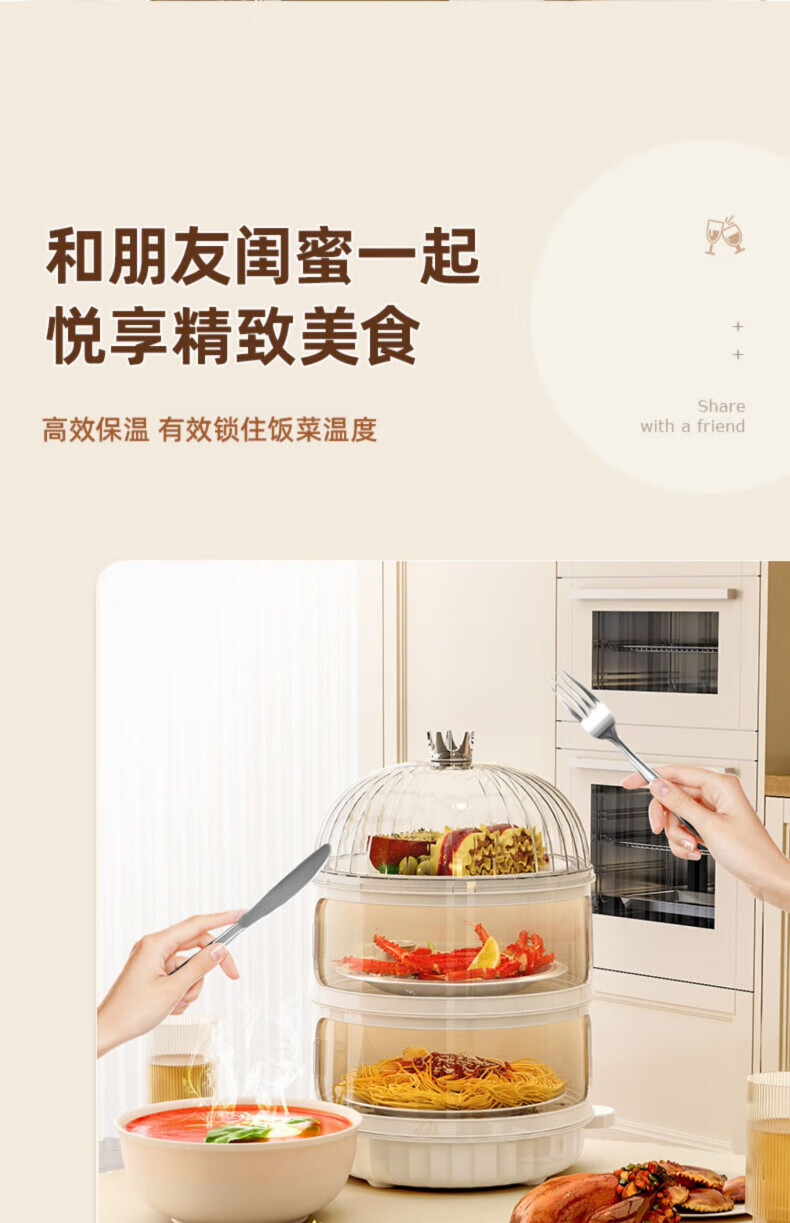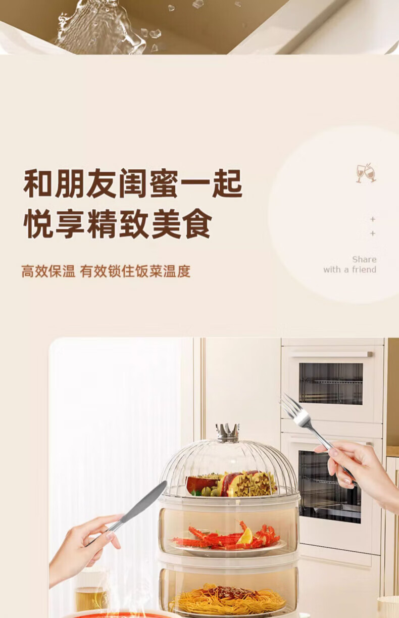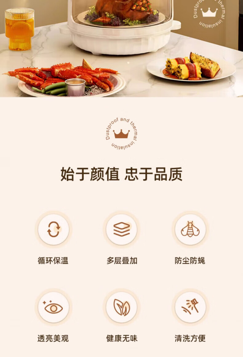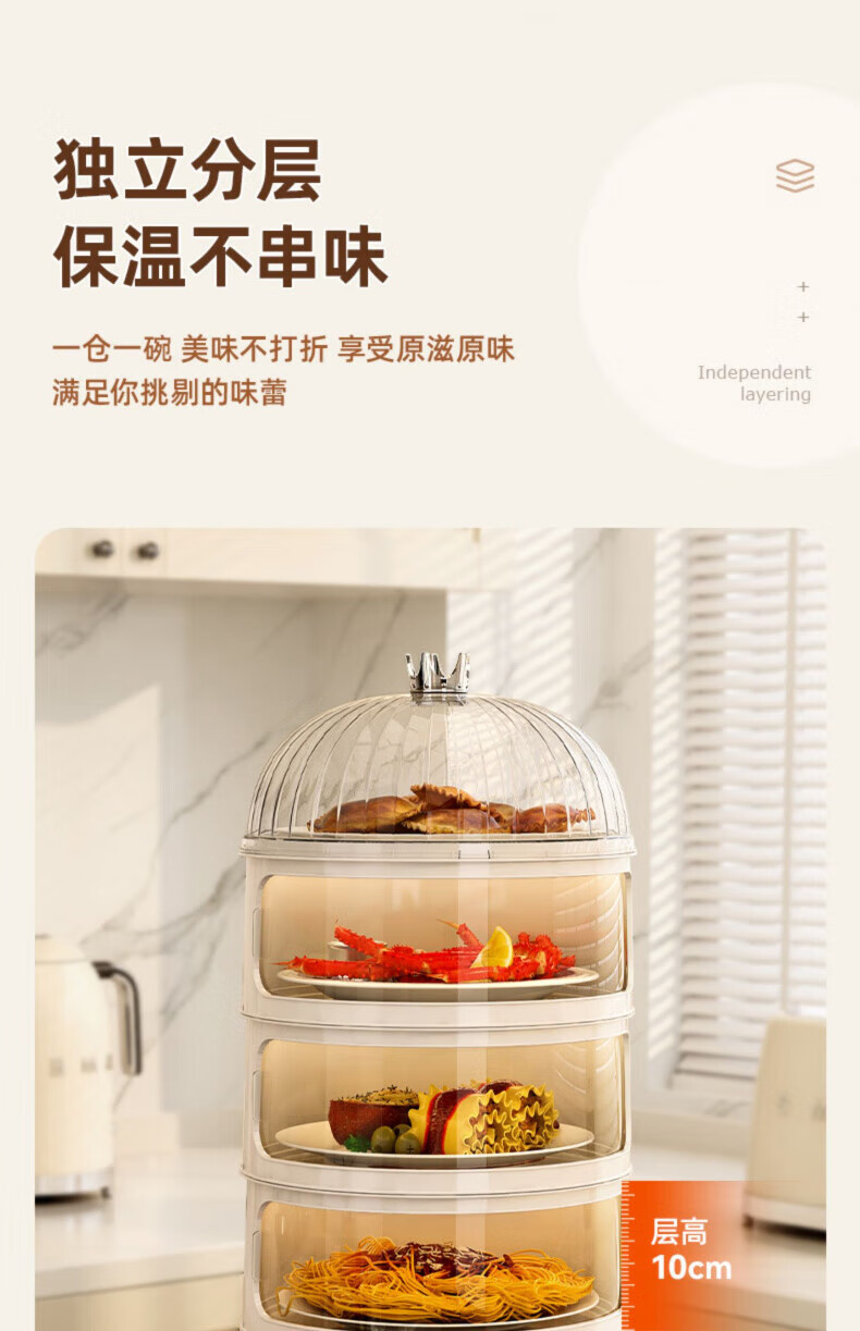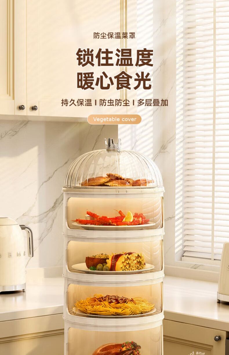 WCZ德国冬季天保温餐桌罩饭菜罩家用多层菜罩2025新款神器保温箱收纳 加高五层+保温底座食品级认证省空间