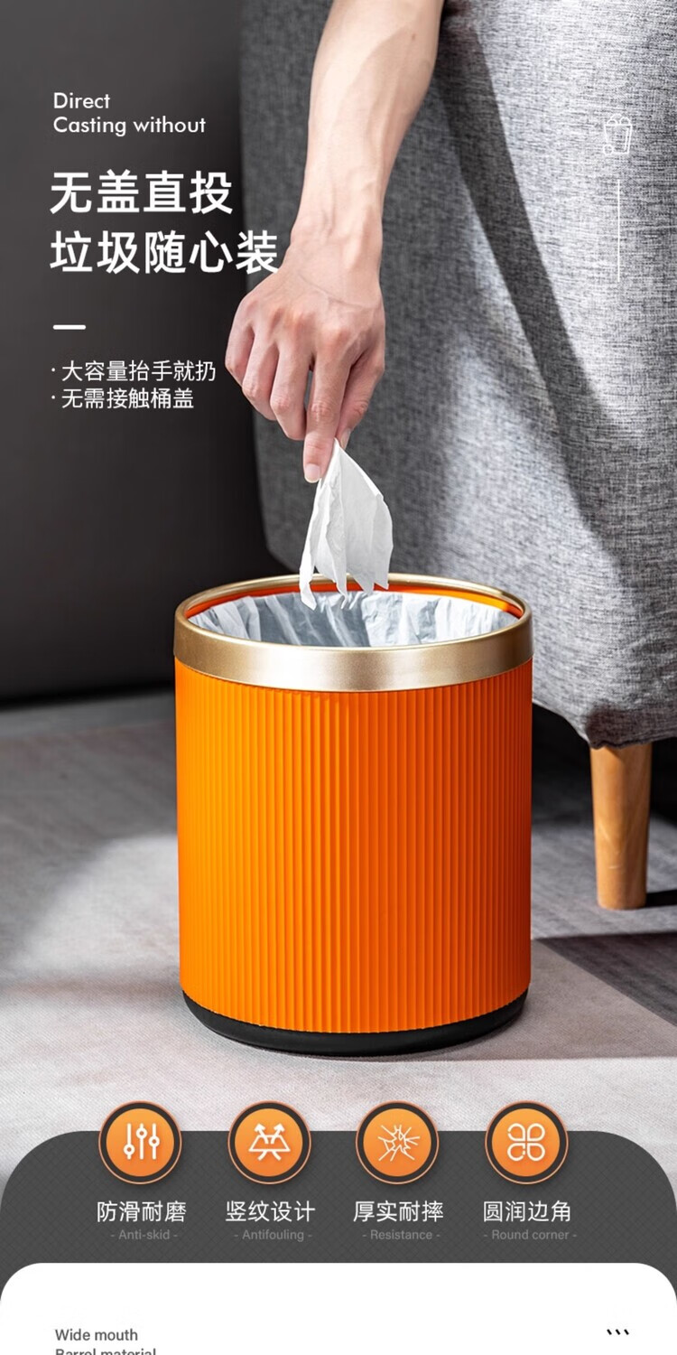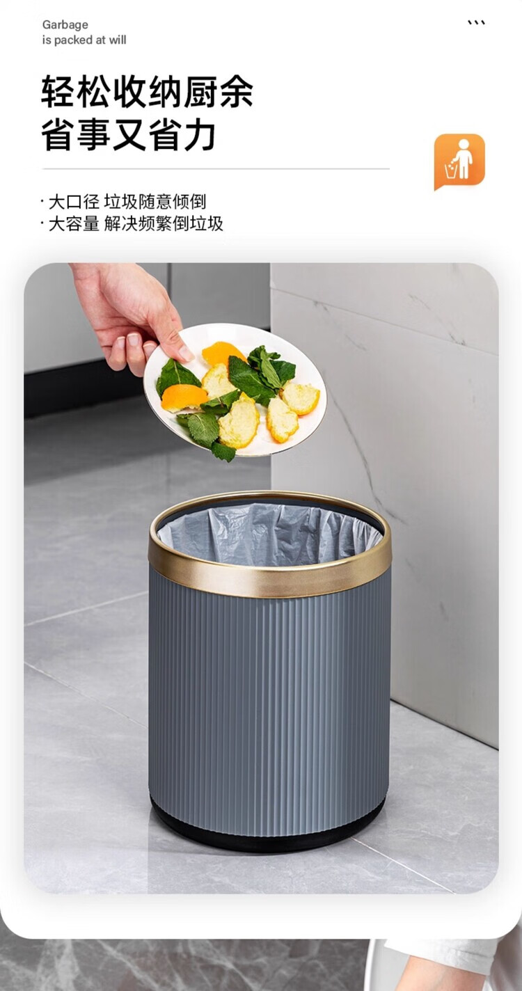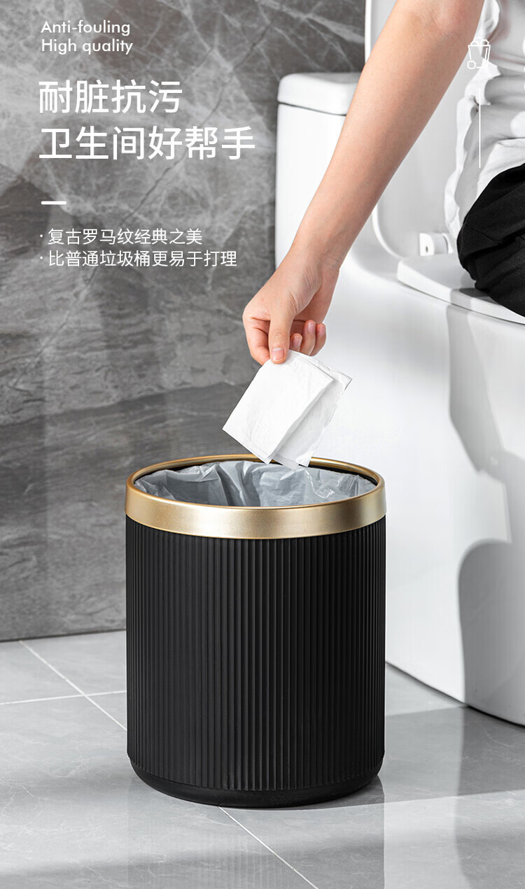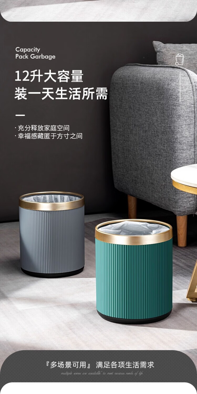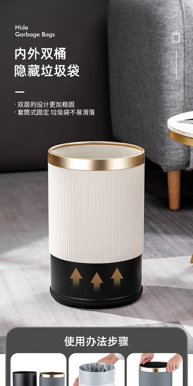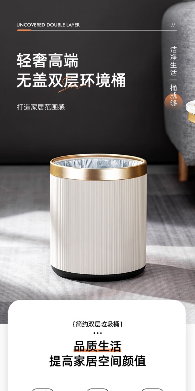 AILUKI日本垃圾桶家用客厅厨房厕所高级轻奢酒店客房办公室专用无盖纸篓 20L双层层方形升级【灰色】
