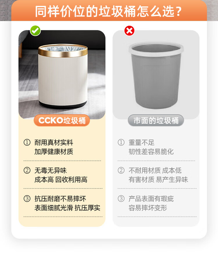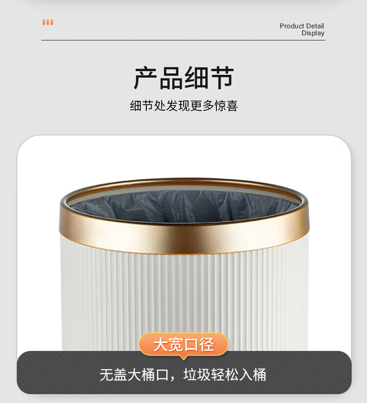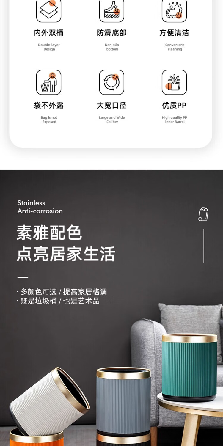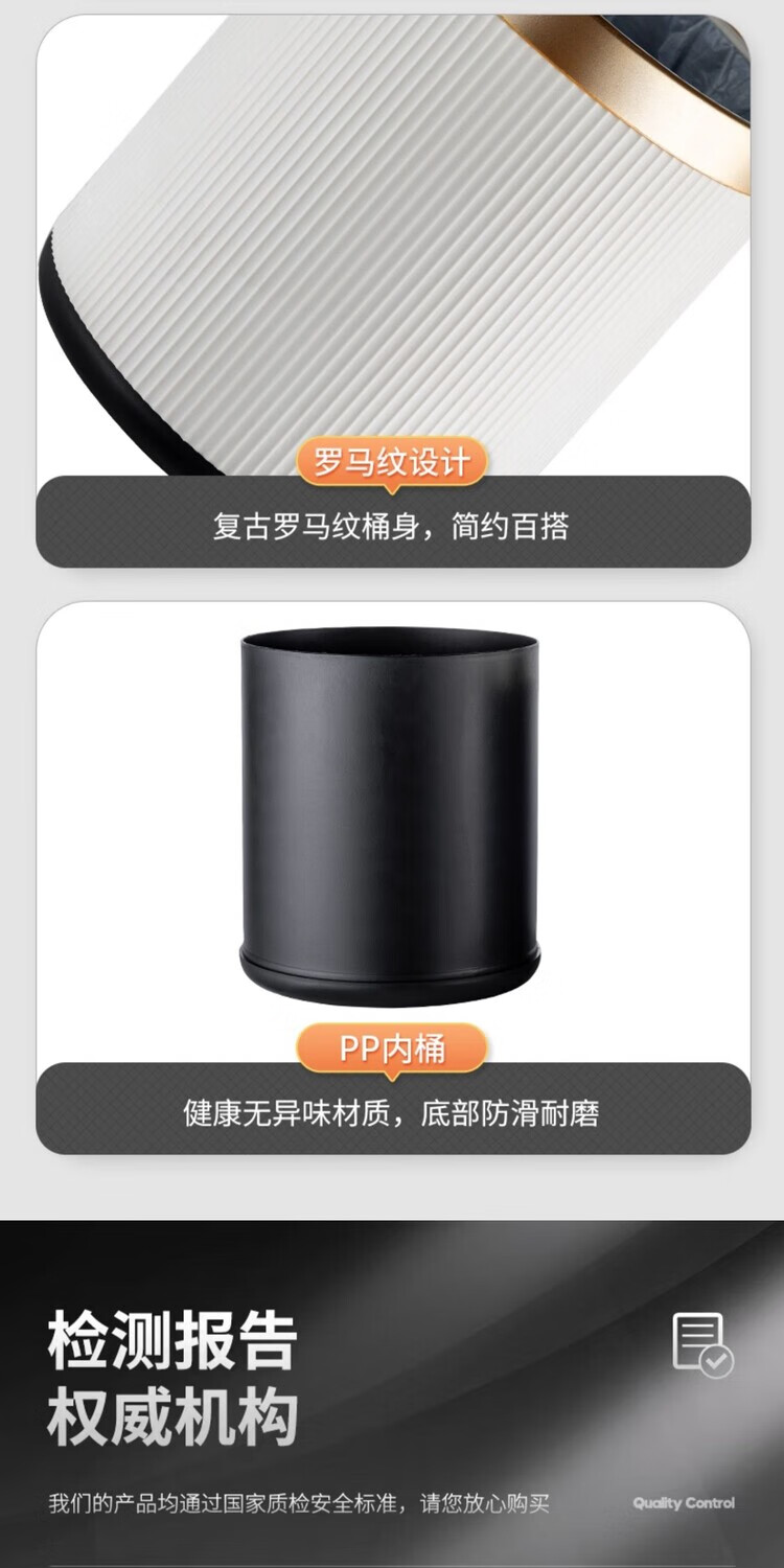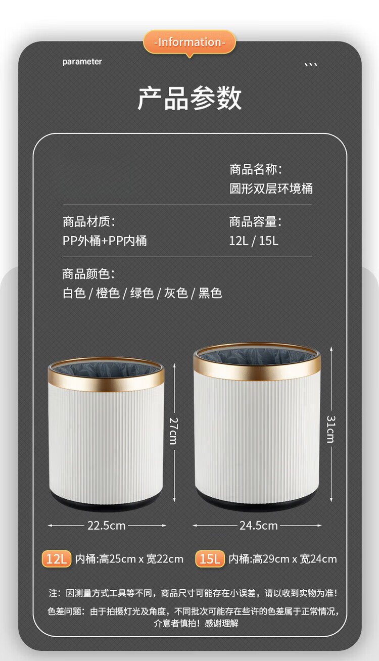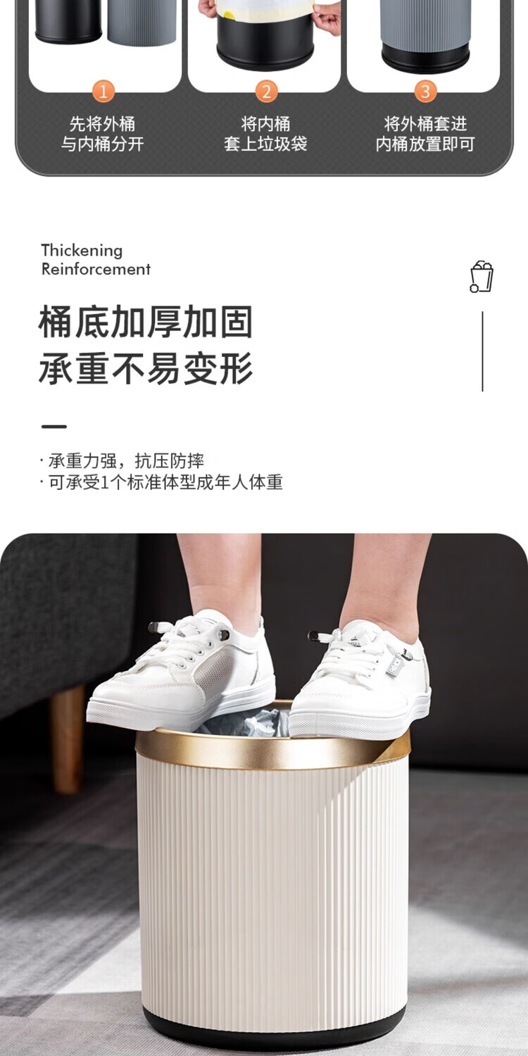 AILUKI日本垃圾桶家用客厅厨房厕所高级轻奢酒店客房办公室专用无盖纸篓 20L双层层方形升级【灰色】