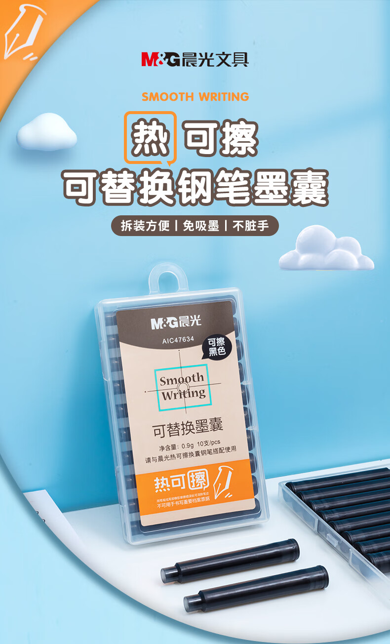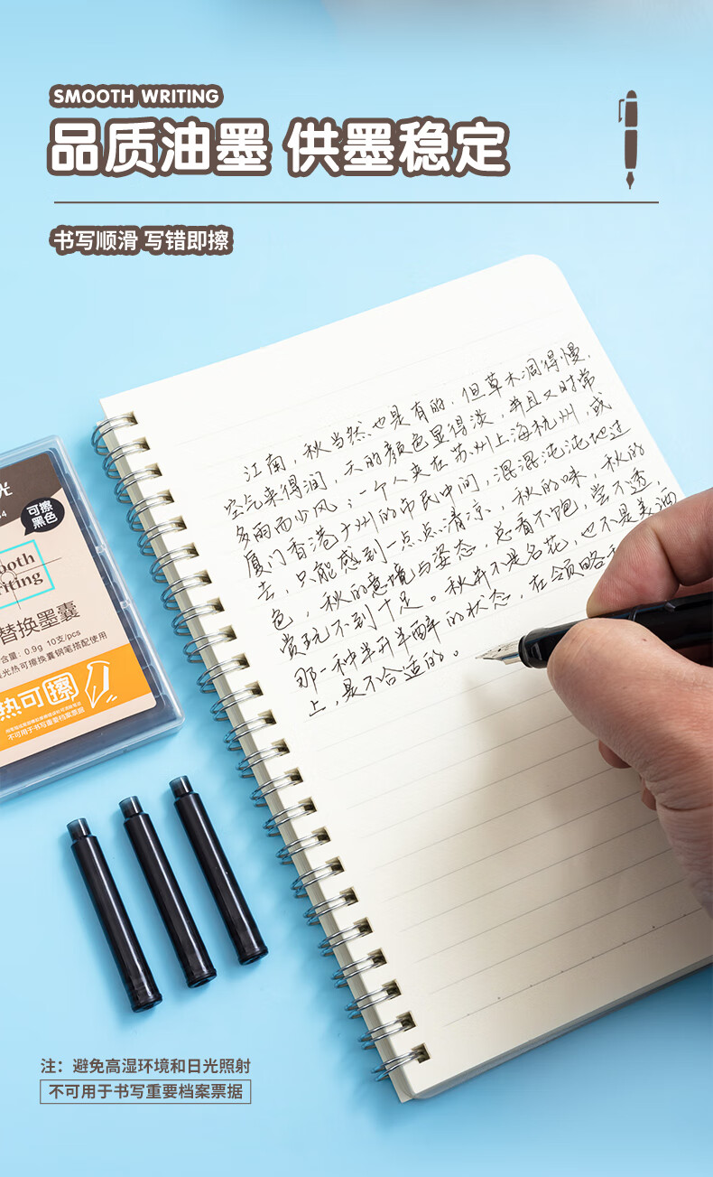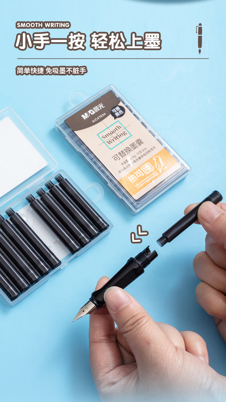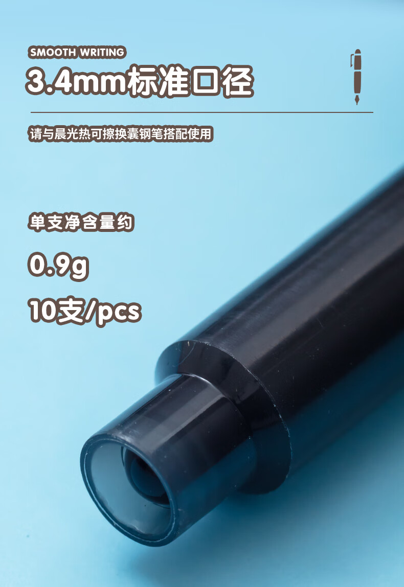 晨光(M&G)晨光(M&G)文具热可擦黑色钢笔墨囊 3.4mm口径可替换钢笔油性墨水 学生写字10支装 AIC47634A