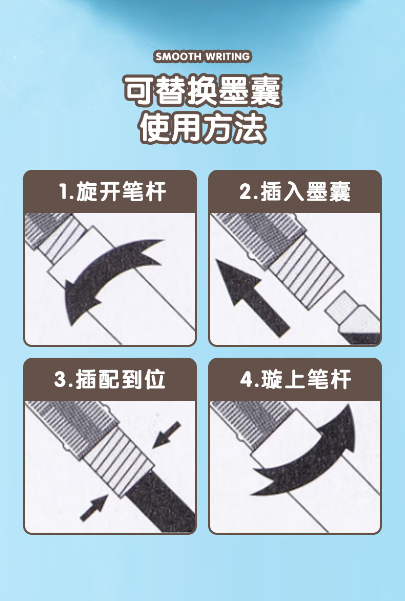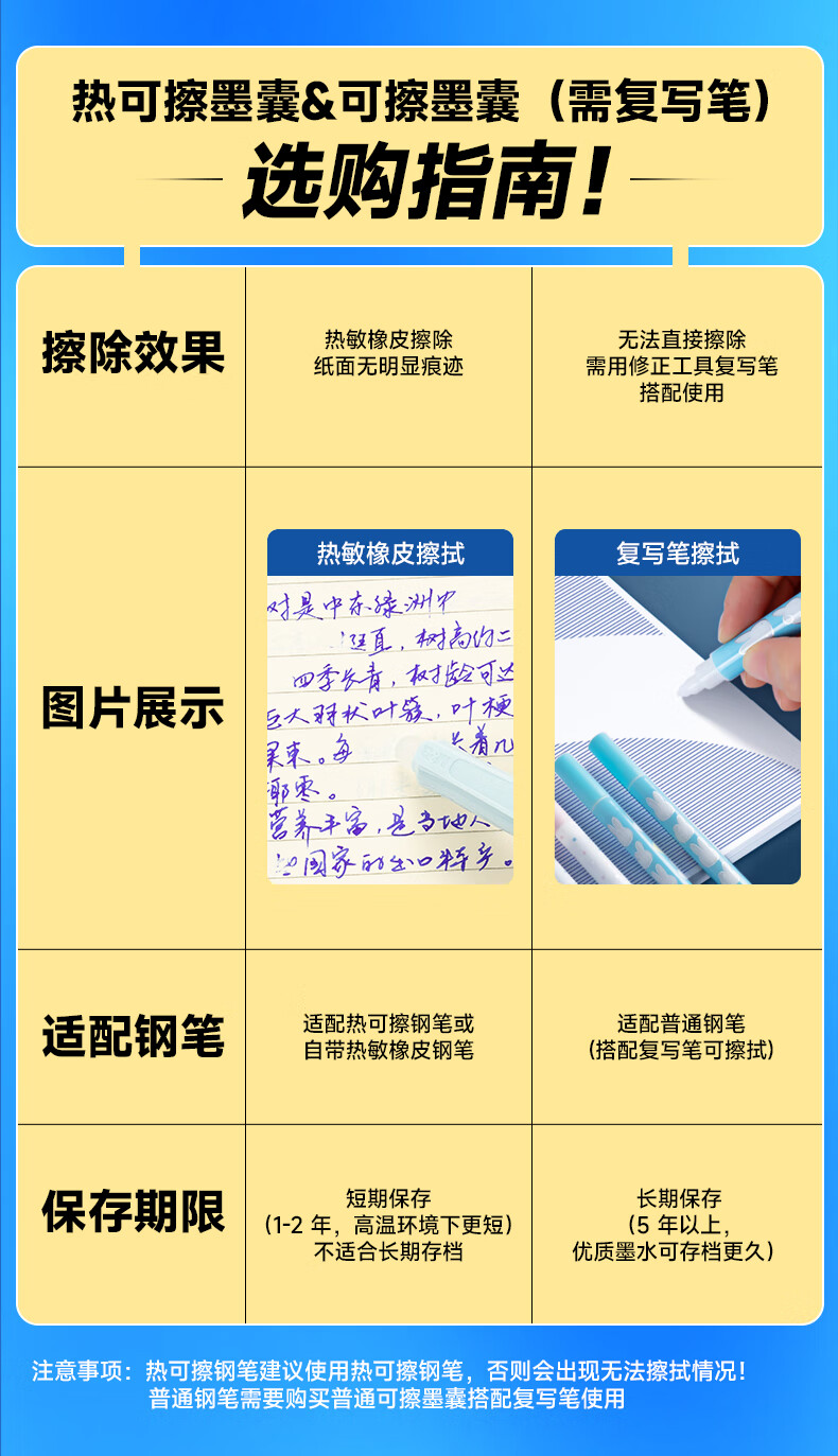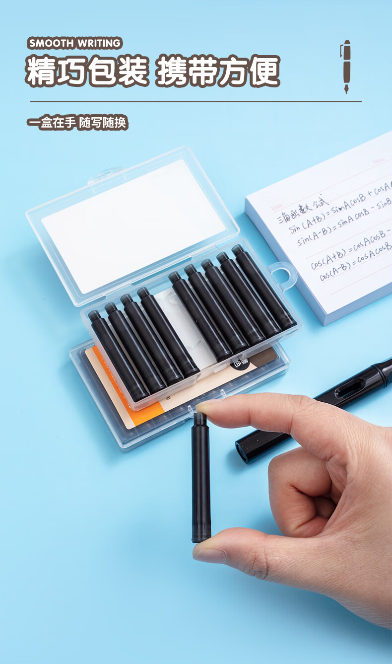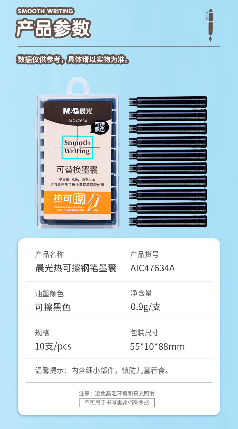 晨光(M&G)晨光(M&G)文具热可擦黑色钢笔墨囊 3.4mm口径可替换钢笔油性墨水 学生写字10支装 AIC47634A