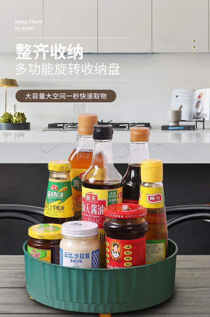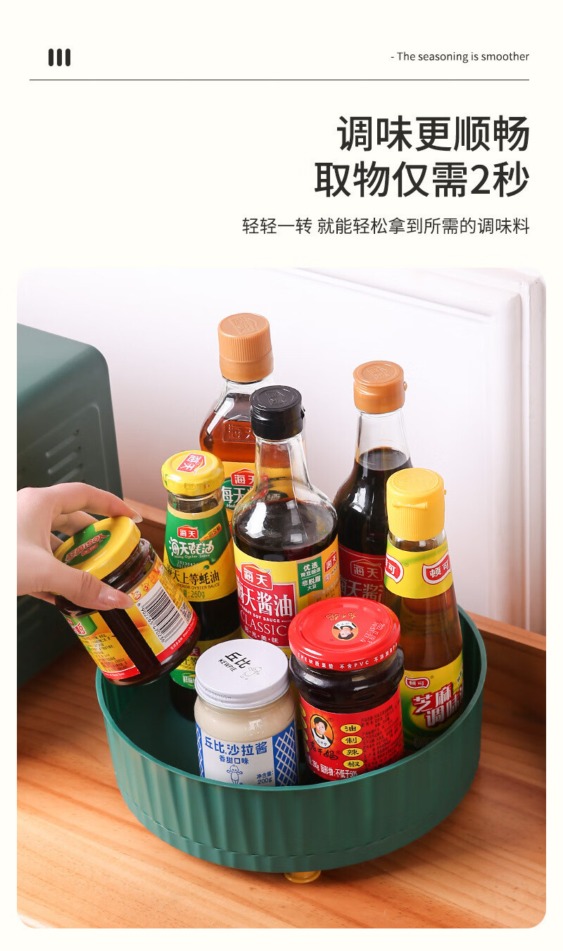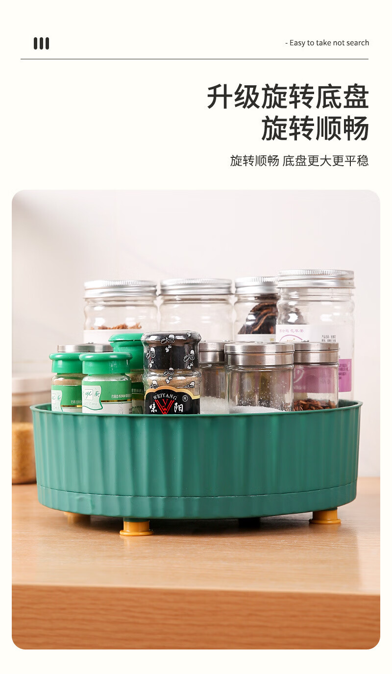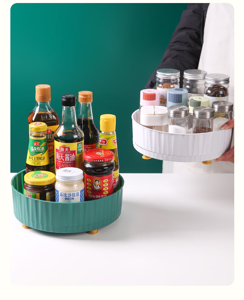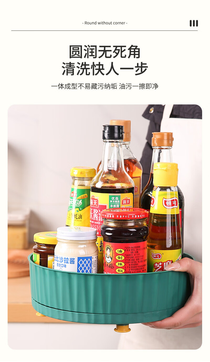 洋臣厨房可旋转调料置物架多功能360度调味酱油醋收纳架子轻奢水果盘 大号可旋转【墨绿色1个】