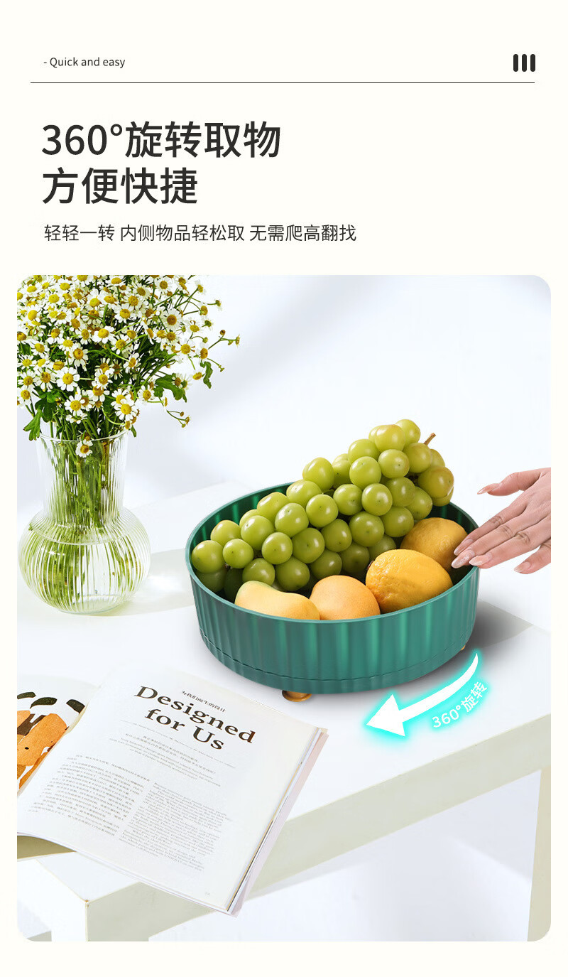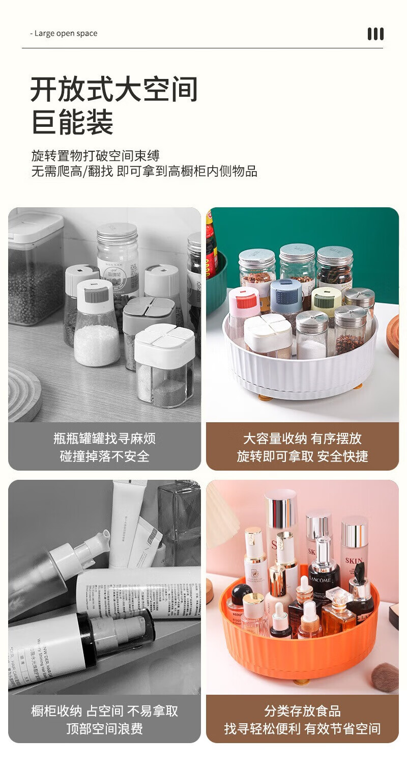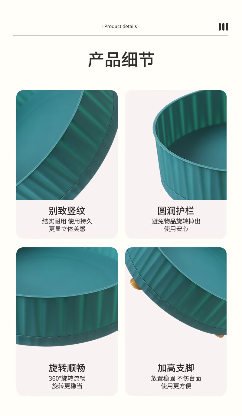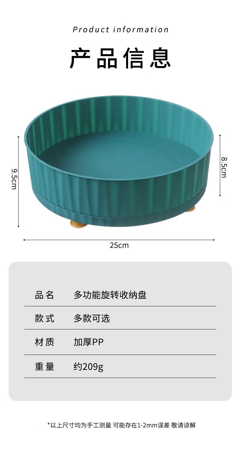 洋臣厨房可旋转调料置物架多功能360度调味酱油醋收纳架子轻奢水果盘 大号可旋转【墨绿色1个】