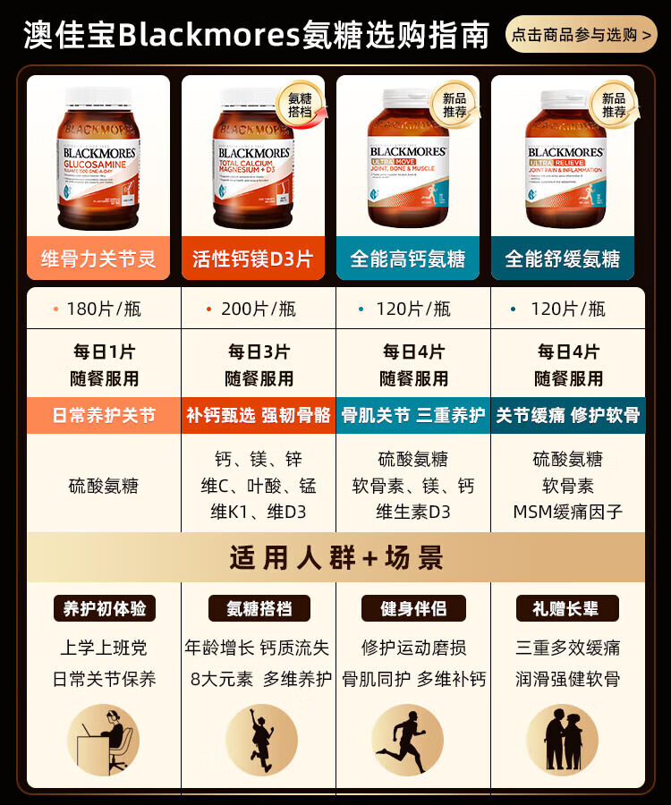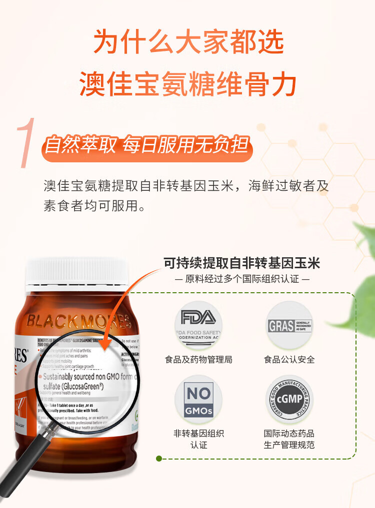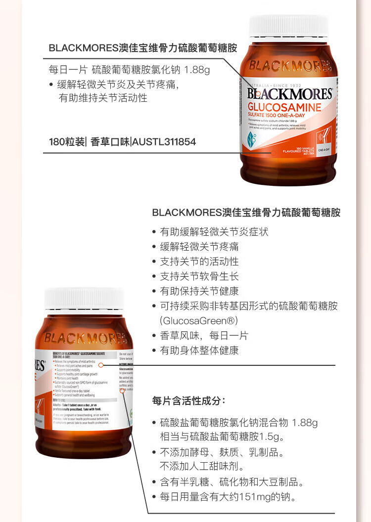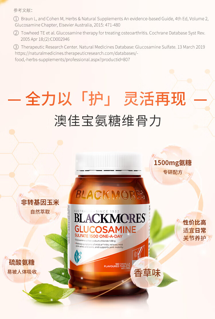 BLACKMORES澳佳宝Blackmores 氨糖维骨力 高浓度1500mg 180粒有效期27年初 [日常养护关节]维骨力180粒