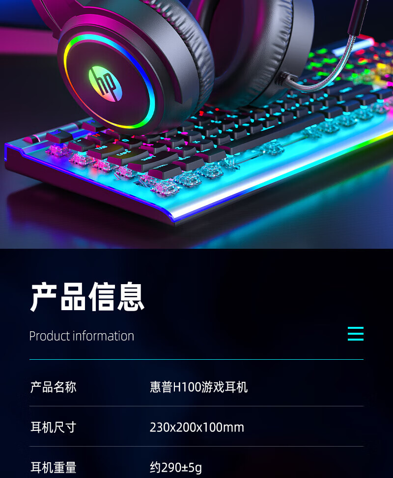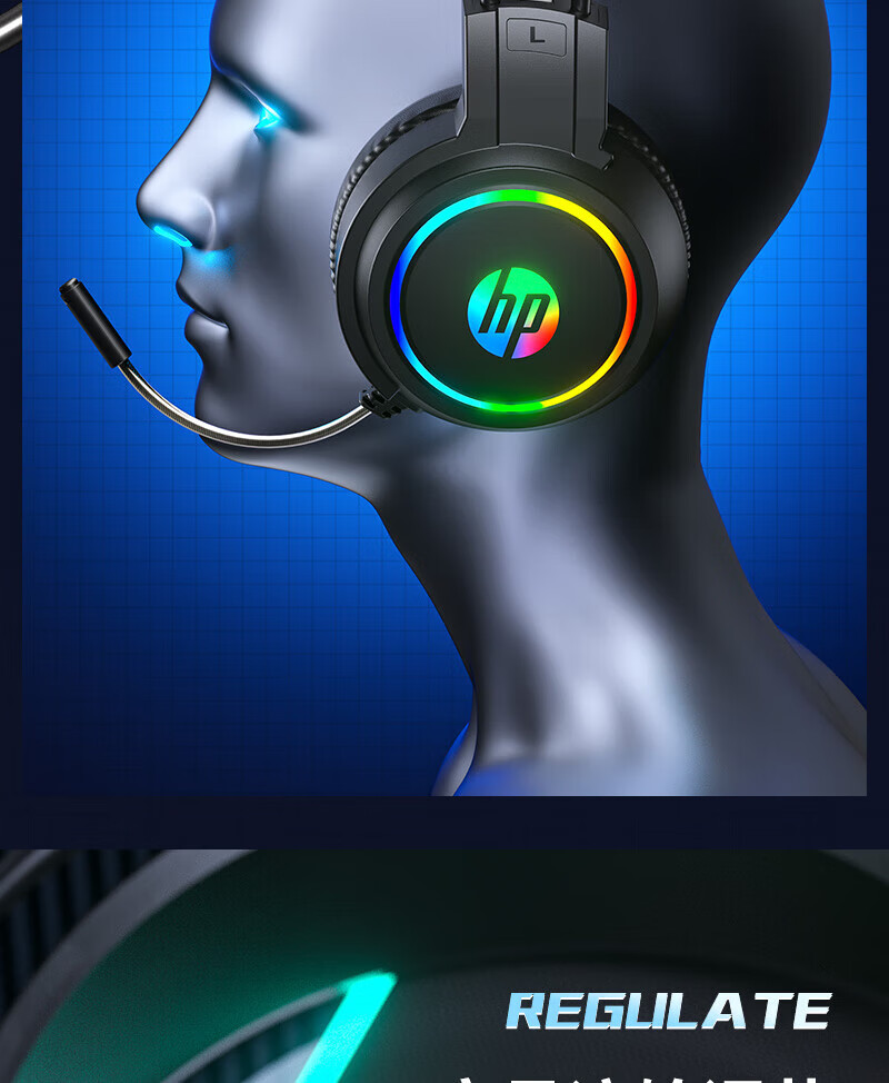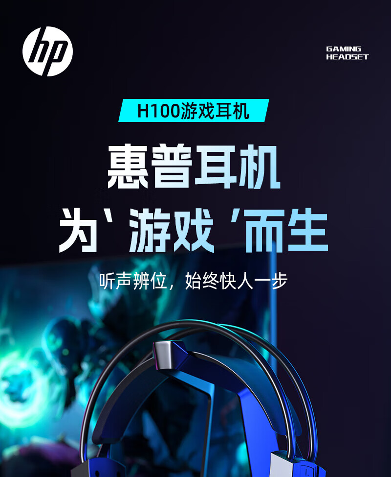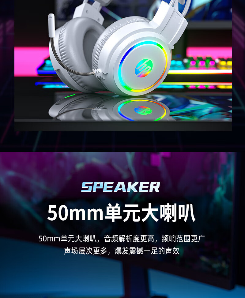 惠普(HP)H100游戏耳机头戴式有线耳机带麦克风电竞网吧游戏吃鸡三角洲行动听声辨位 奶茶色USB接口