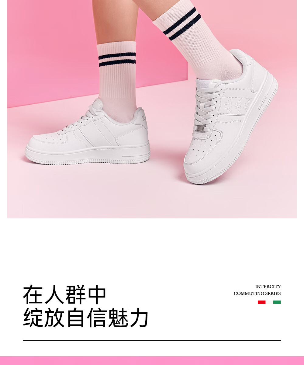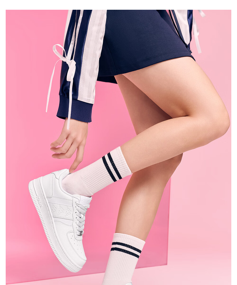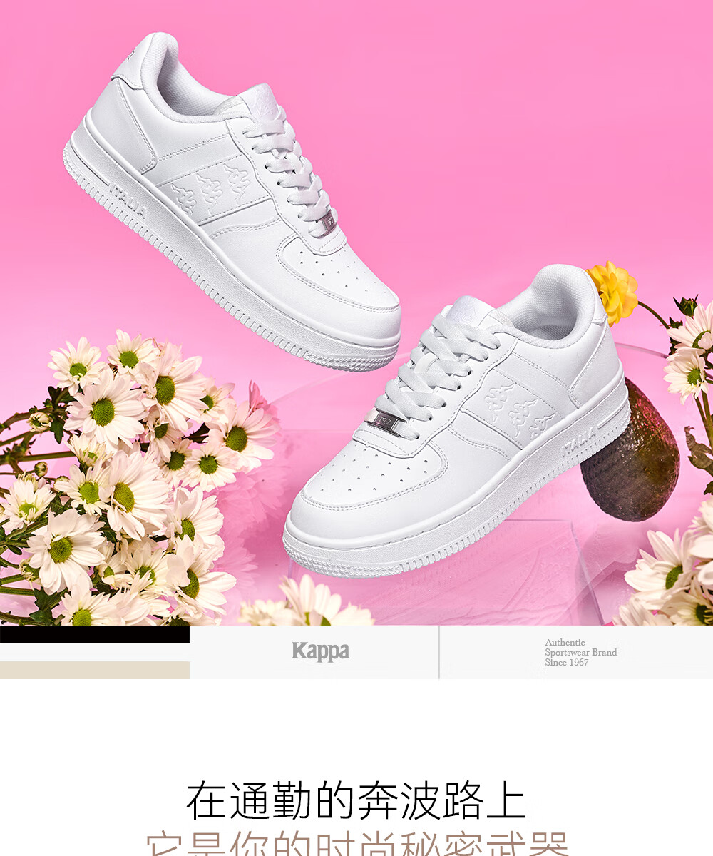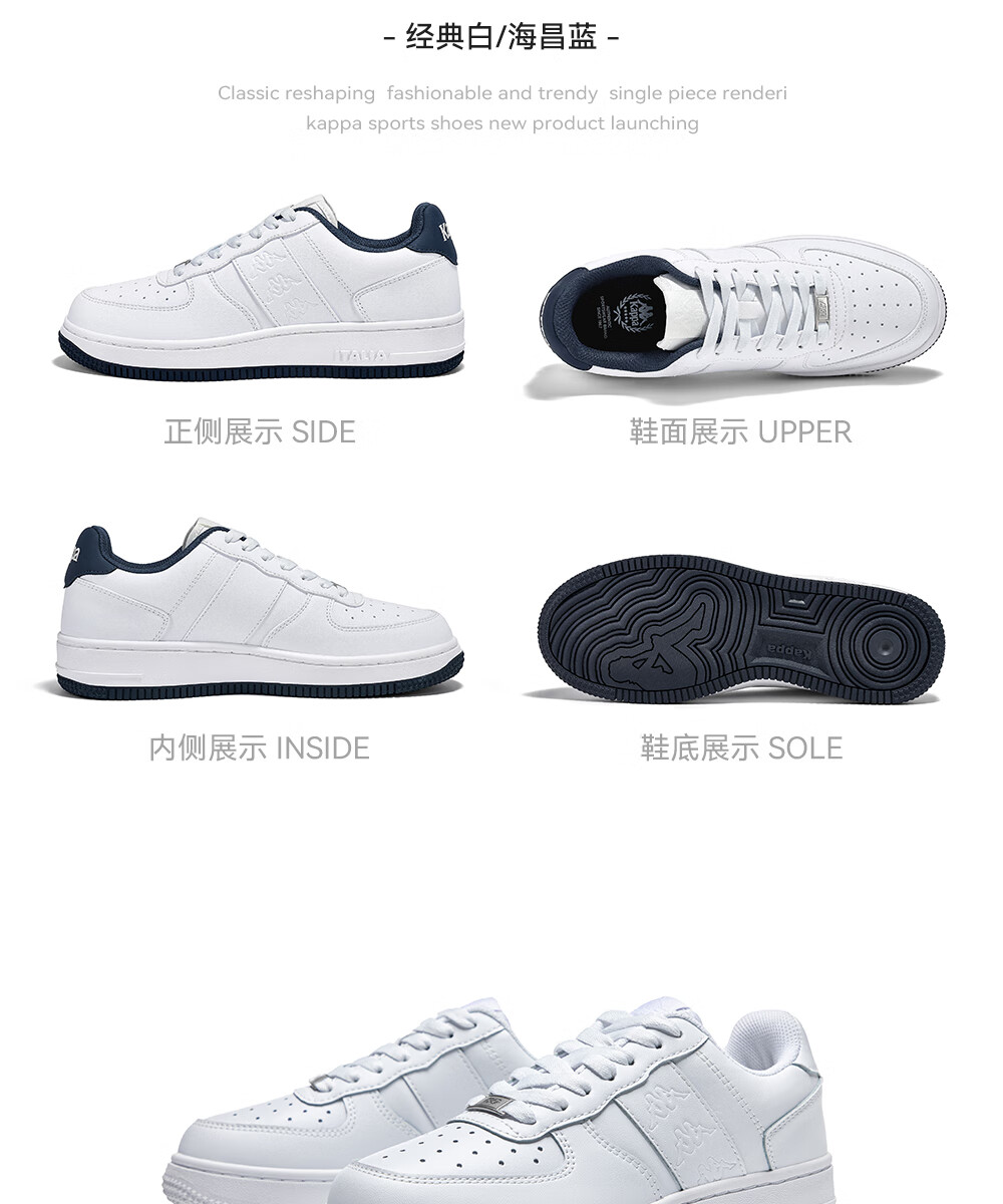 KAPPA卡帕女鞋情侣鞋厚底板鞋女2025秋季新款透气小白鞋女休闲运动鞋女 经典白/海昌蓝 38