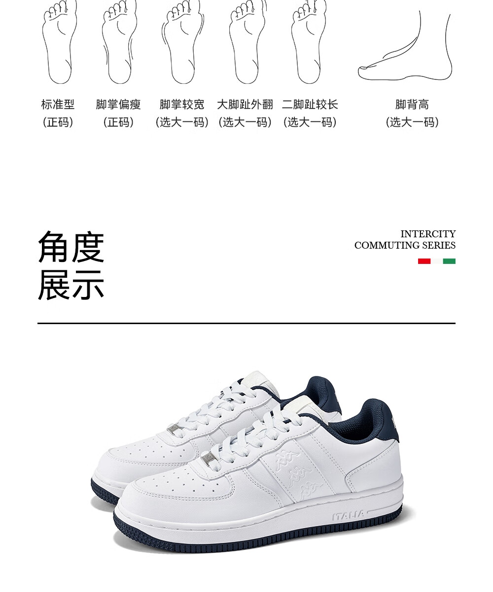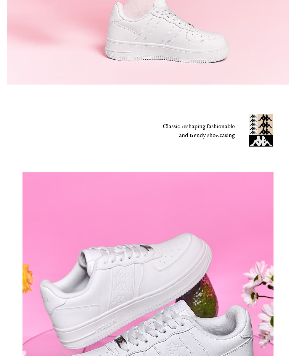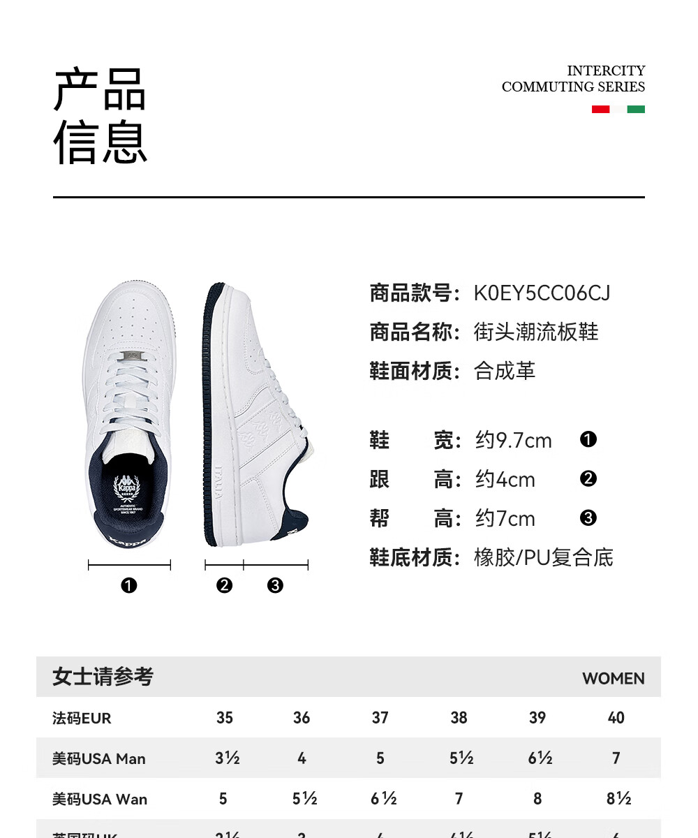 KAPPA卡帕女鞋情侣鞋厚底板鞋女2025秋季新款透气小白鞋女休闲运动鞋女 经典白/海昌蓝 38