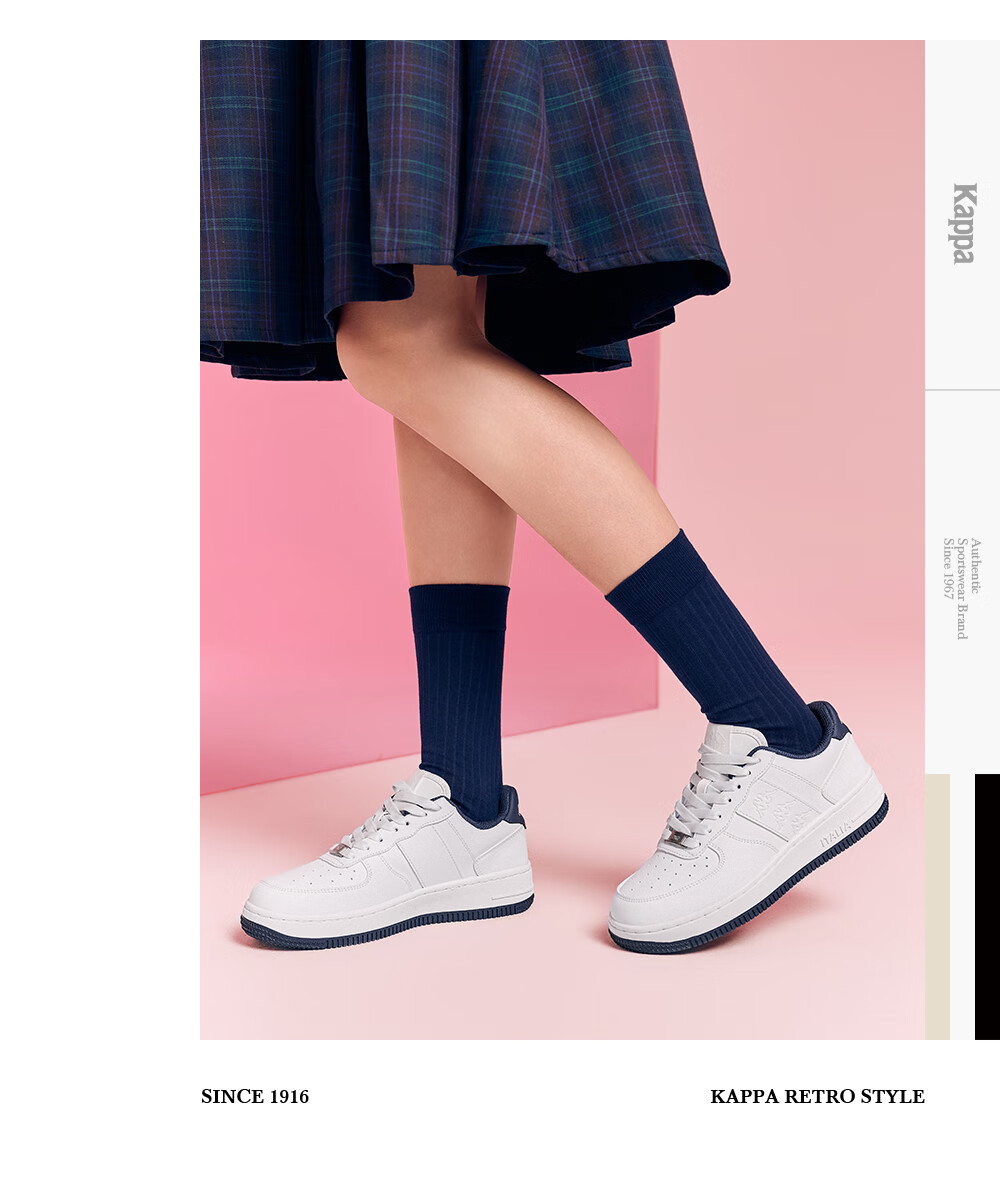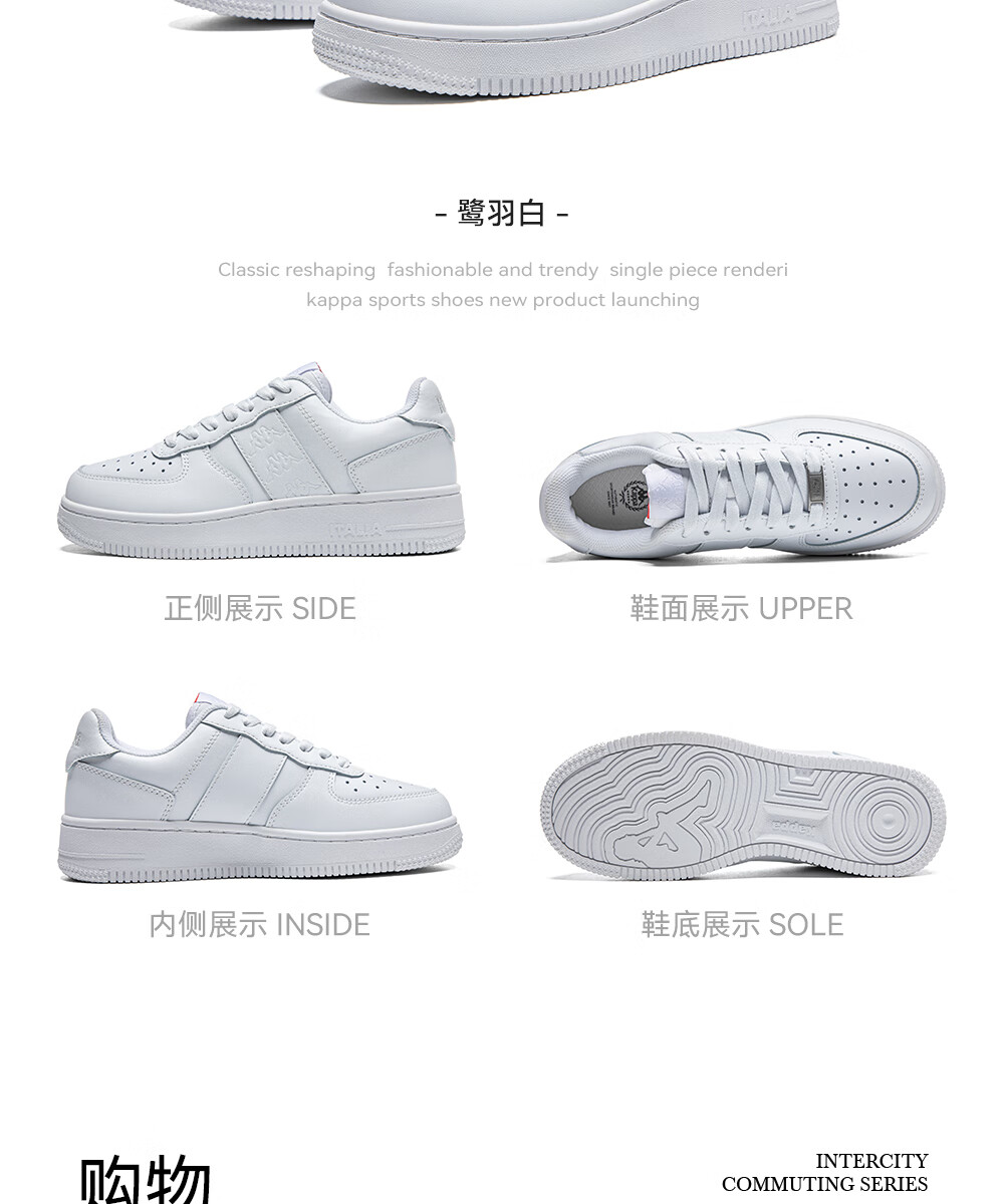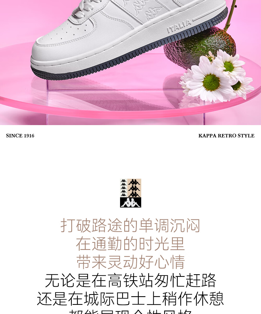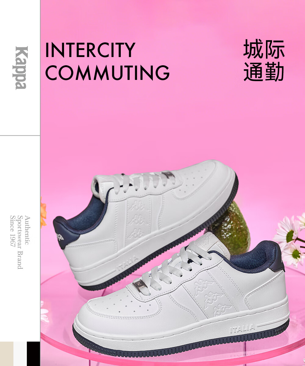 KAPPA卡帕女鞋情侣鞋厚底板鞋女2025秋季新款透气小白鞋女休闲运动鞋女 经典白/海昌蓝 38