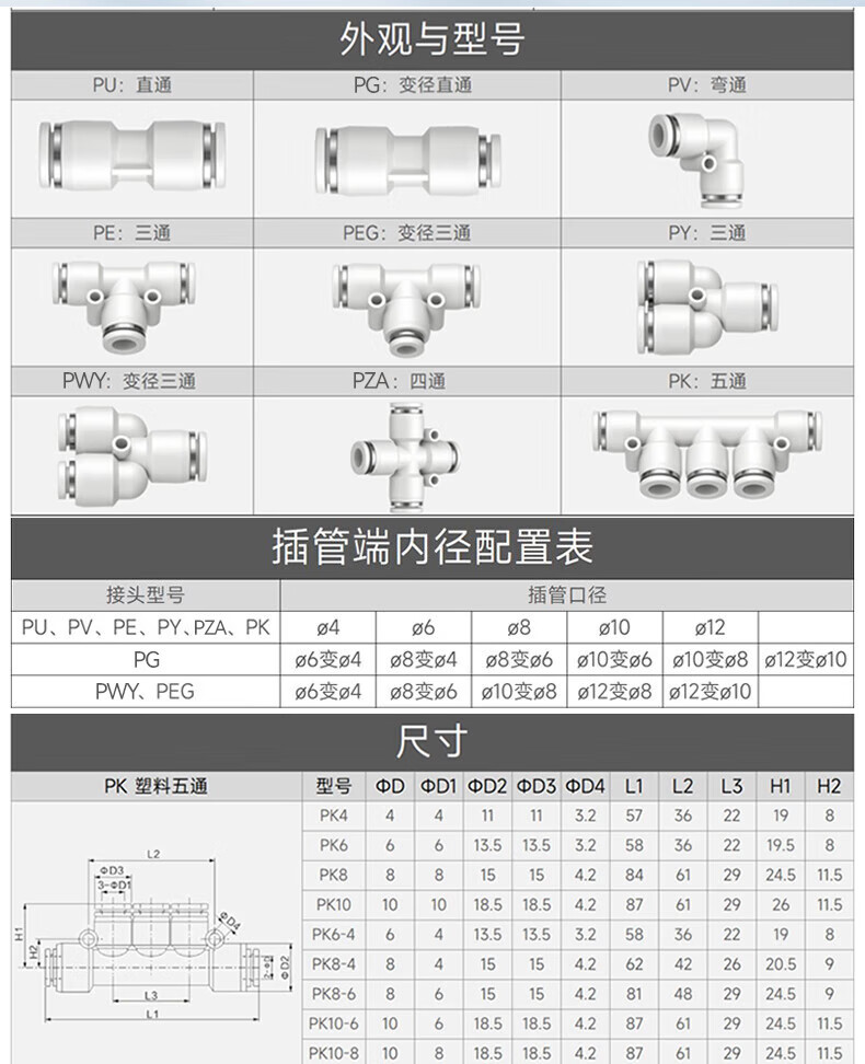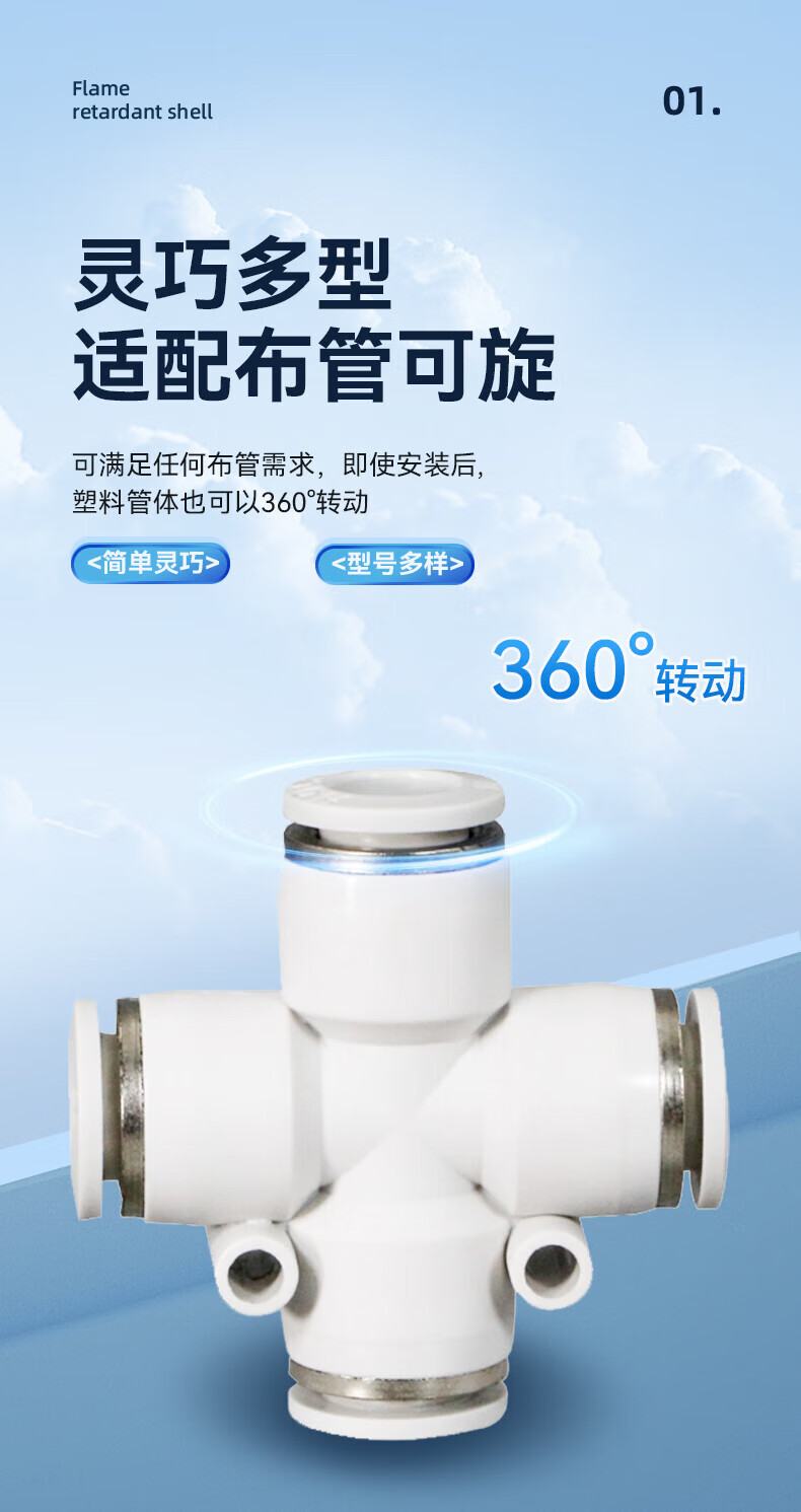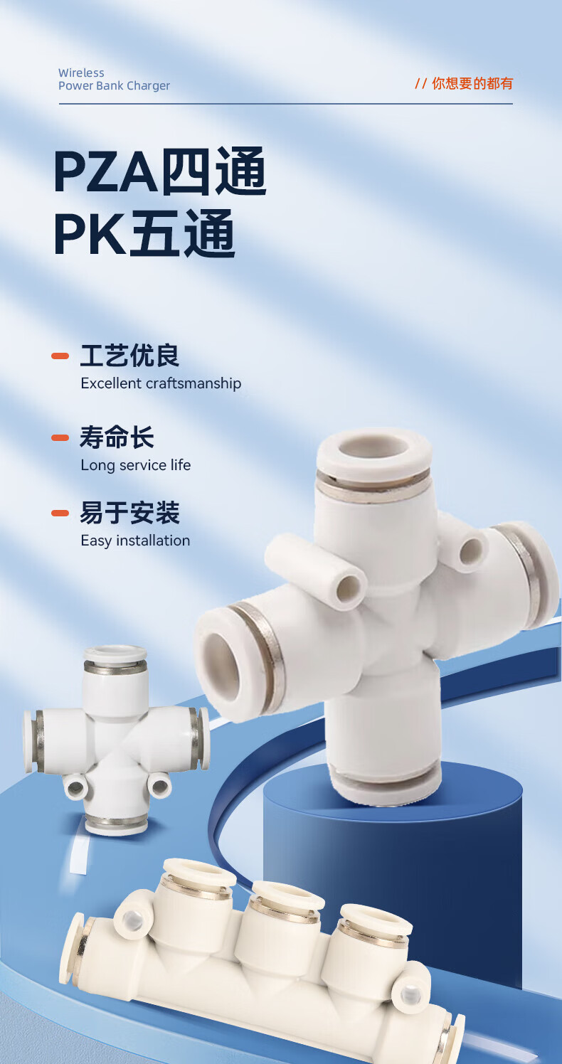 正泰(CHNT)四通/五通气管快速接头 PZA/PK气动接头元件快插接头快速快拆接头 ZTP-PZA4(10只装)