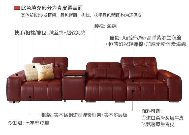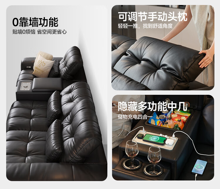 帕沙曼多功能电动沙发真皮意式客厅2025新款快充储物沙发可调节7179ZP 【双电动-升级款·中几+快充】2.62米双人位 【豪华版 l 进口柔滑头层牛皮MU】