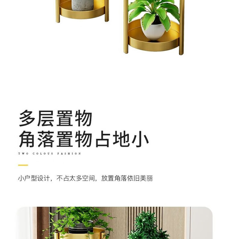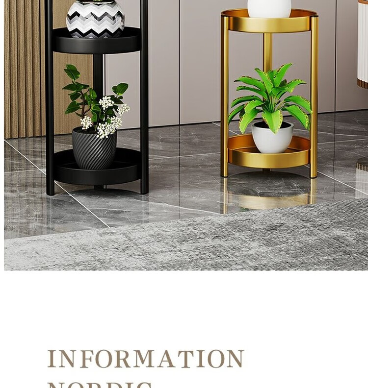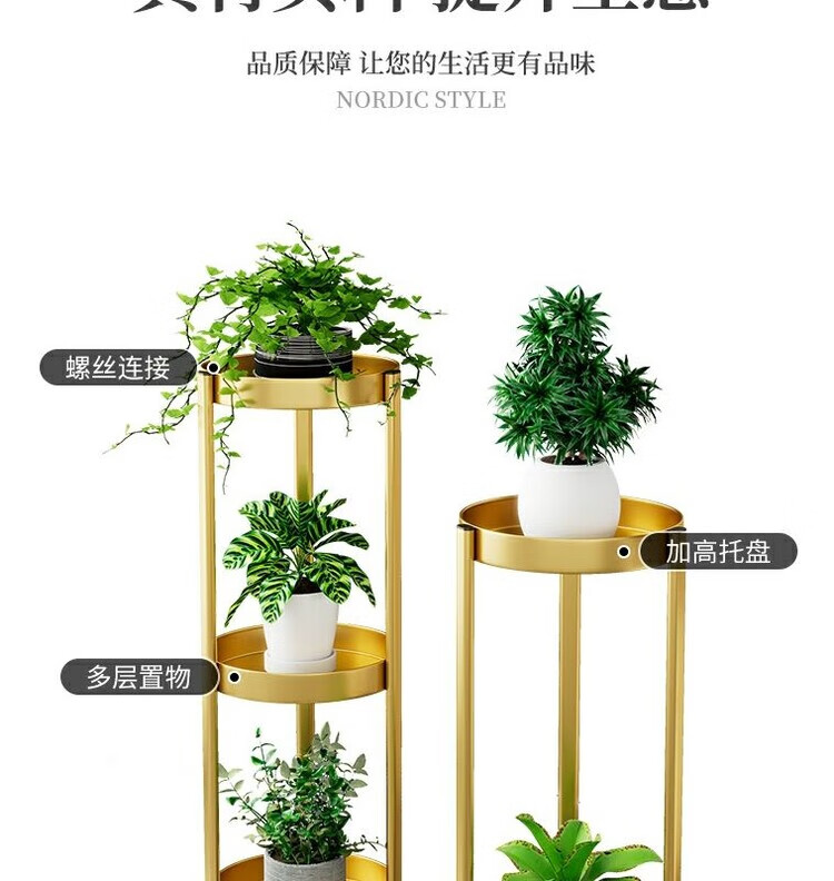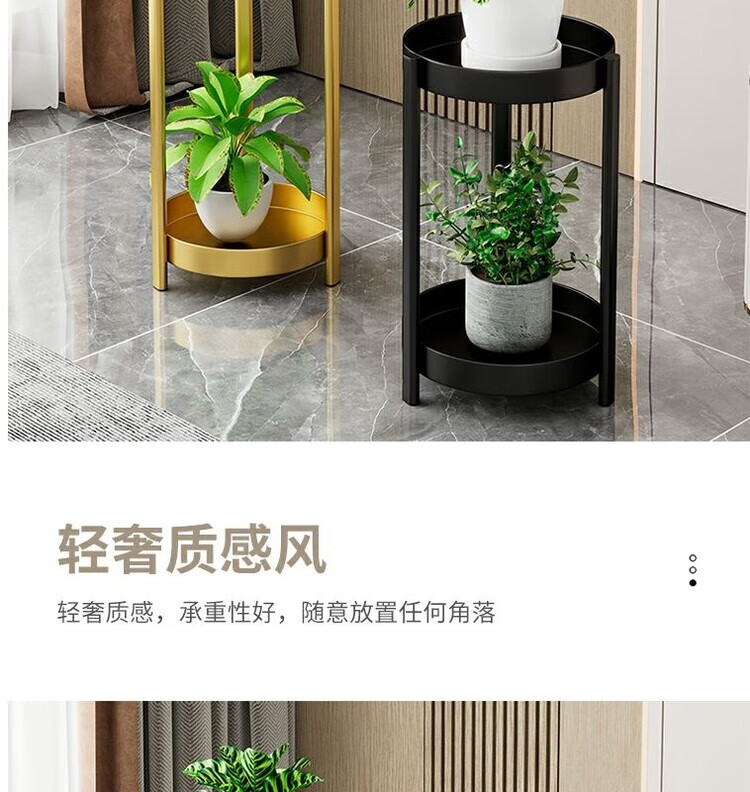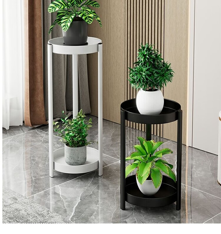 欣慕雅北欧铁艺花架子置物架客厅轻奢吊兰绿萝花架盆多层落地式阳台放花 两层加厚款-直径25*高75(白色)