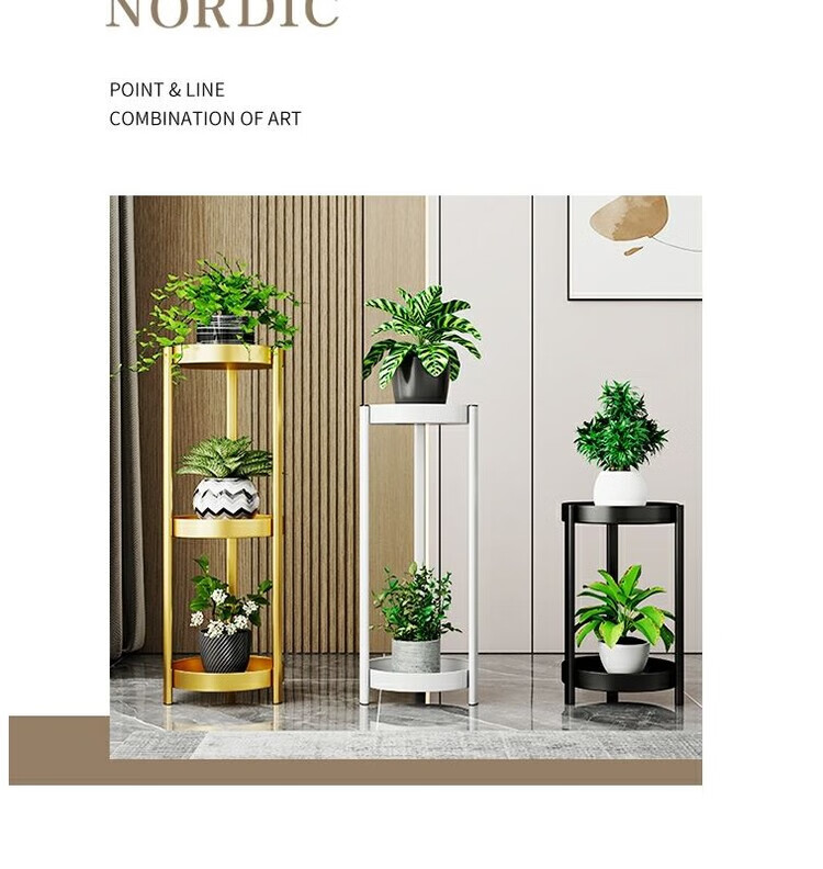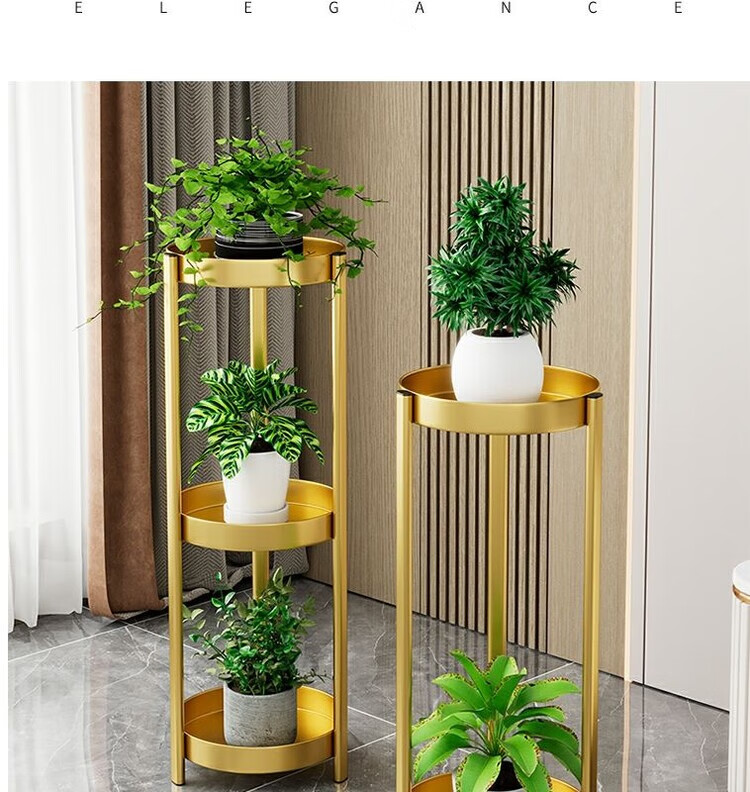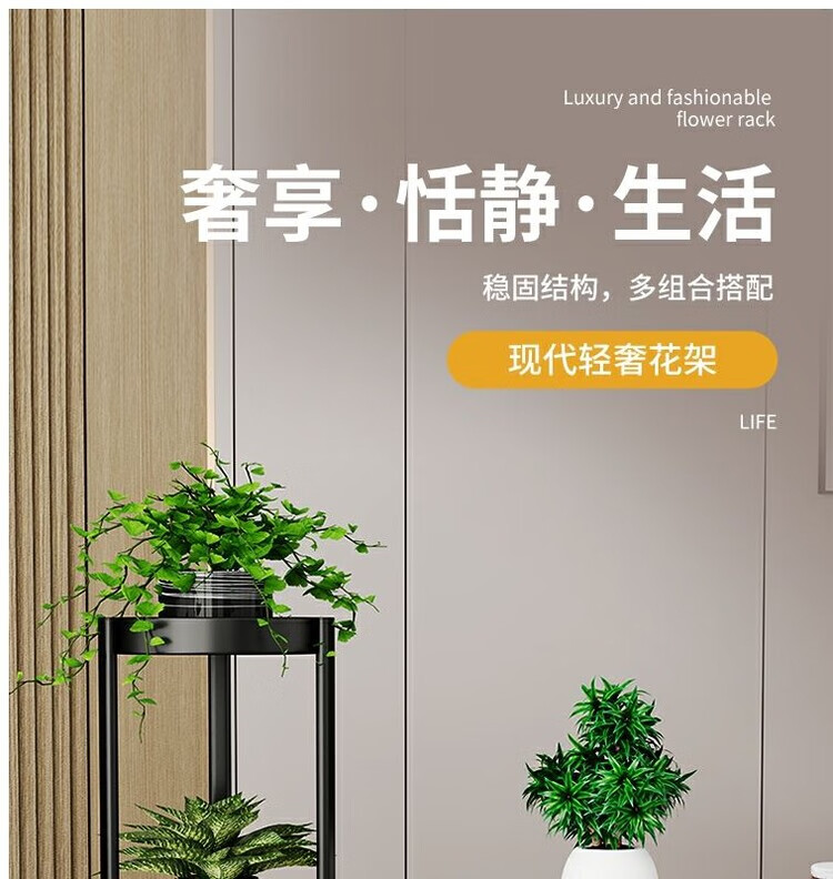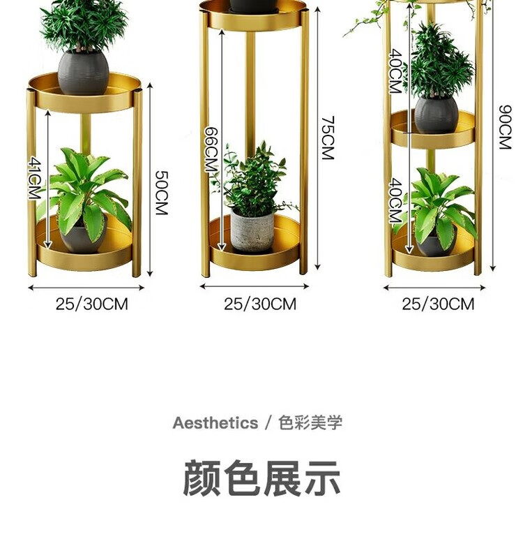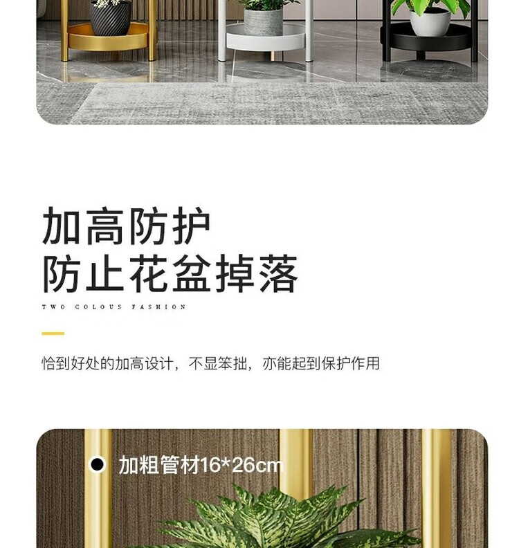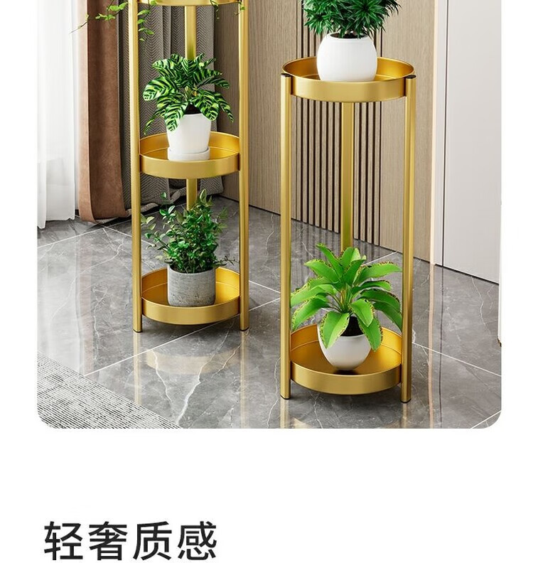 欣慕雅北欧铁艺花架子置物架客厅轻奢吊兰绿萝花架盆多层落地式阳台放花 两层加厚款-直径25*高75(白色)