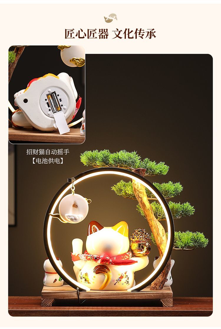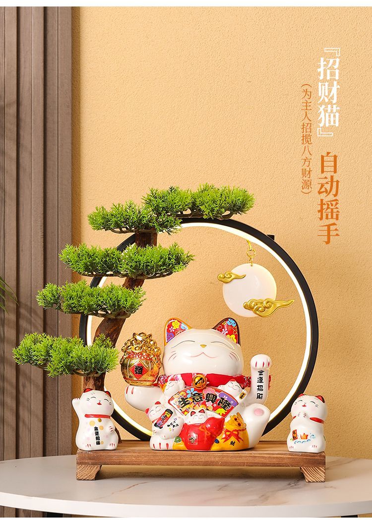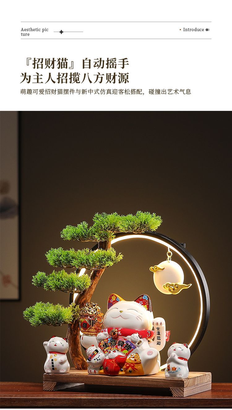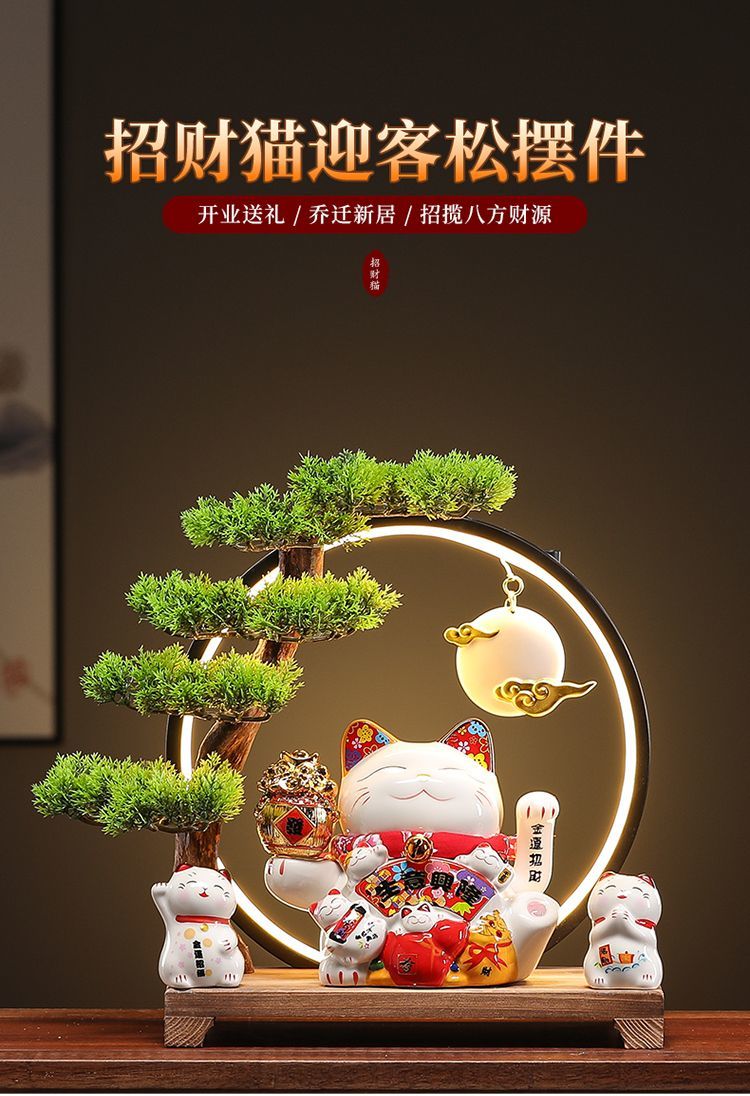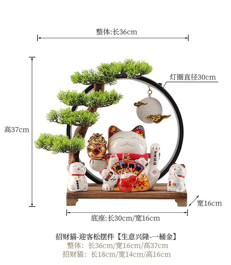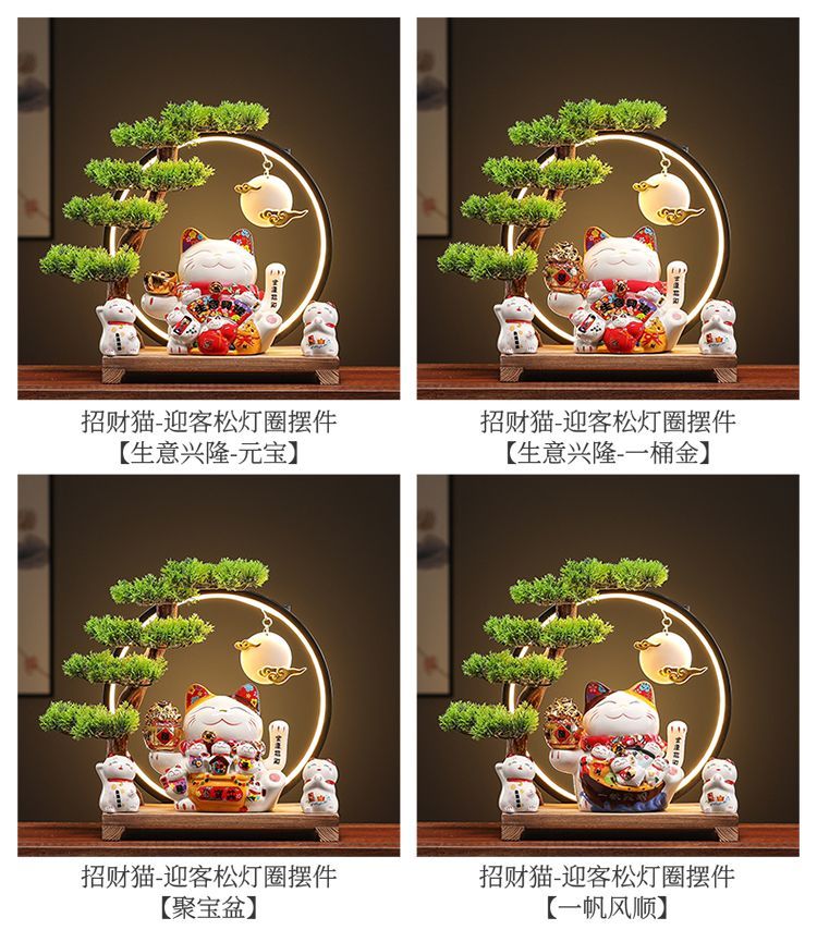 OYKTN家庭过年装饰品摇手猫灯圈礼品店铺家居开业客厅装饰品乔迁送 迎客松灯圈聚宝盆一桶金