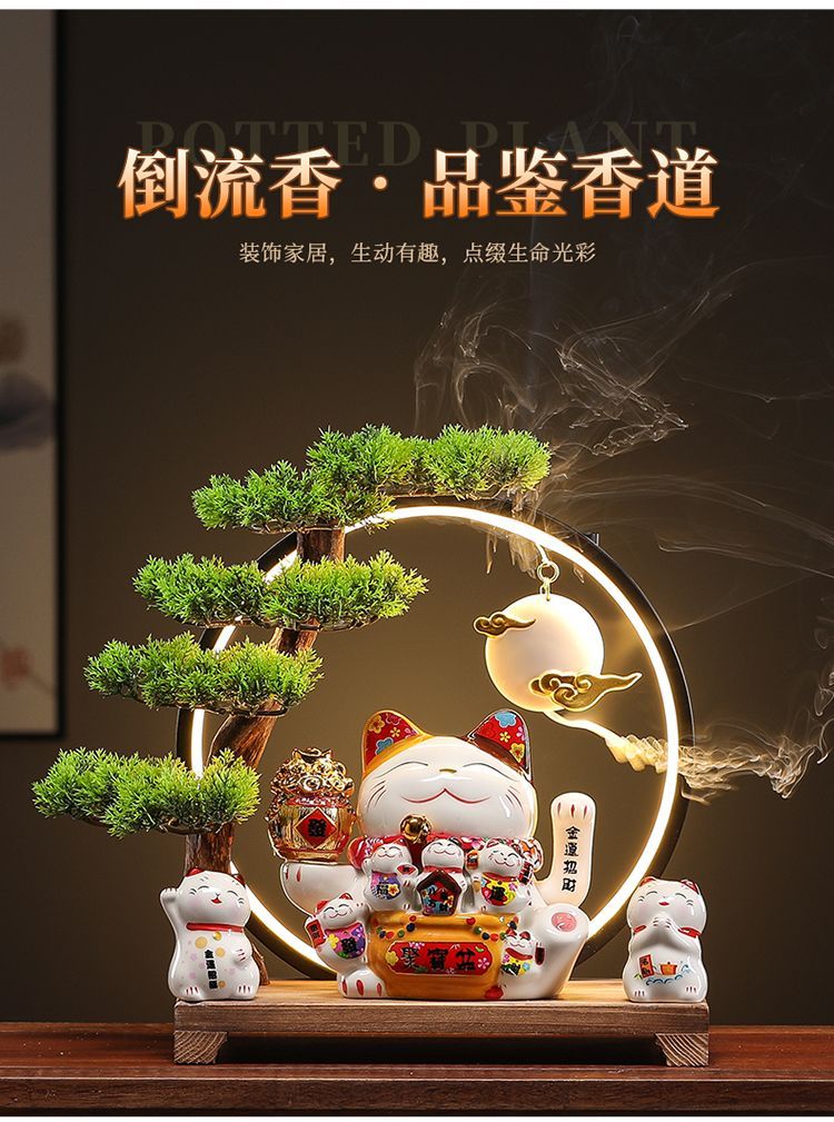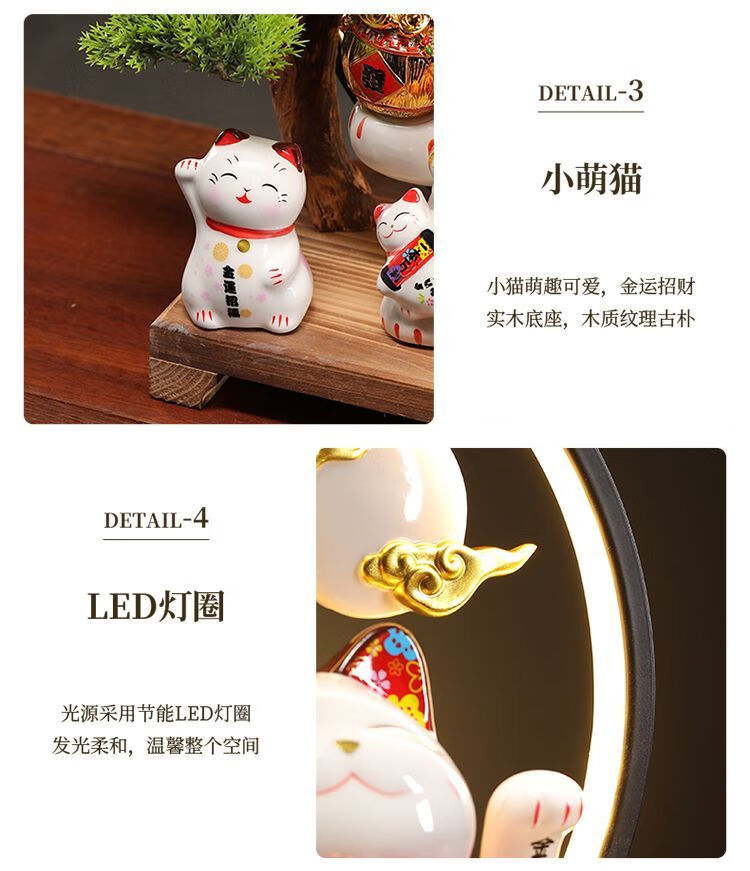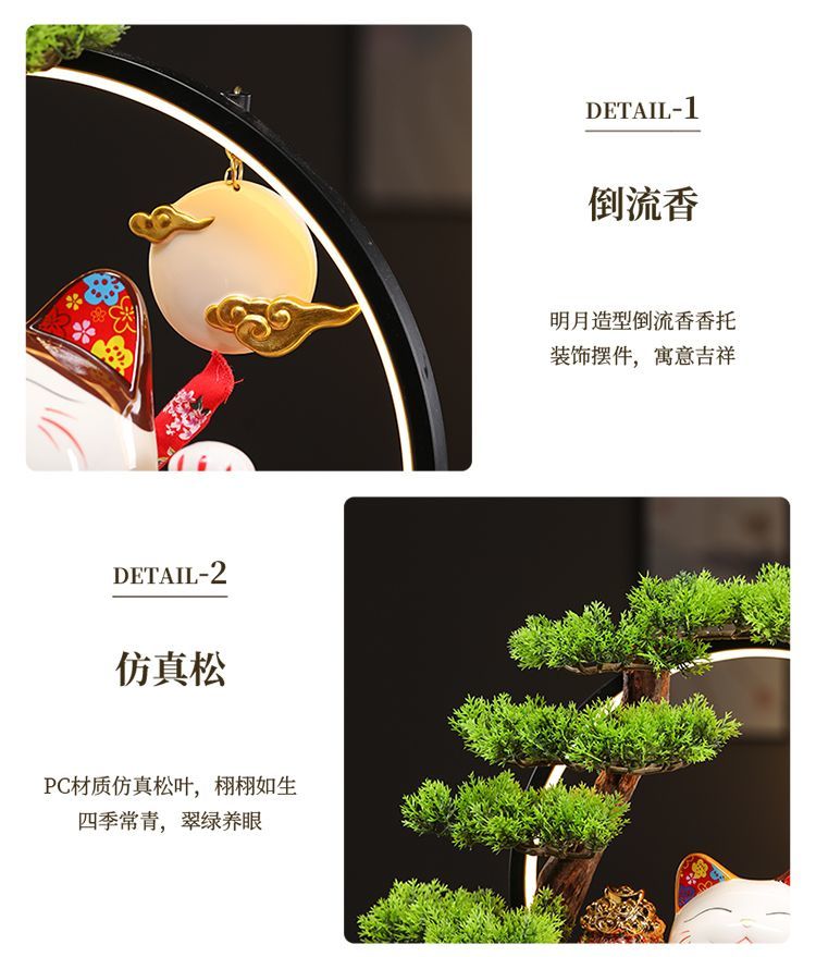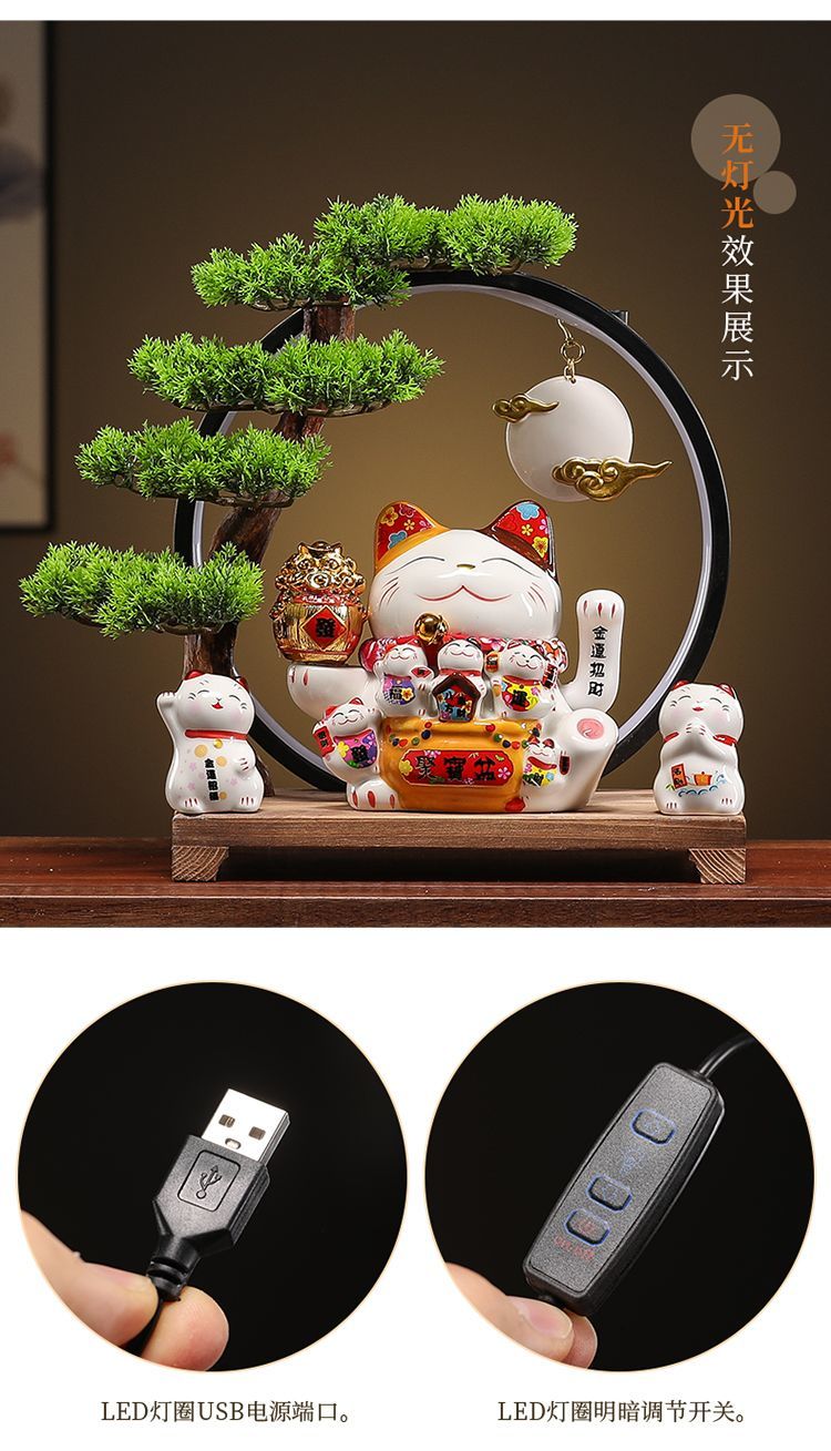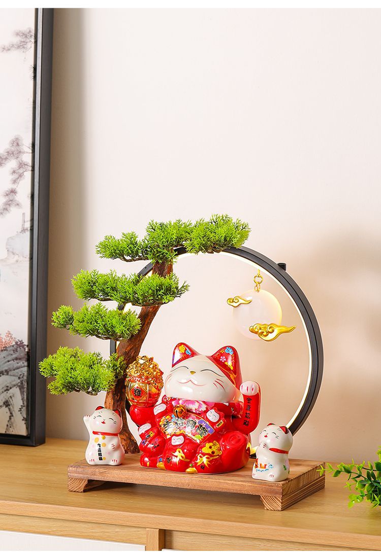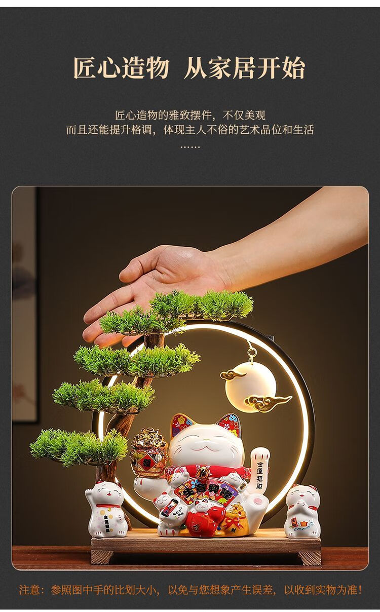 OYKTN家庭过年装饰品摇手猫灯圈礼品店铺家居开业客厅装饰品乔迁送 迎客松灯圈聚宝盆一桶金