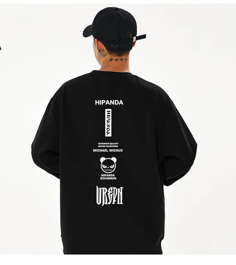 HIPANDA你好熊猫2025秋冬新款圆领印花卫衣男士休闲百搭情侣款长袖上衣 黑色 L