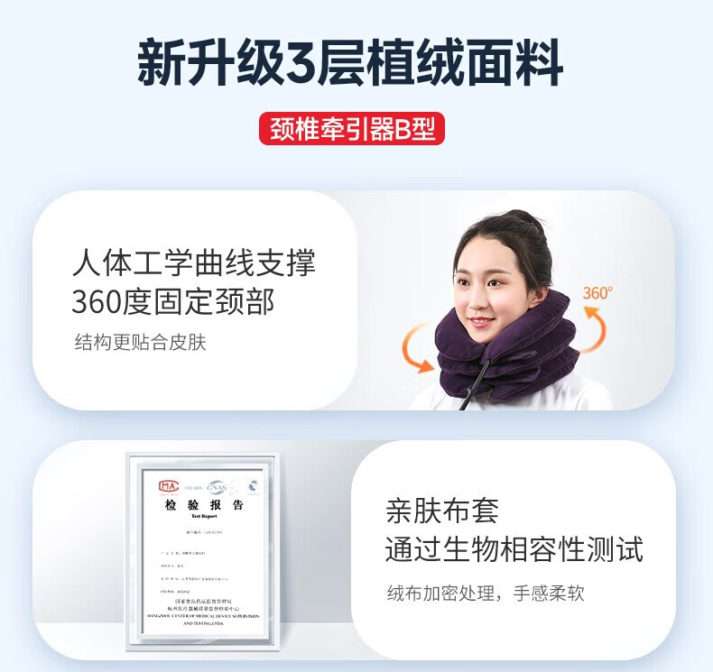 鱼跃(Yuwell)颈椎牵引器B型家用颈托颈椎矫正器护颈椎手动充气固定升级款3层