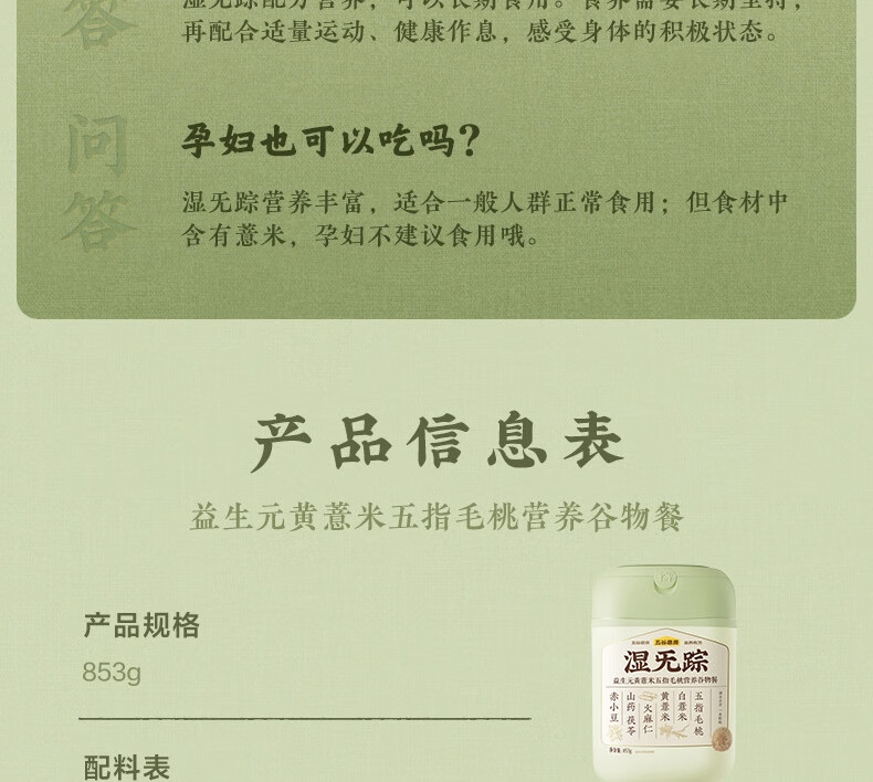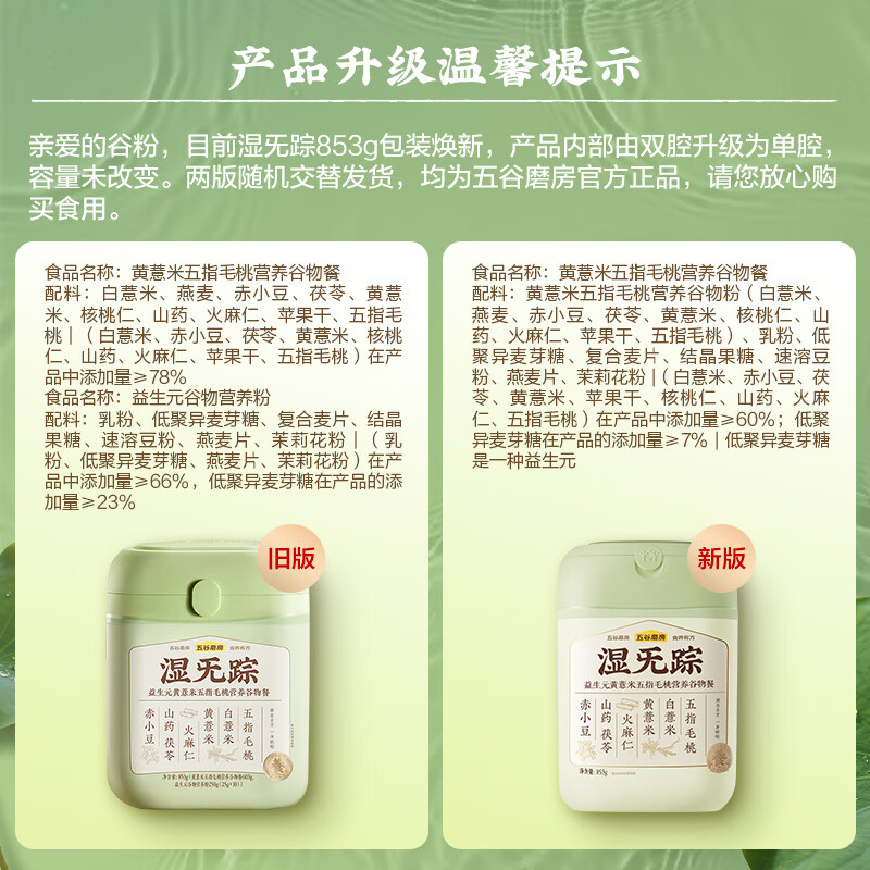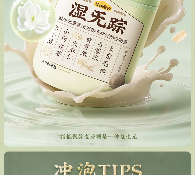 五谷磨房 湿旡踪五指毛桃益生元黄薏米茯苓代餐粉药食同源853g东来同款