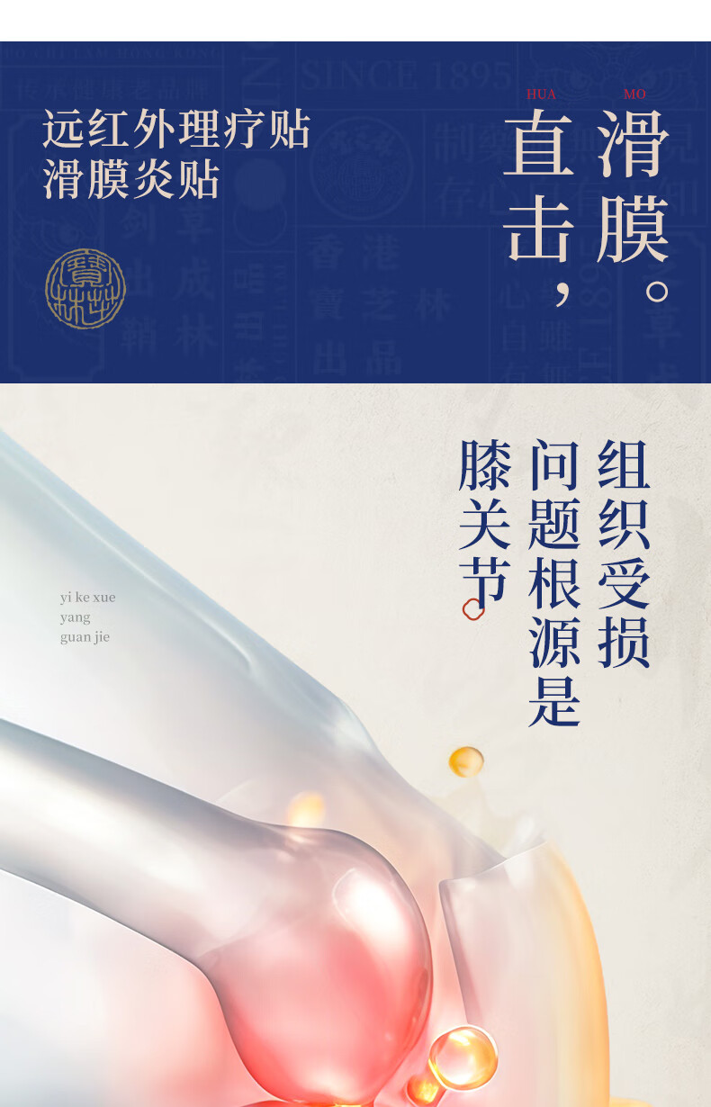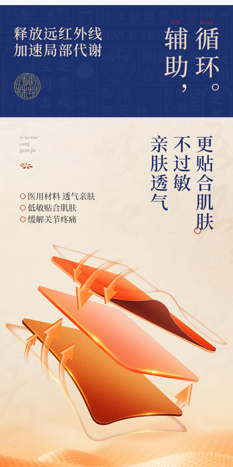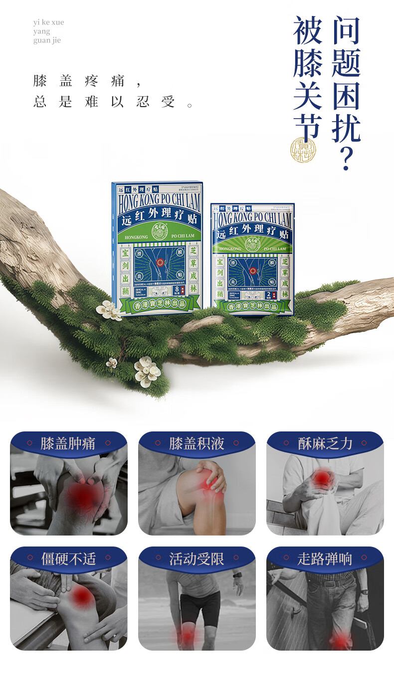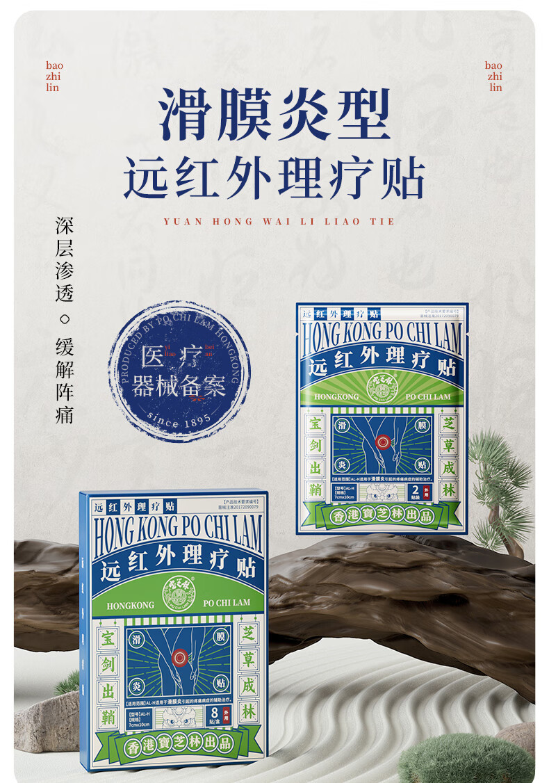 宝芝林 PO CHI LAM香港 膝盖疼痛滑膜炎关节痛专用积液半月板损伤热敷膏药贴
