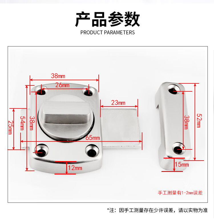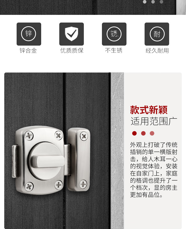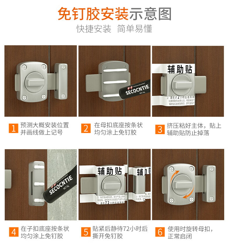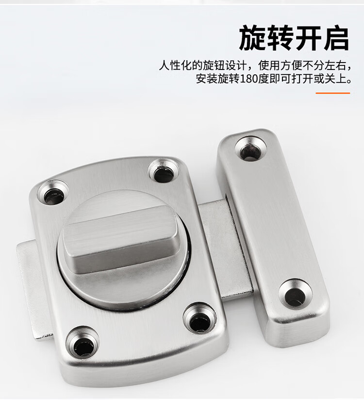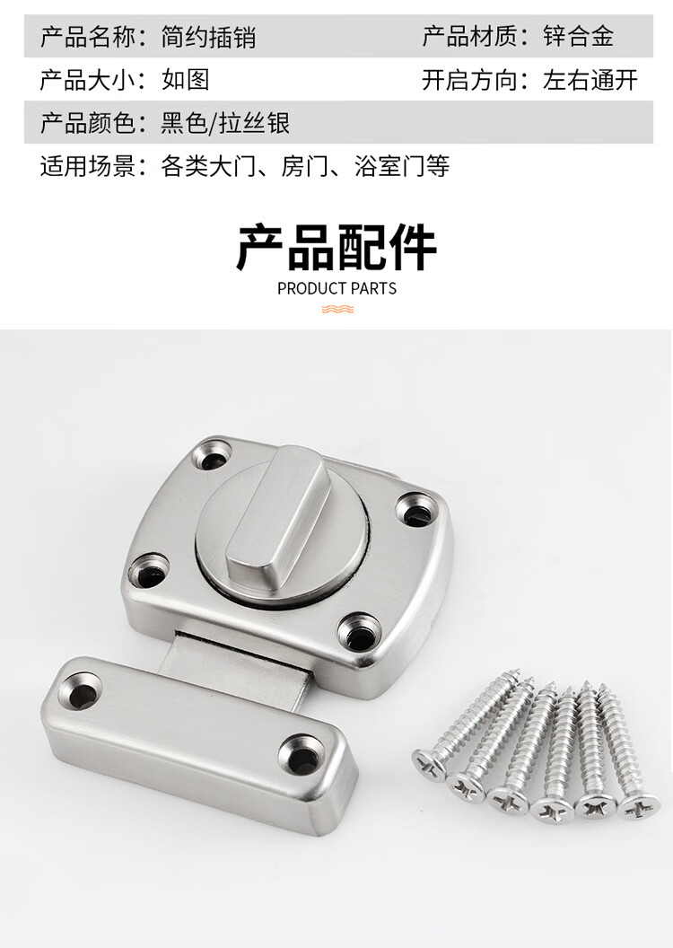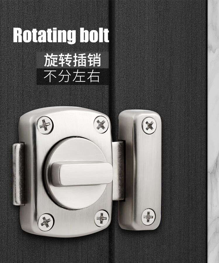 奥本免打孔插销卫生间门栓学生宿舍插销卧室门反锁卡扣50-40银色