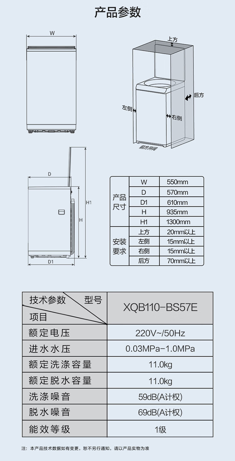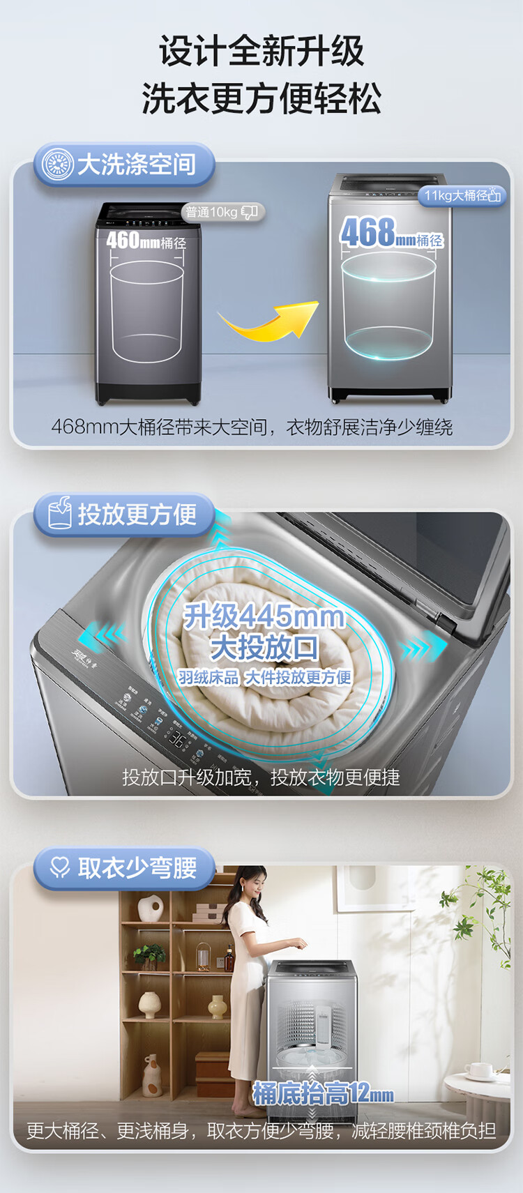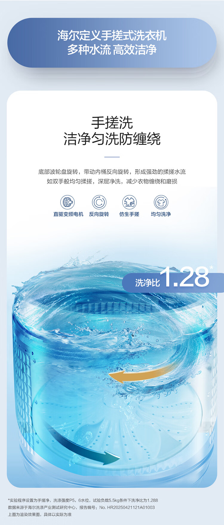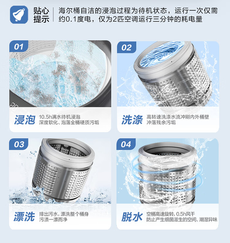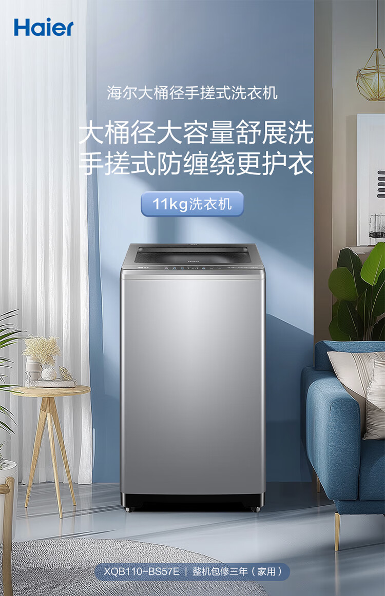 海尔(Haier)波轮洗衣机全自动懒人家用超大筒 11公斤大容量 直驱变频 一级能效 国家补贴以旧换新XQB110-BS57E