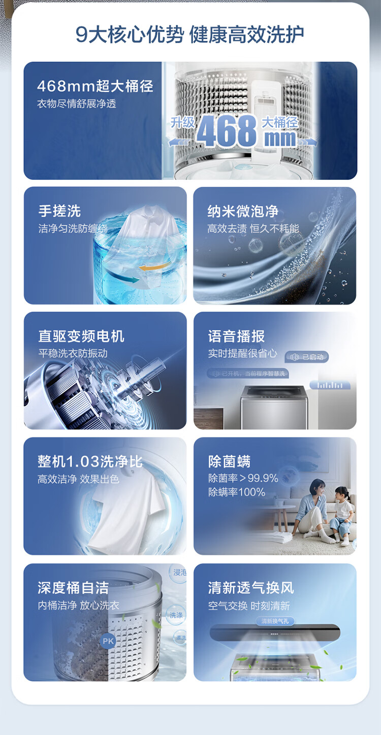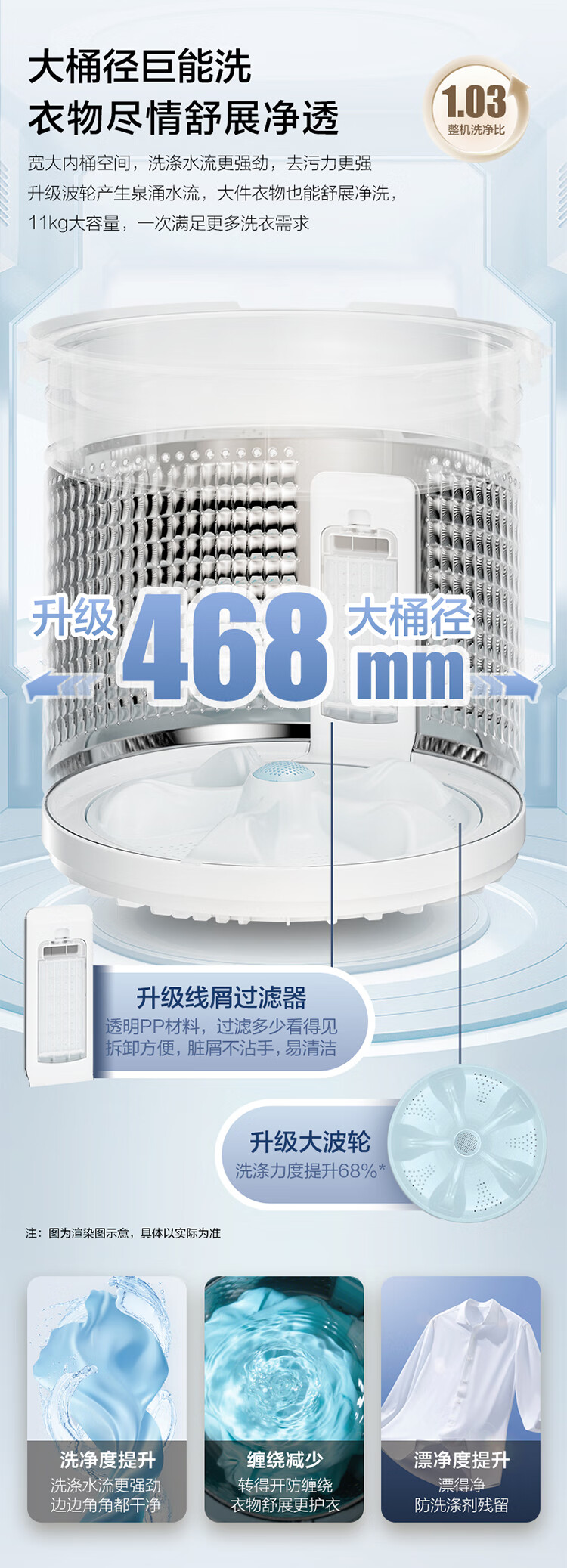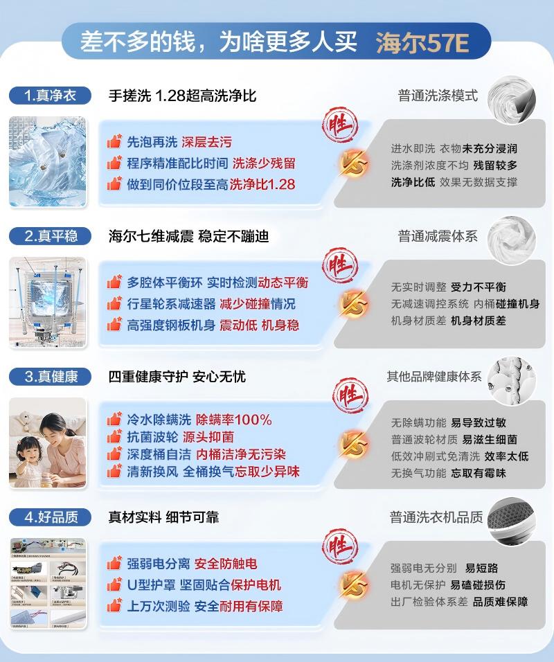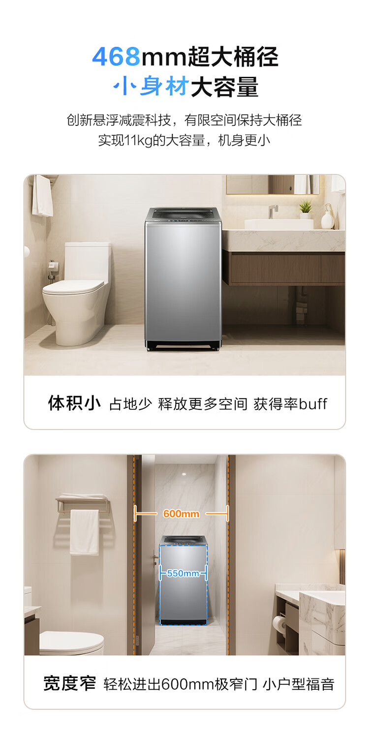 海尔(Haier)波轮洗衣机全自动懒人家用超大筒 11公斤大容量 直驱变频 一级能效 国家补贴以旧换新XQB110-BS57E