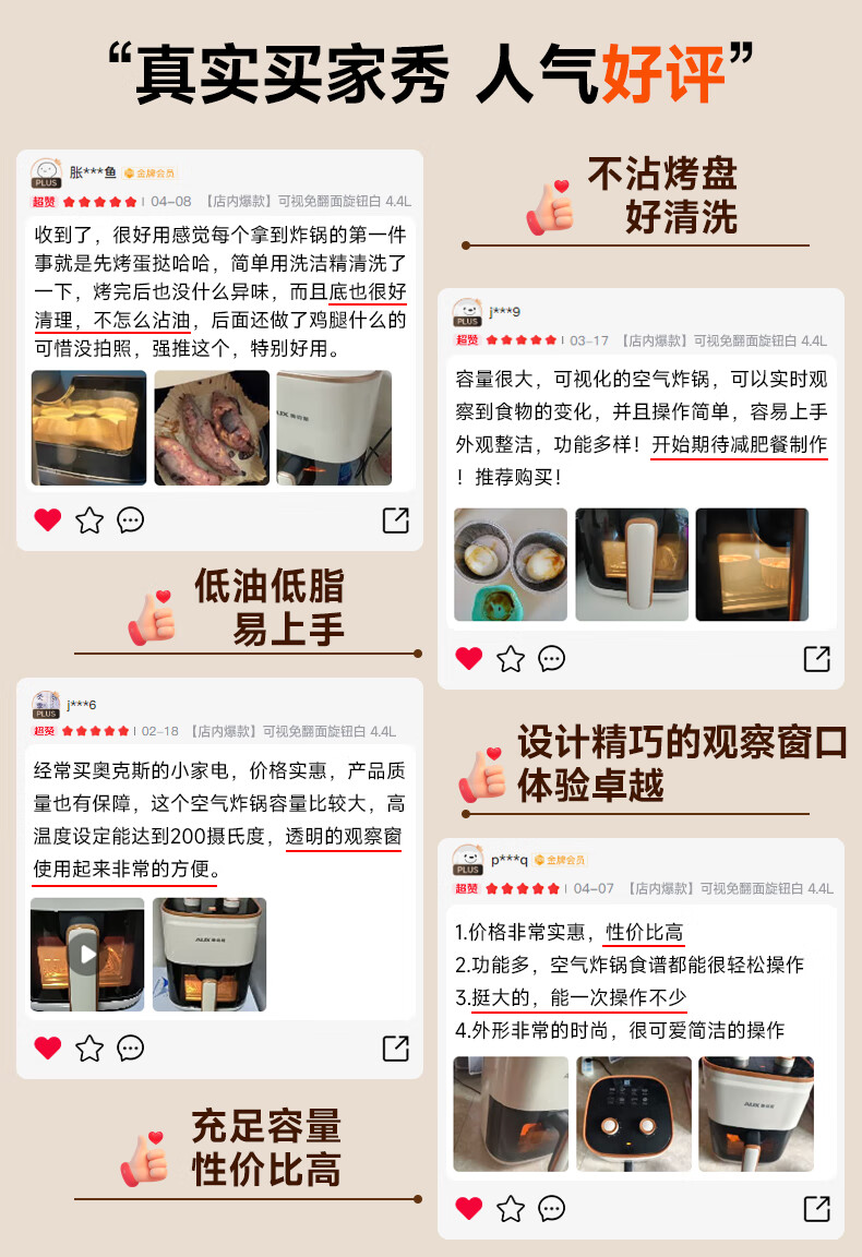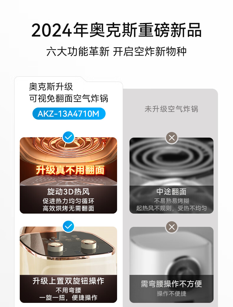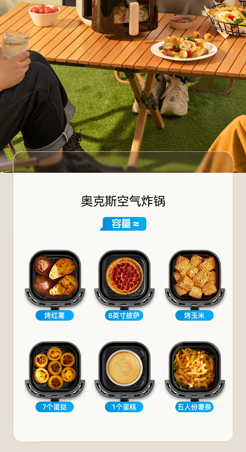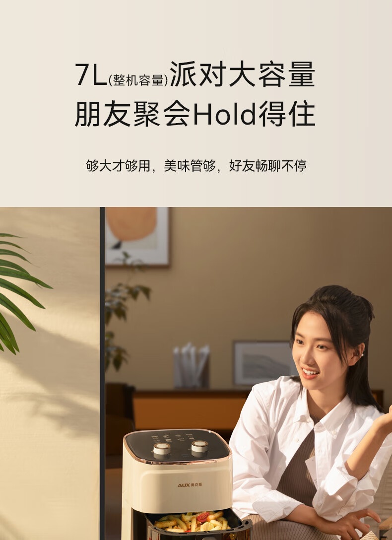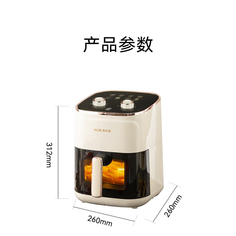 奥克斯(AUX)空气炸锅家用可视整机7L大容量精准定时无油烟电炸锅低脂不沾煎炸锅大功率烤箱薯条机