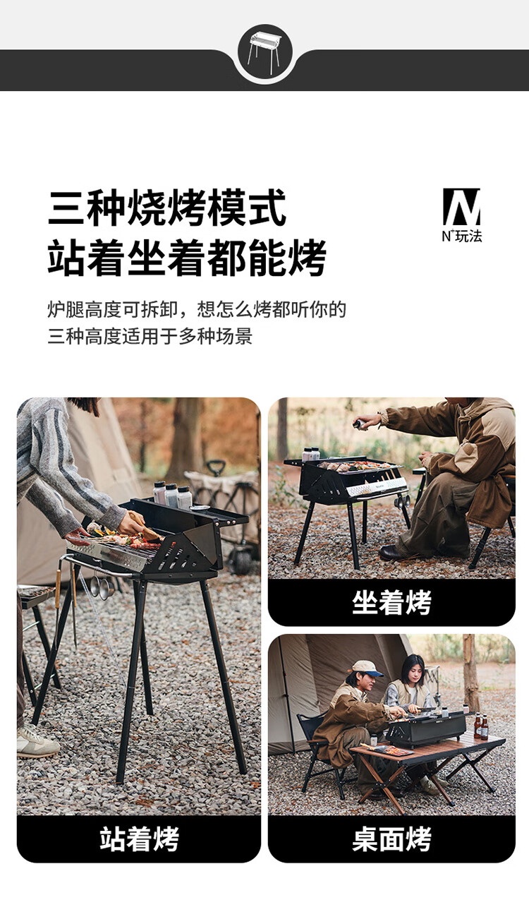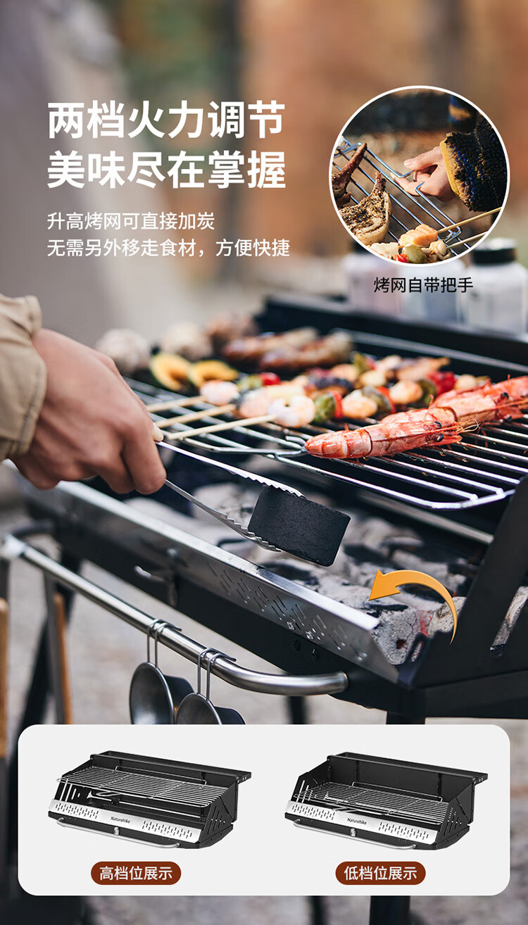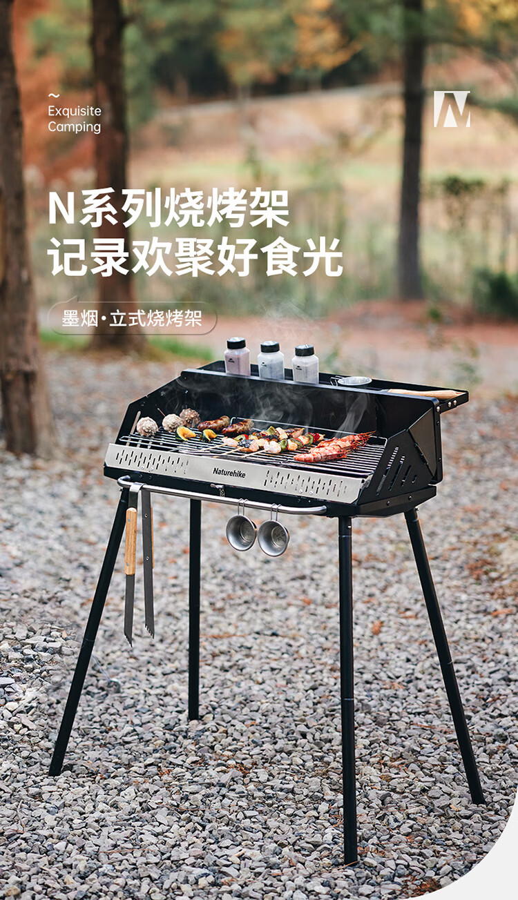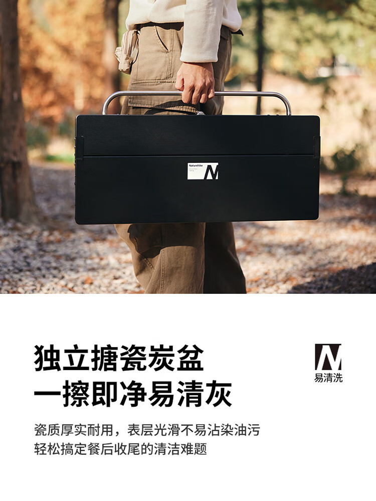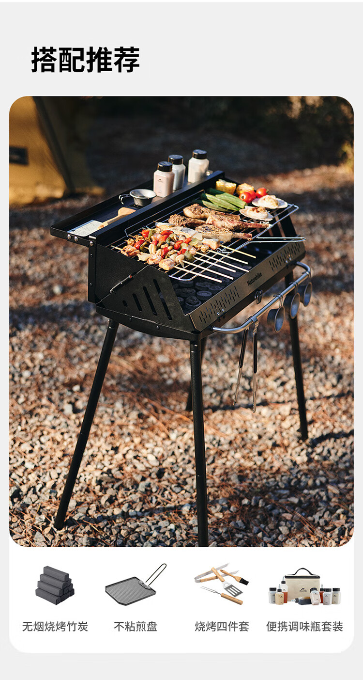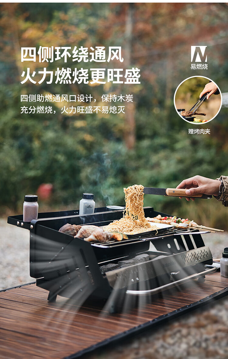 Naturehike挪客墨烟立式烧烤架烤肉炉户外木炭便携可折叠家用烤串炉围炉煮茶 暗夜黑