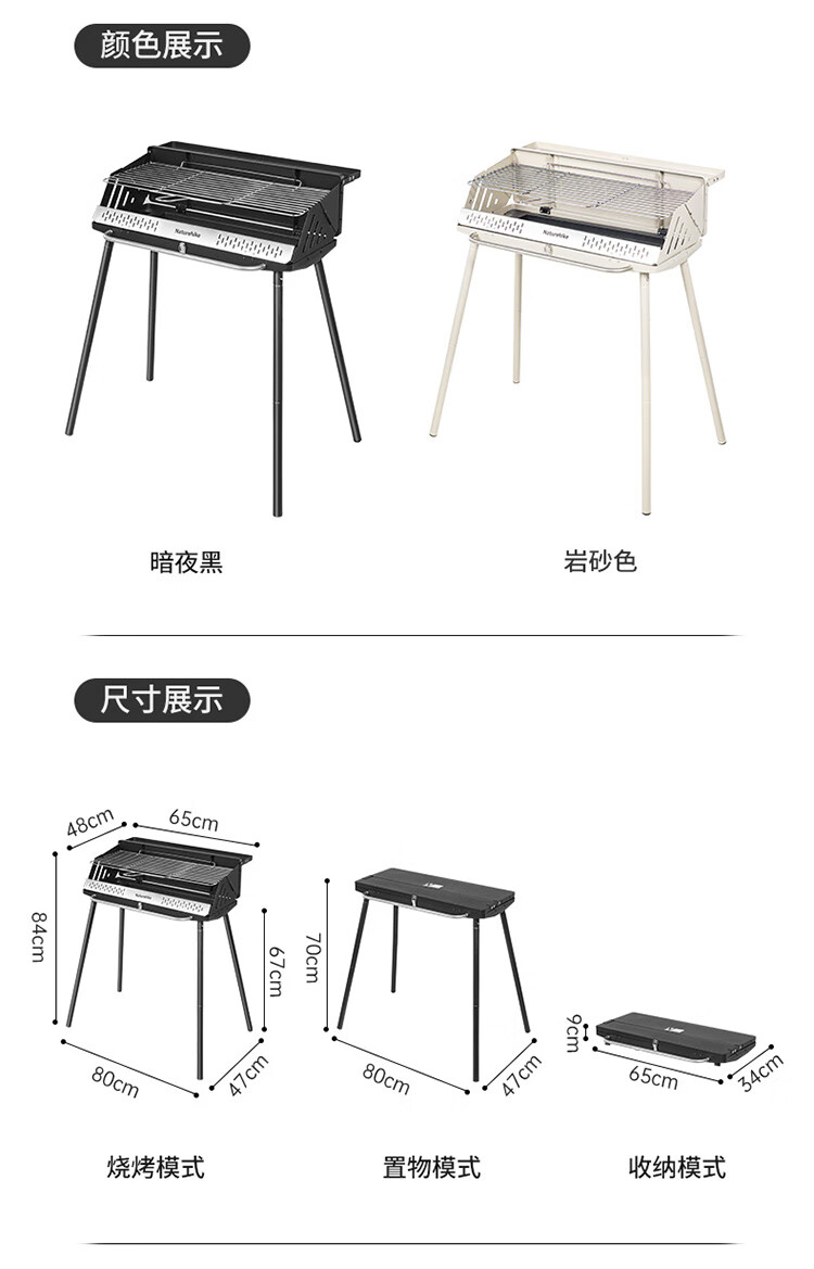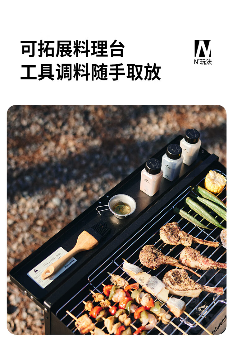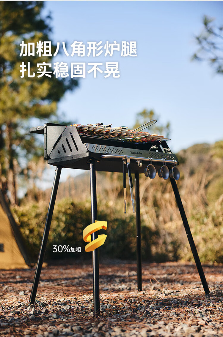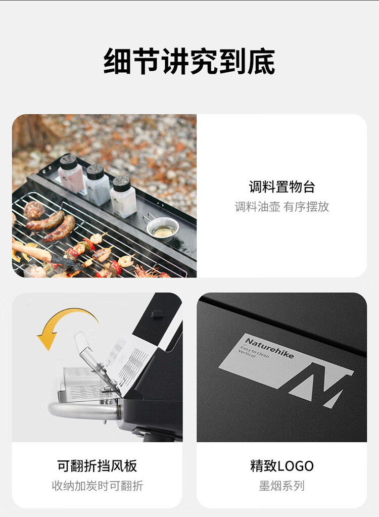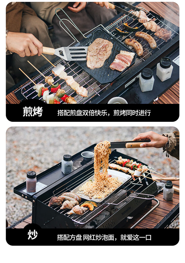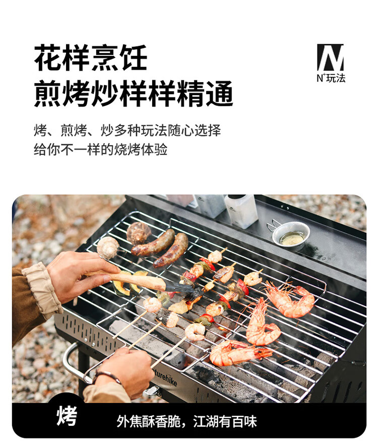 Naturehike挪客墨烟立式烧烤架烤肉炉户外木炭便携可折叠家用烤串炉围炉煮茶 暗夜黑