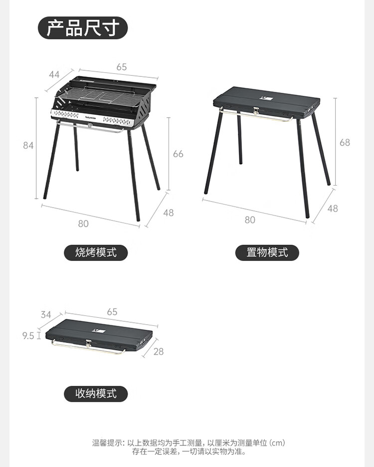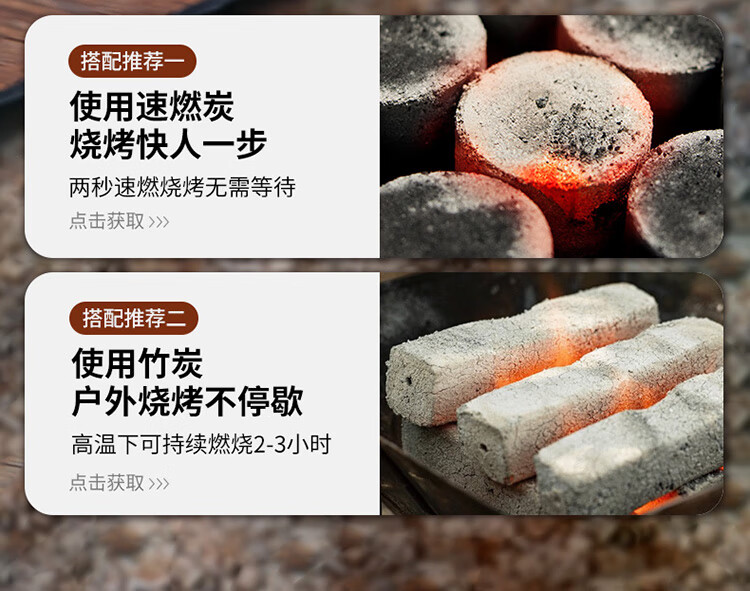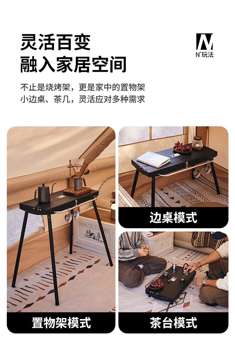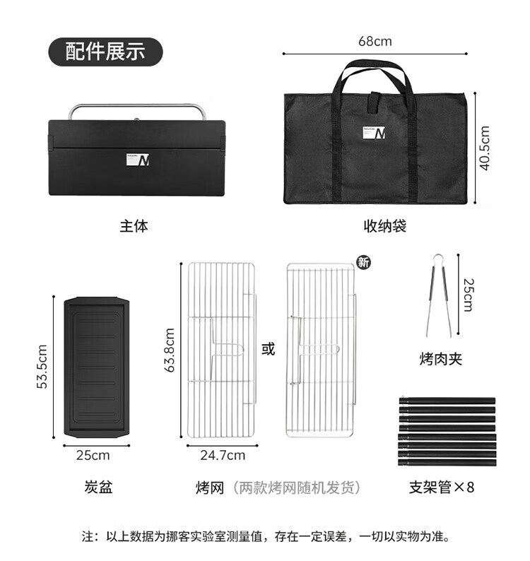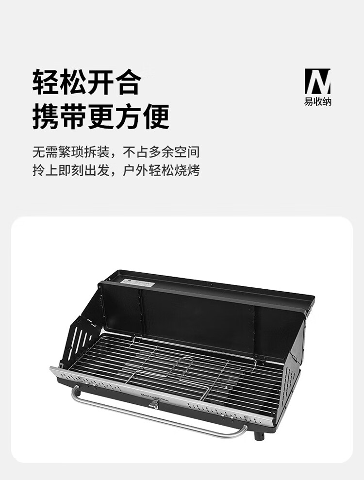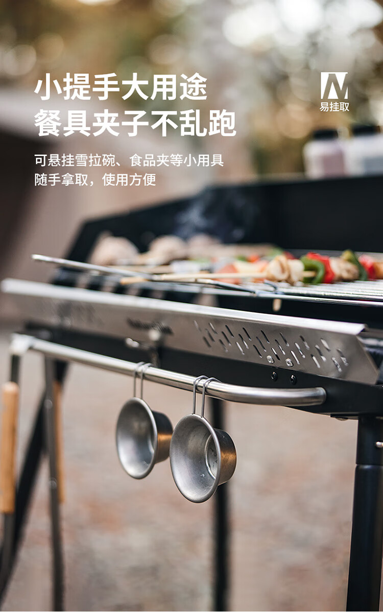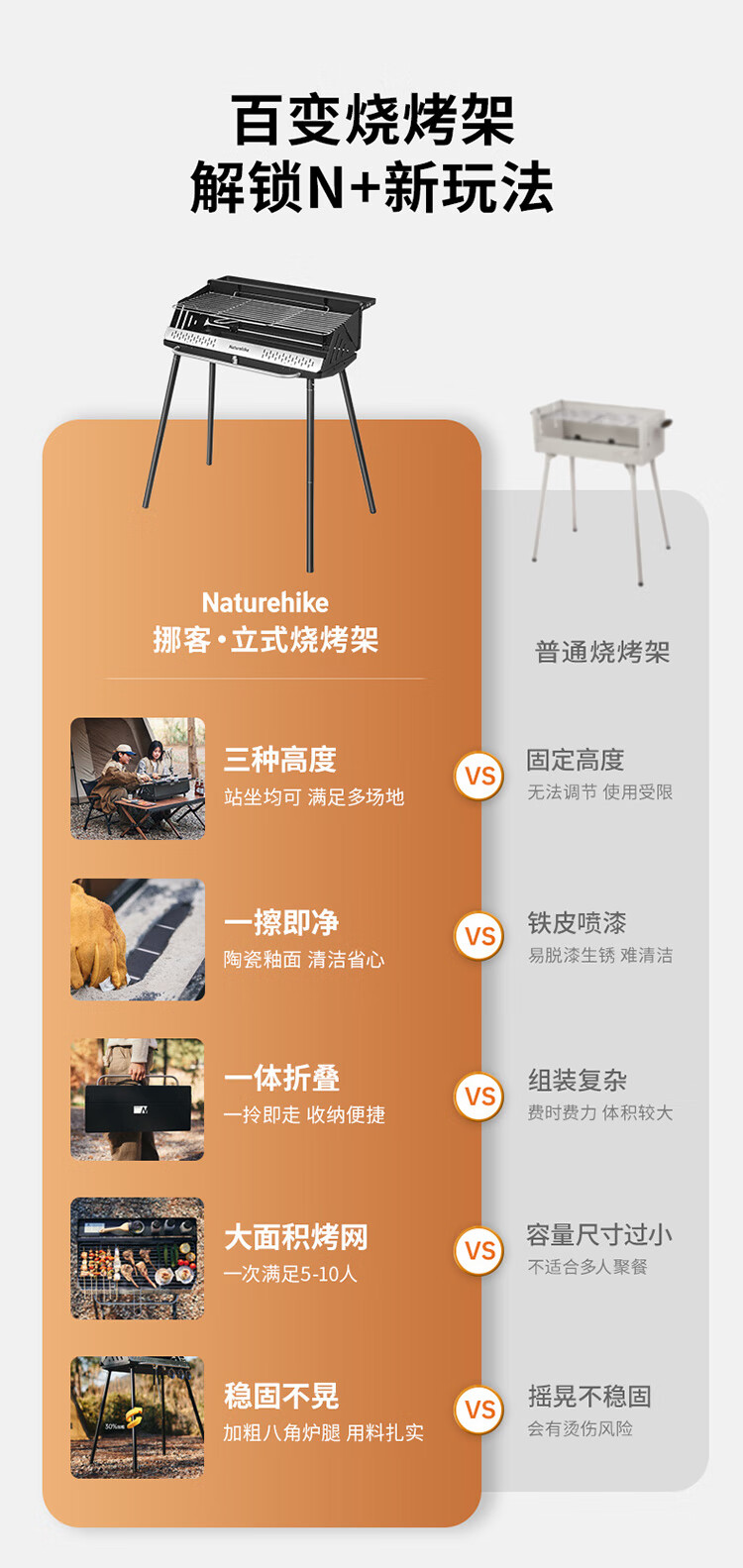 Naturehike挪客墨烟立式烧烤架烤肉炉户外木炭便携可折叠家用烤串炉围炉煮茶 暗夜黑