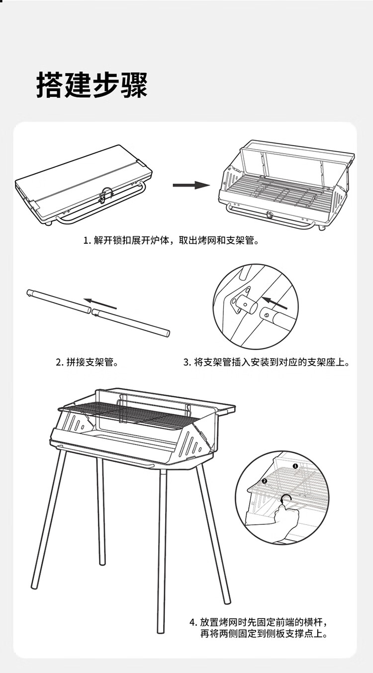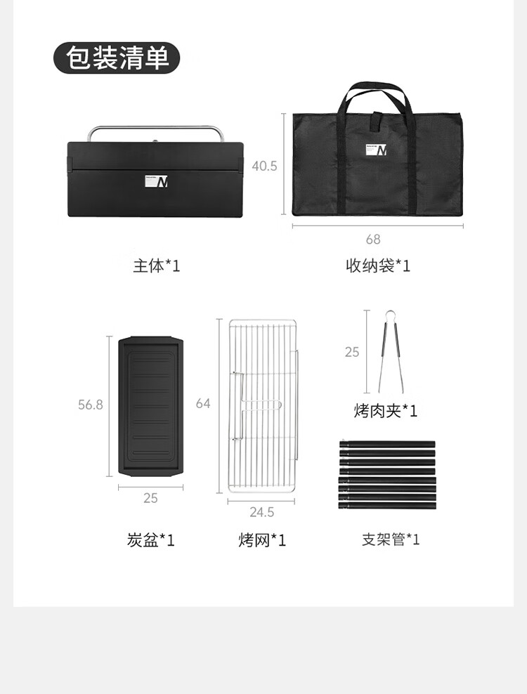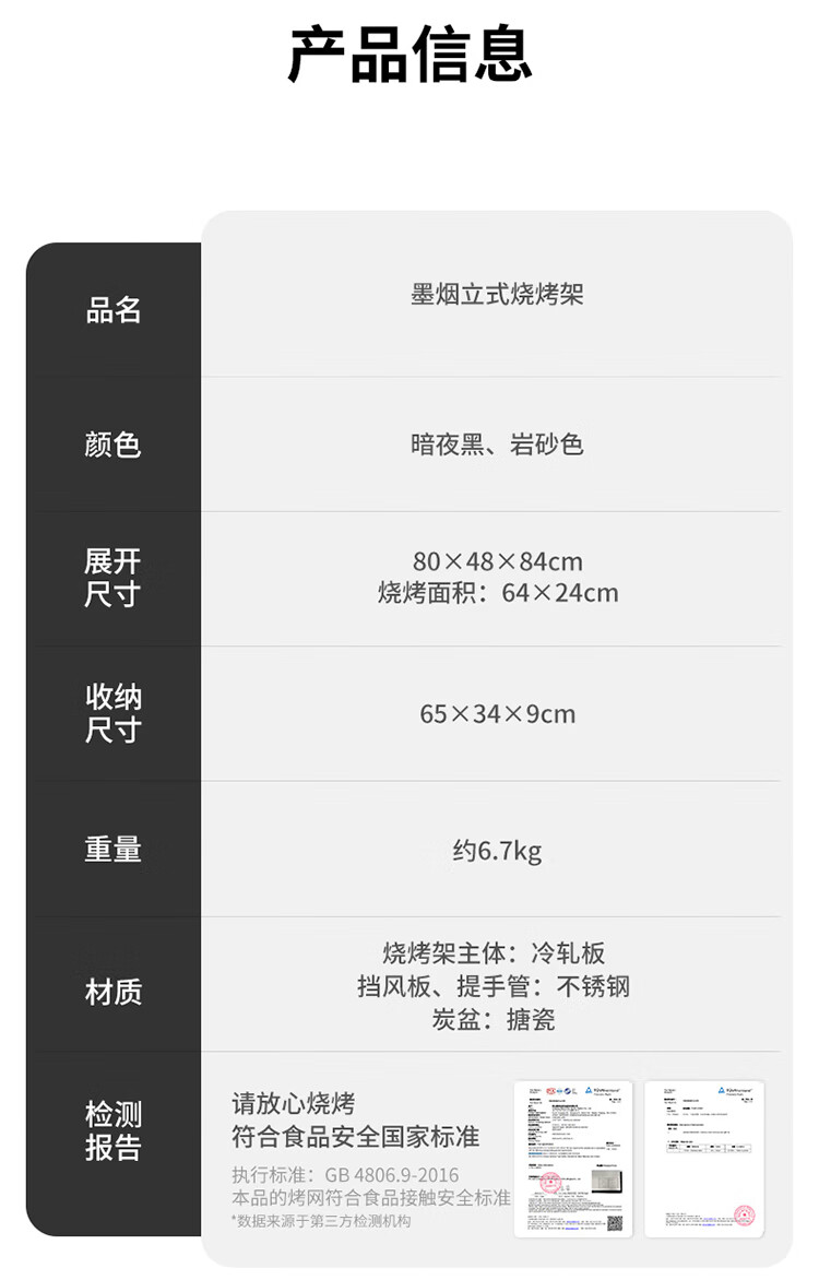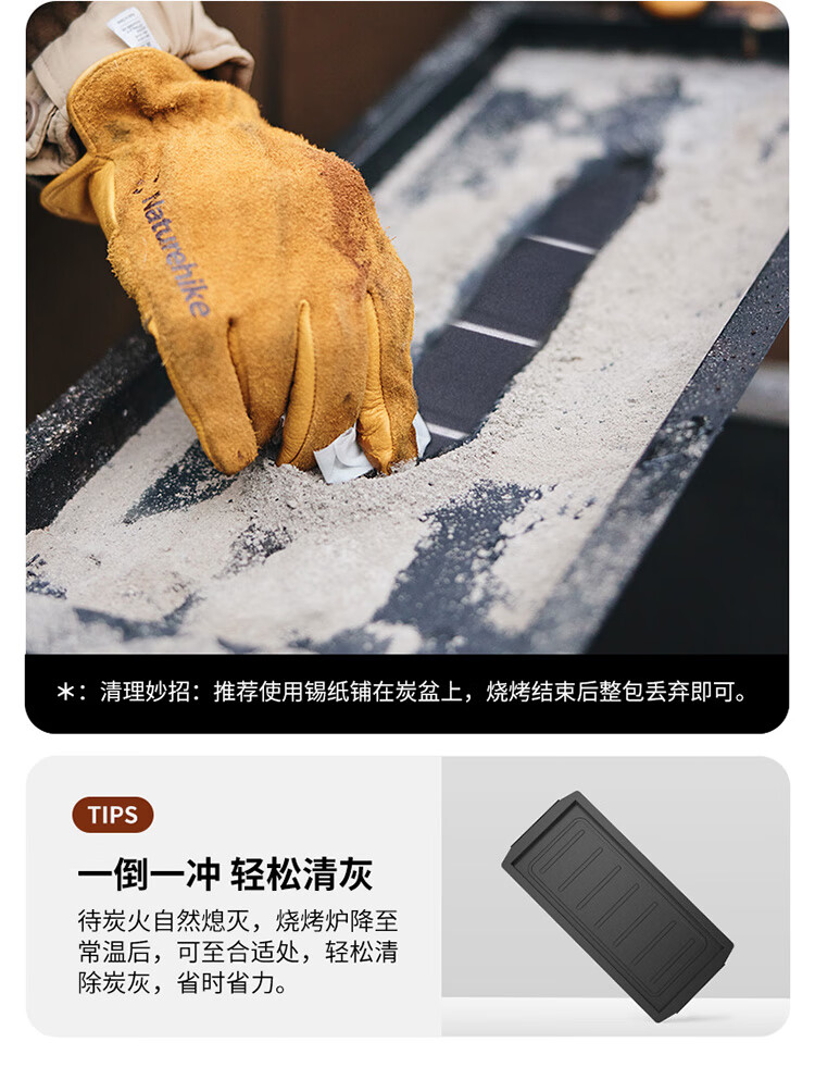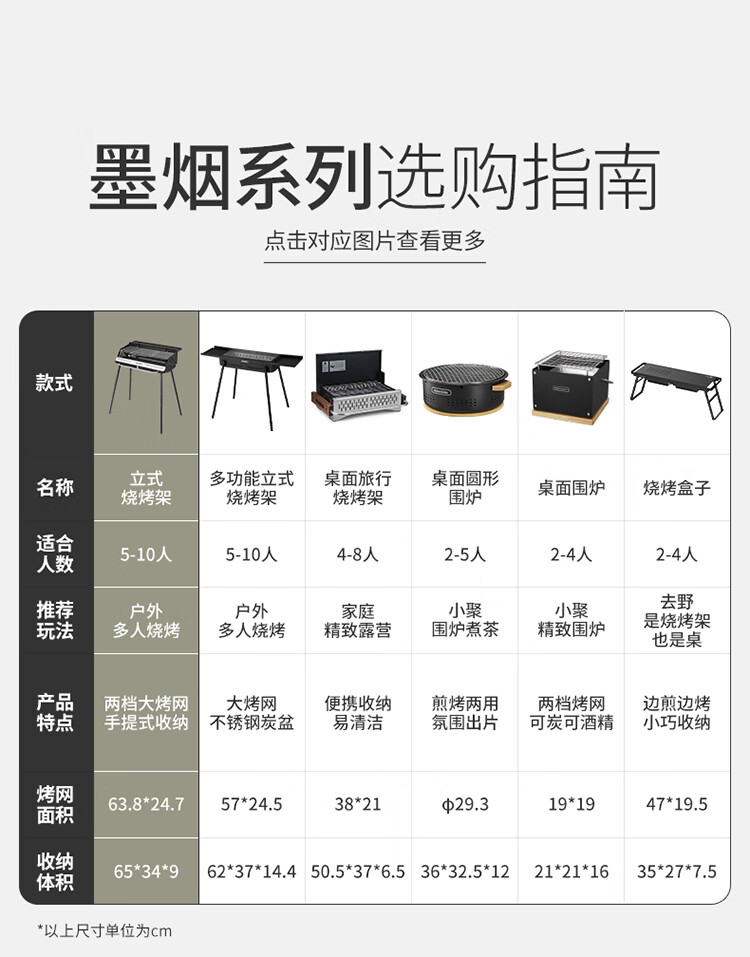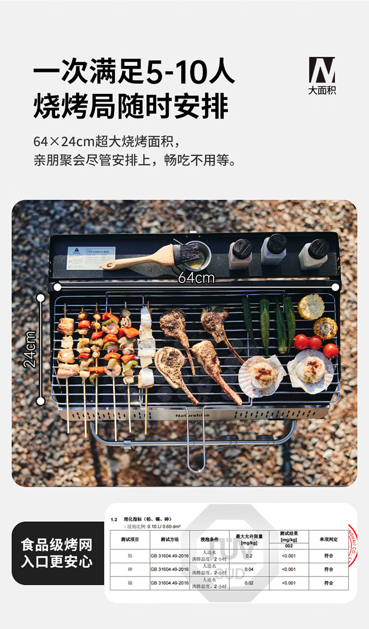 Naturehike挪客墨烟立式烧烤架烤肉炉户外木炭便携可折叠家用烤串炉围炉煮茶 暗夜黑