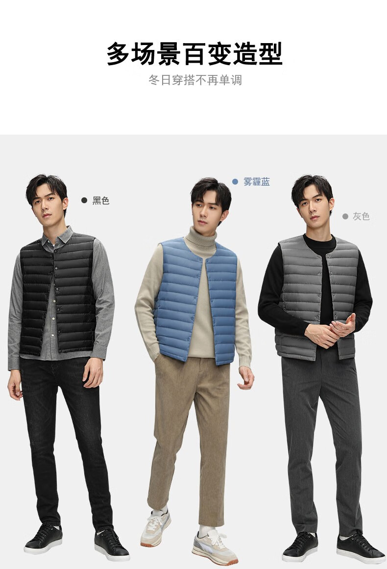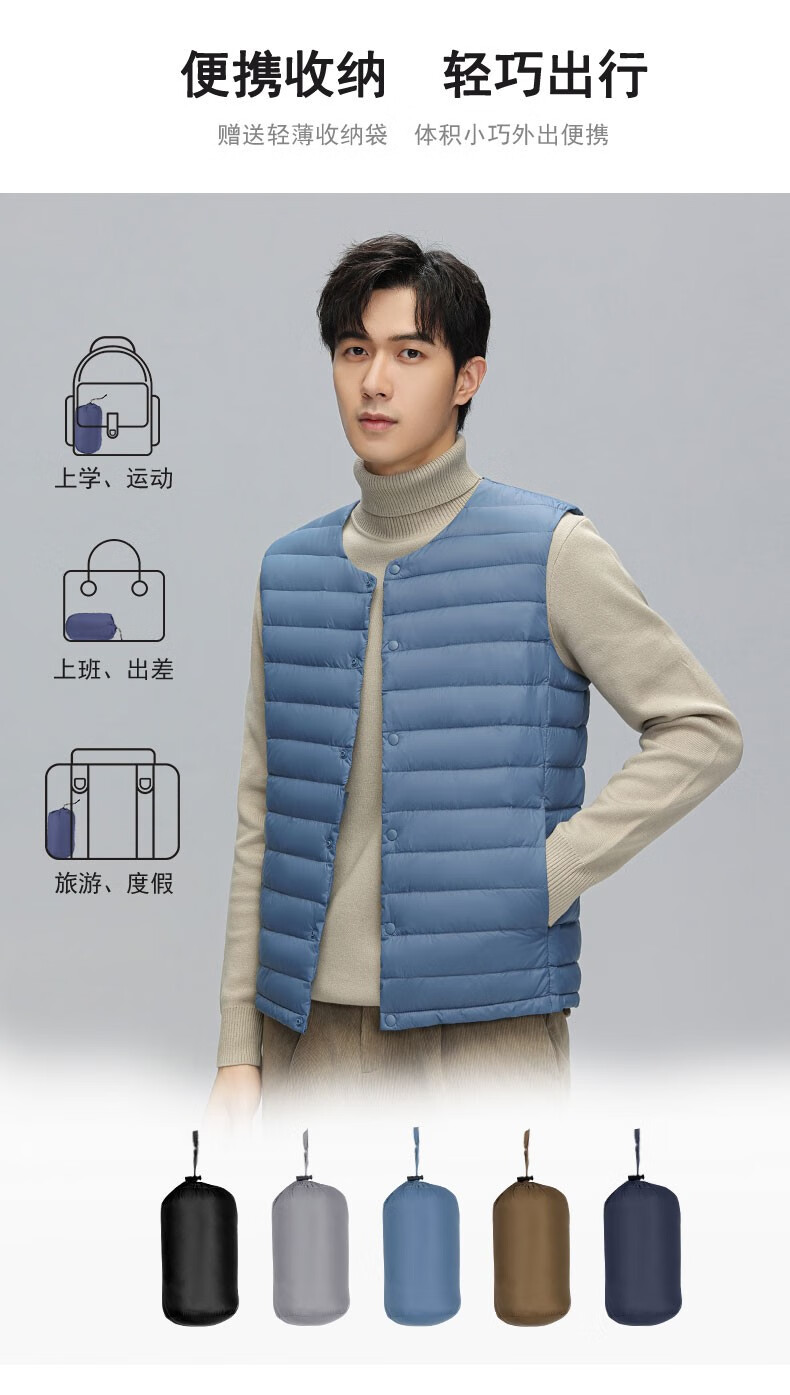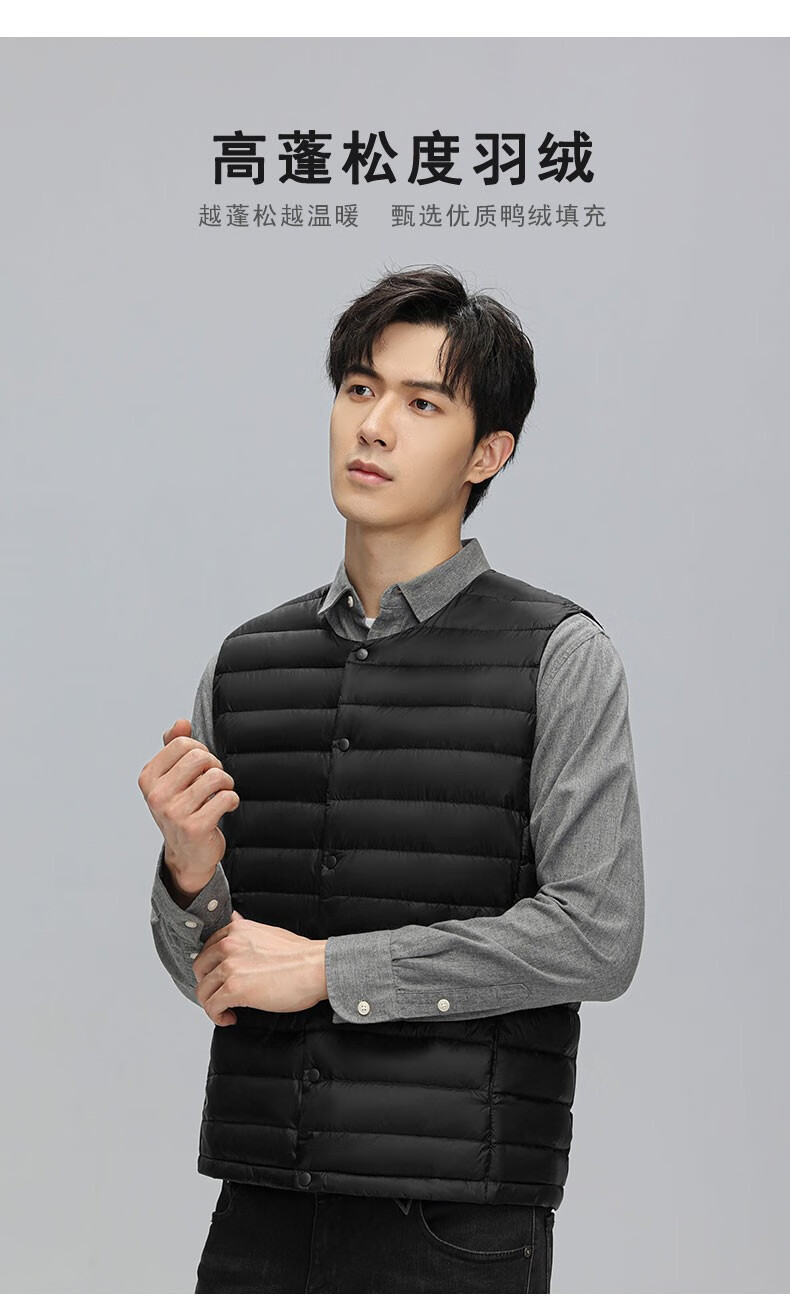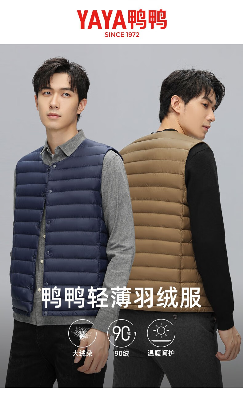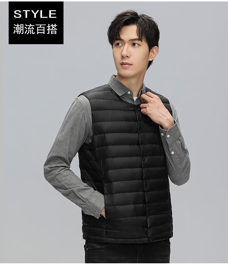 鸭鸭(YAYA)反季羽绒服男冬季轻薄羽绒背心内穿马夹男士保暖内胆薄款马甲KX 黑色 2XL /185