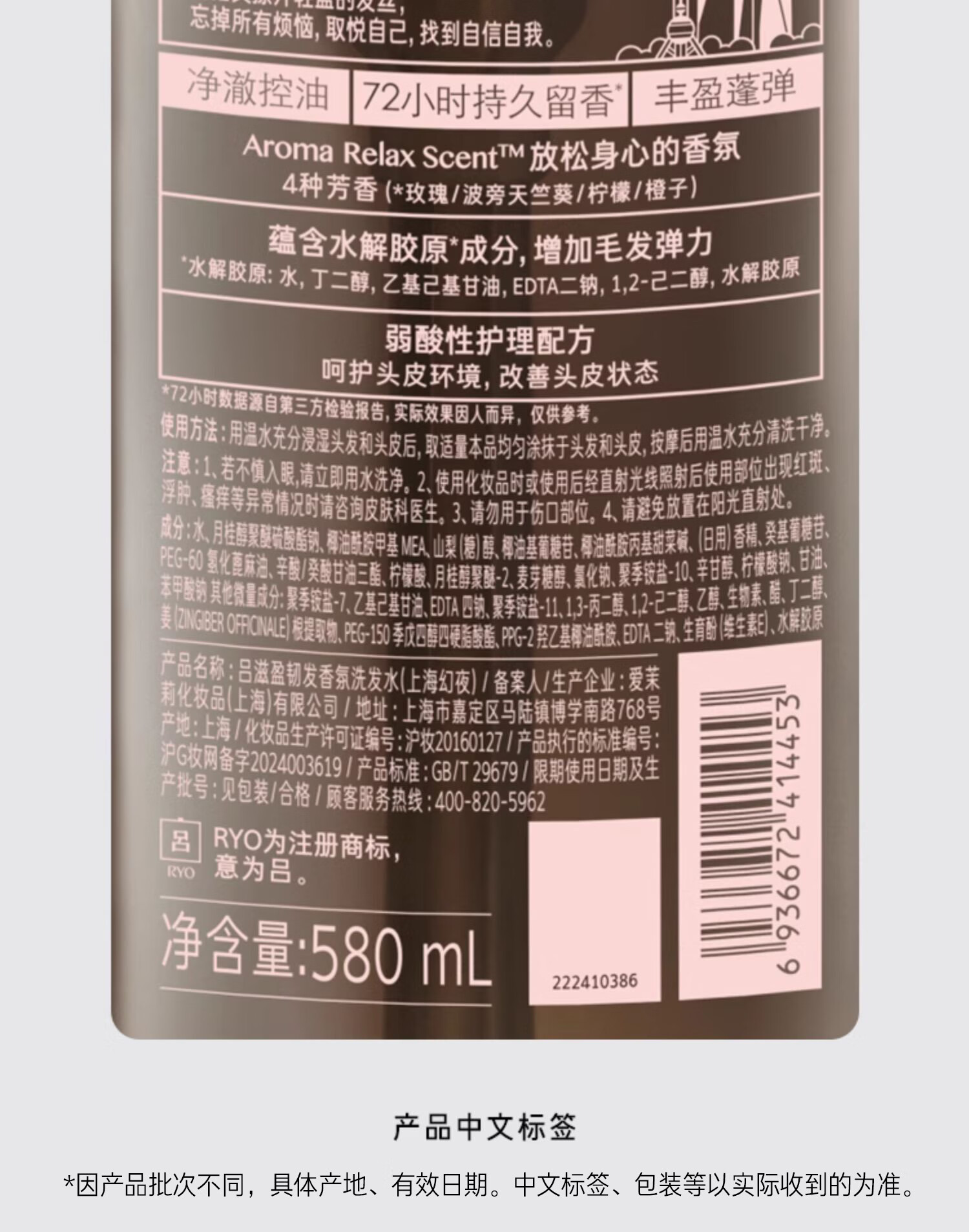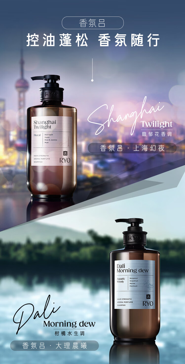 吕(Ryo)香氛吕洗发水上海幻夜580ml+大理晨曦580ml控油蓬松留香热门商品