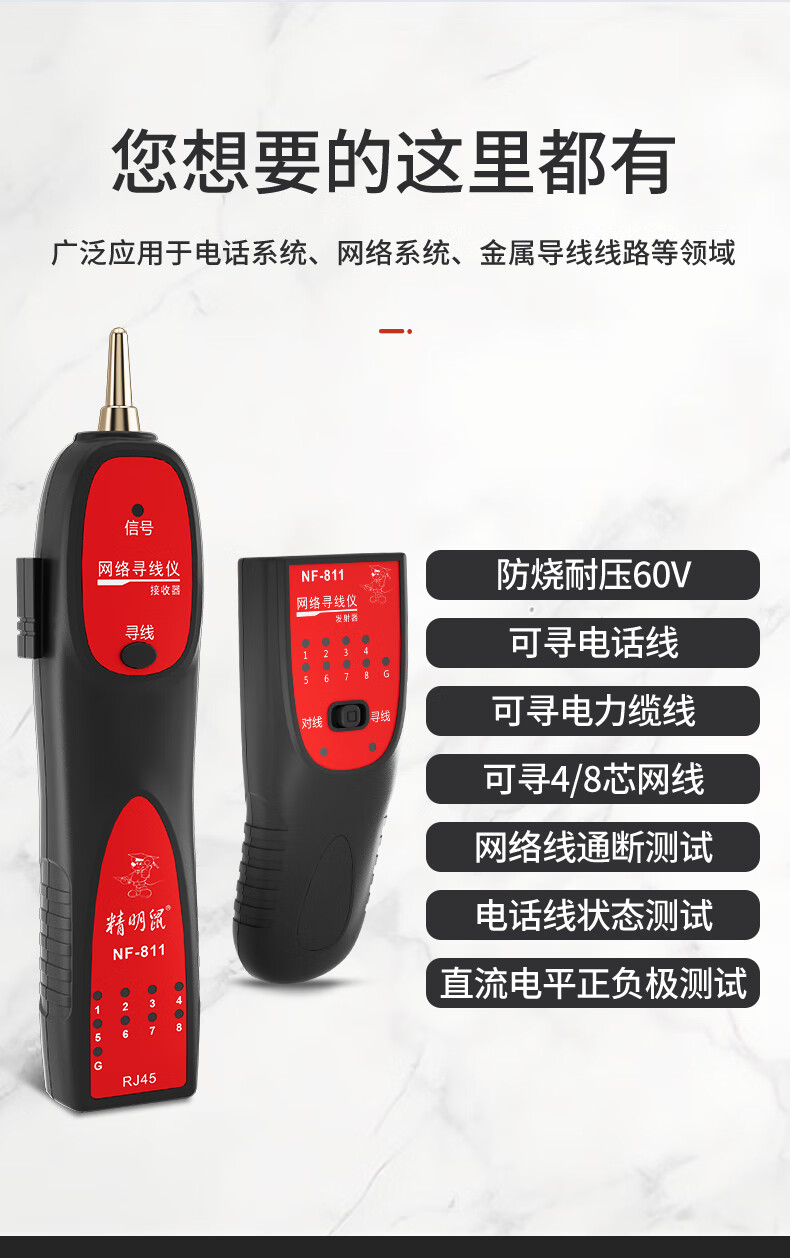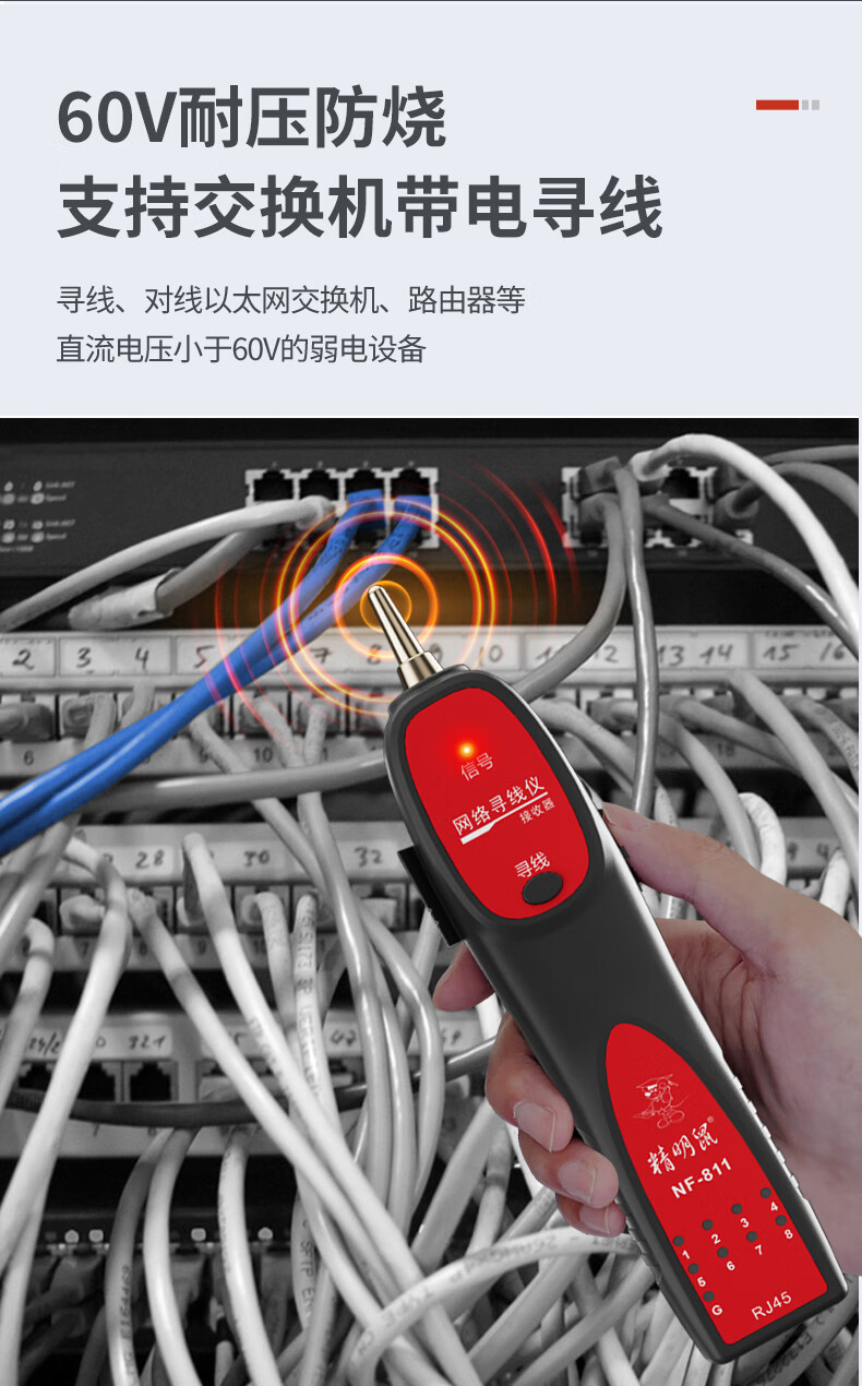精明鼠 NOYAFA NF-811 新上市寻线仪 可寻四芯网线耐压60V 布线帮手测线仪寻线器