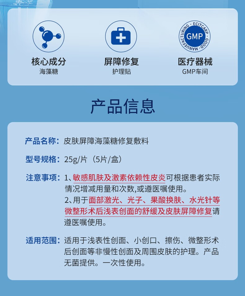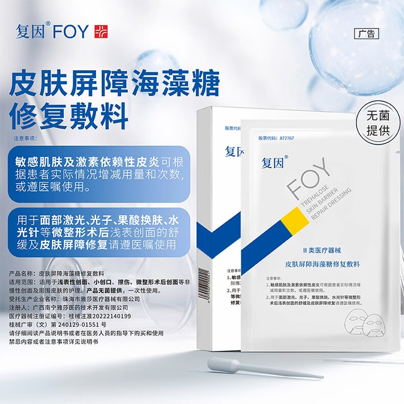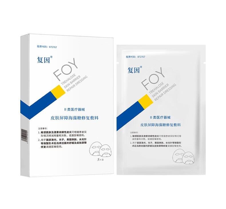 复因FOY 皮肤屏障海藻糖修复敷料面部术后创面舒缓皮肤屏障修复 【5片-无盒体验装】皮肤屏障海藻糖修复敷料25g