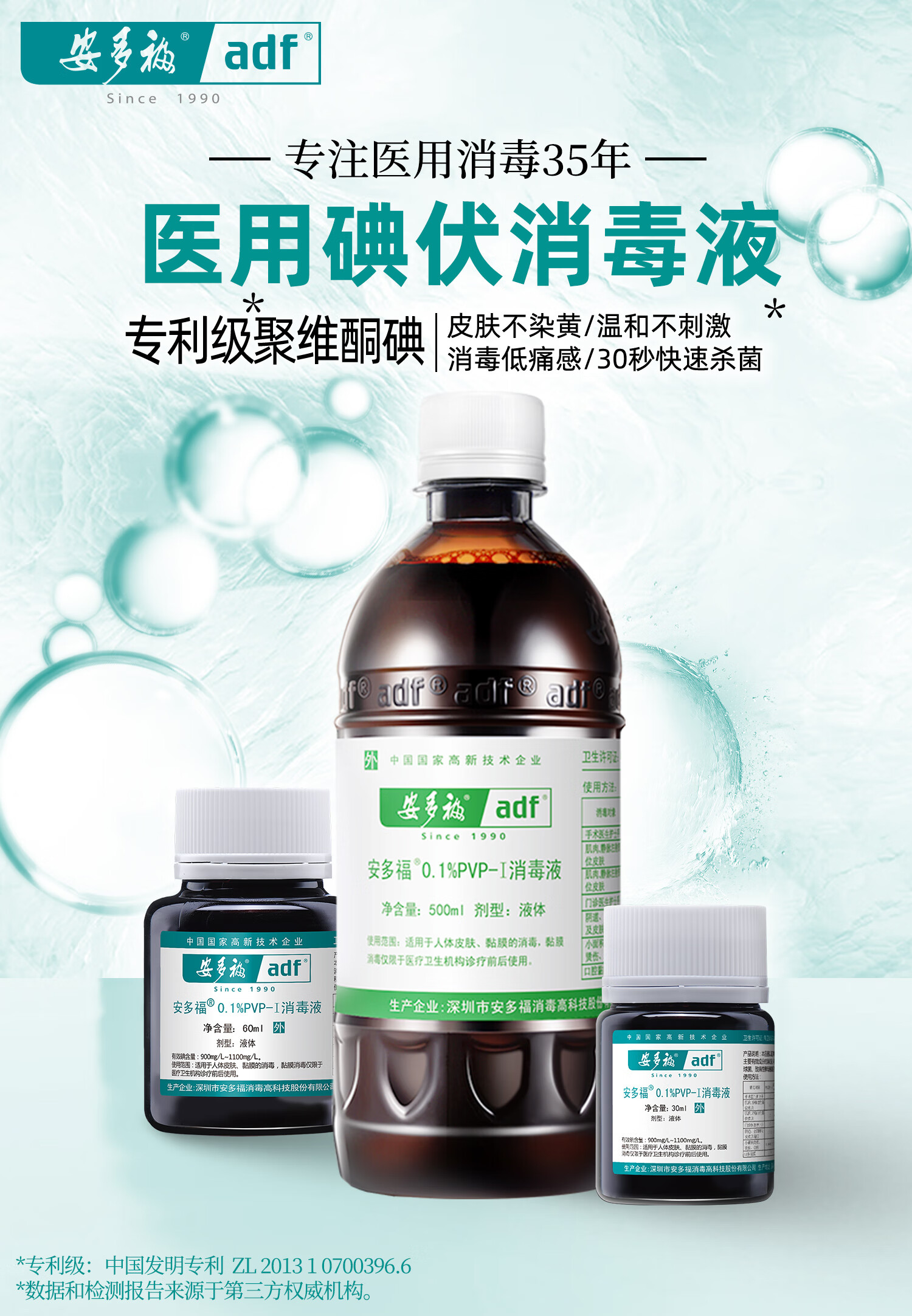 安多福0.1%聚维酮碘消毒液碘伏消毒液新生儿婴儿适用居家常备医护防感染 500mL*1瓶【医护同款】