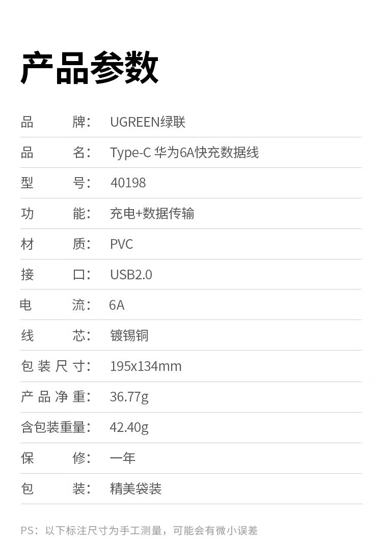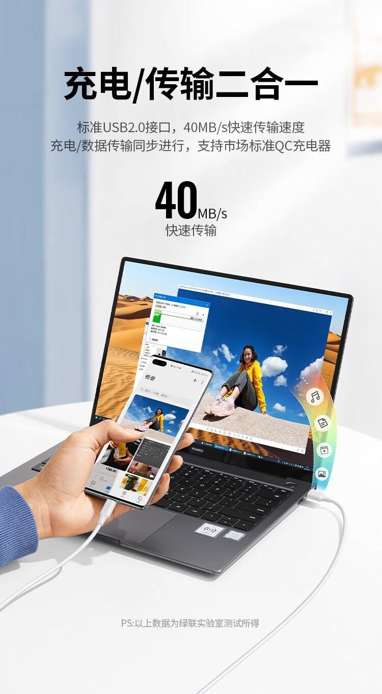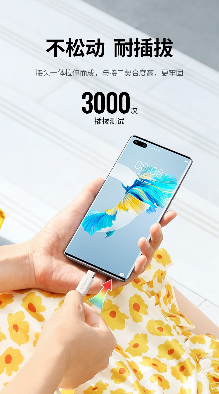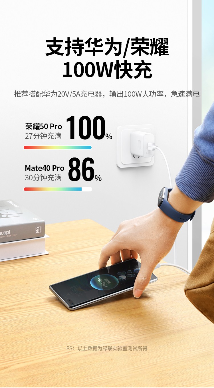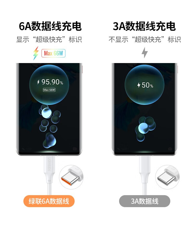 绿联 Type-C数据线6A超级快充线100W通用66w华为P50/Mate40荣耀小米安卓手机充电器线 【6A超级快充-黑色细腻磨砂】 1米
