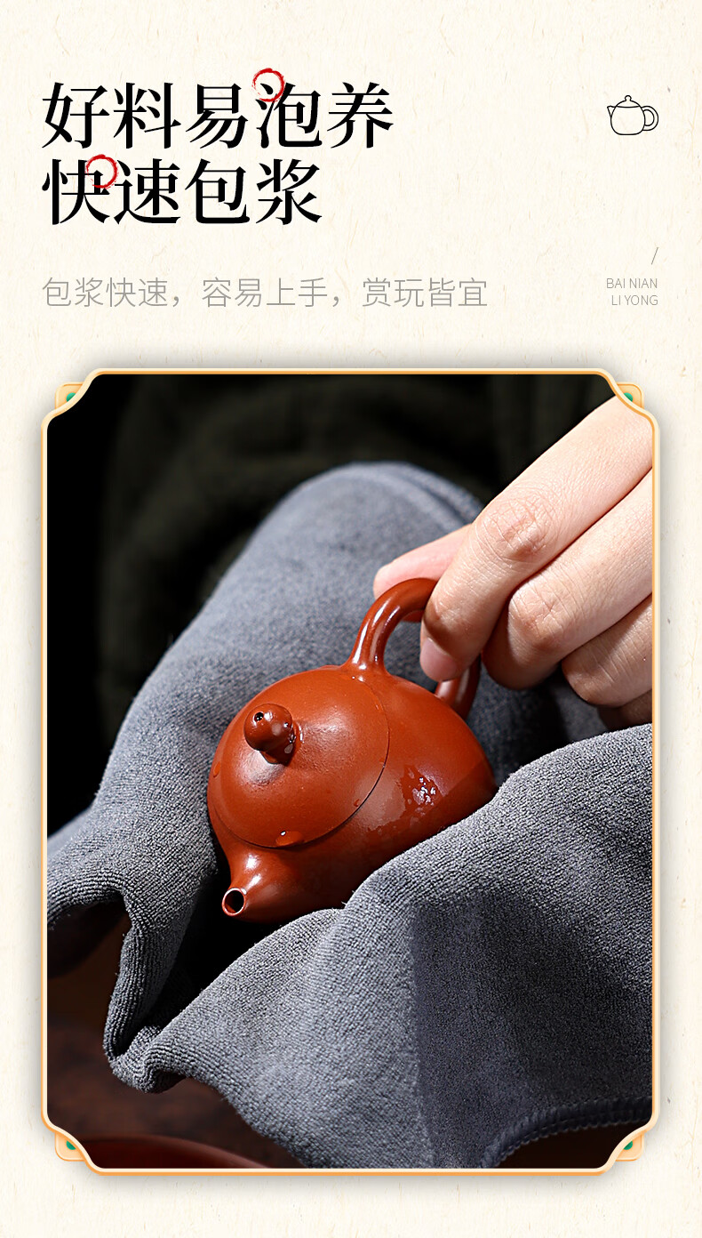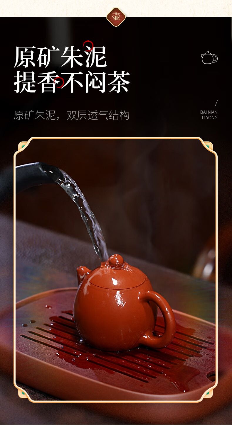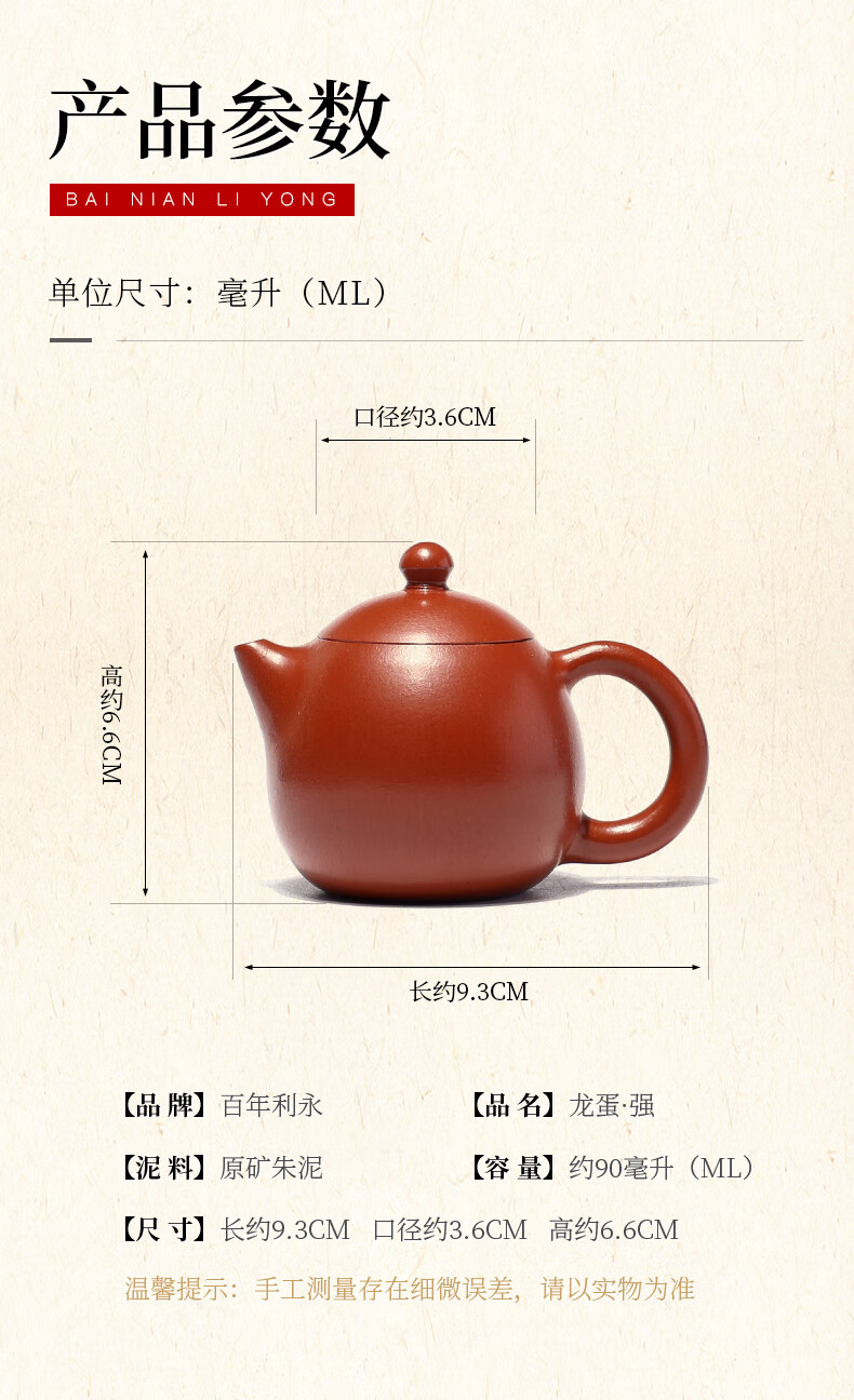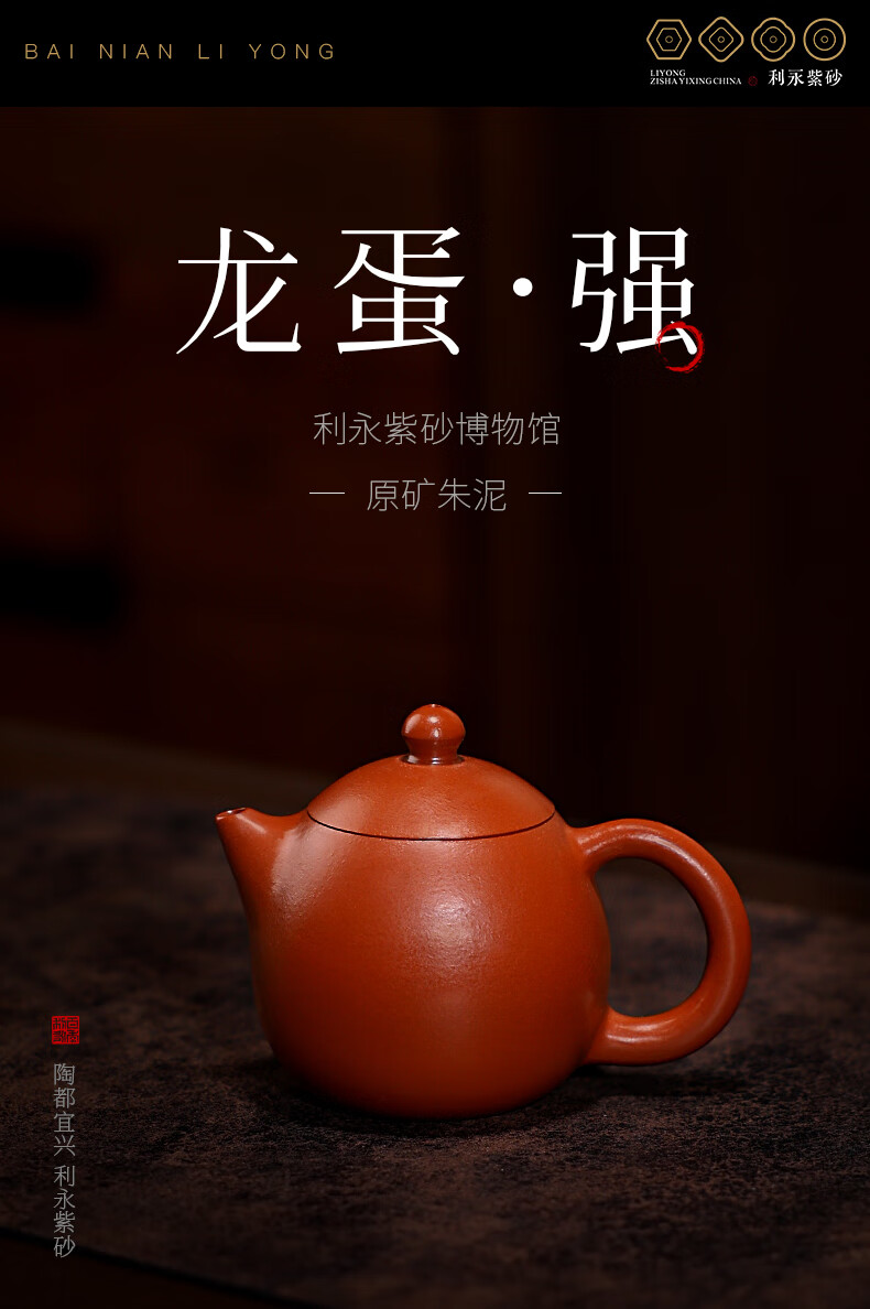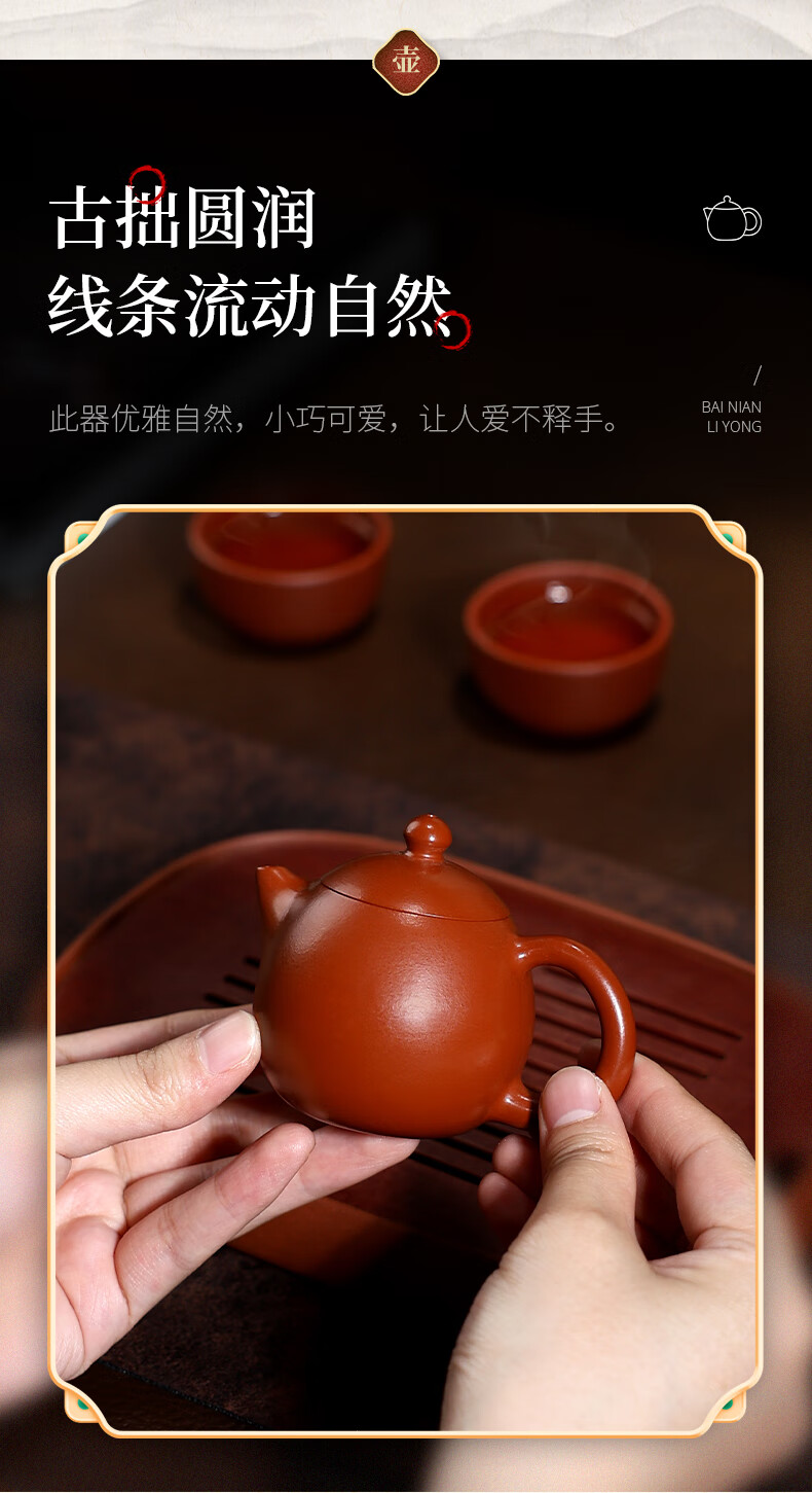 百年利永宜兴紫砂壶纯全手工原矿朱泥龙蛋壶功夫茶具泡茶壶家用90ml