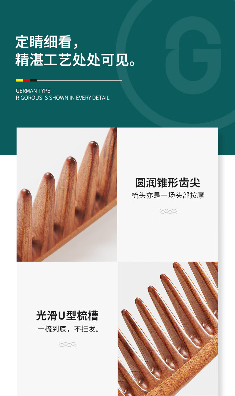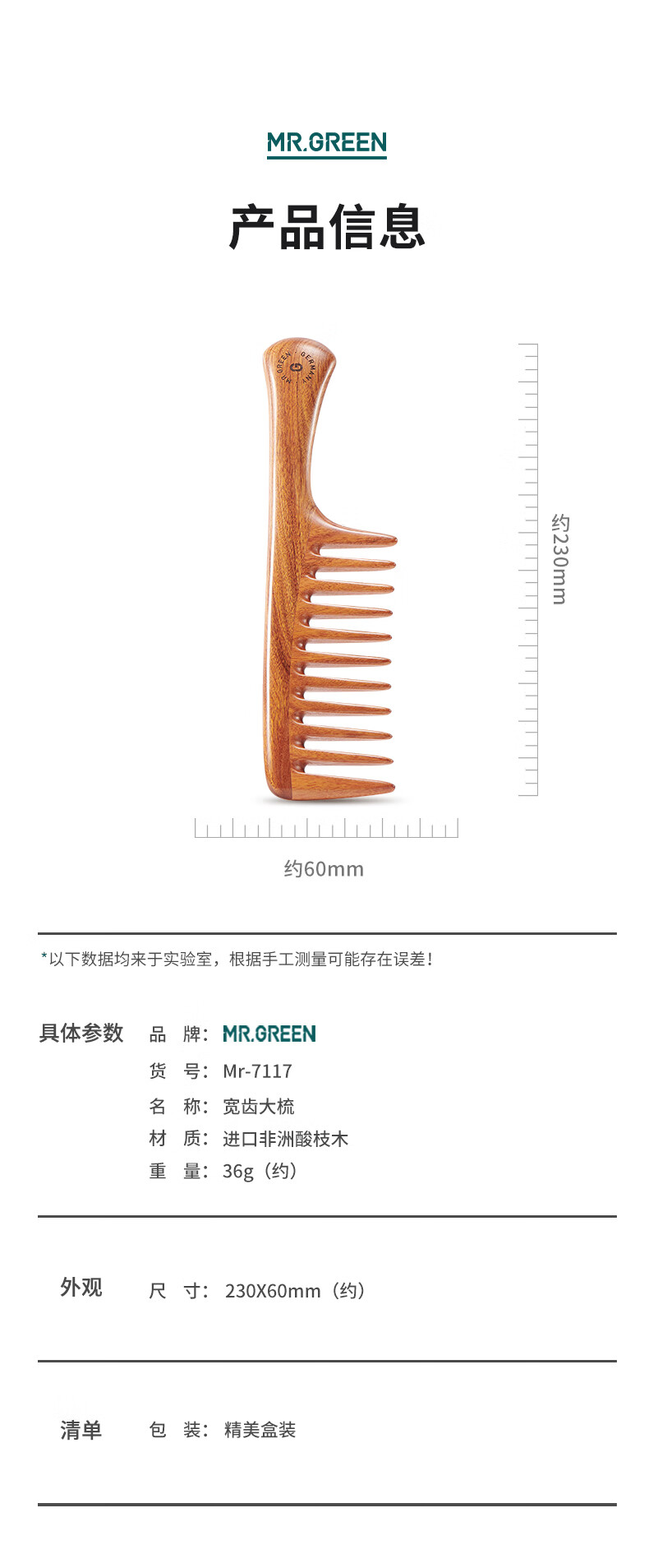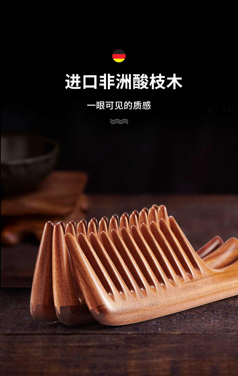 MR.GREEN 德国木梳女按摩梳子宽齿梳非洲酸枝木梳礼盒礼物送妈母亲Mr-7117
