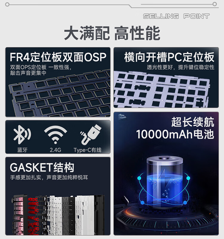 黑爵(AJAZZ)AK980V2三模无线机械键盘1万mAh电池Gasket全键热插拔2U0旋钮TFT彩屏RGB 原厂紫白蓝 礼物轴V2