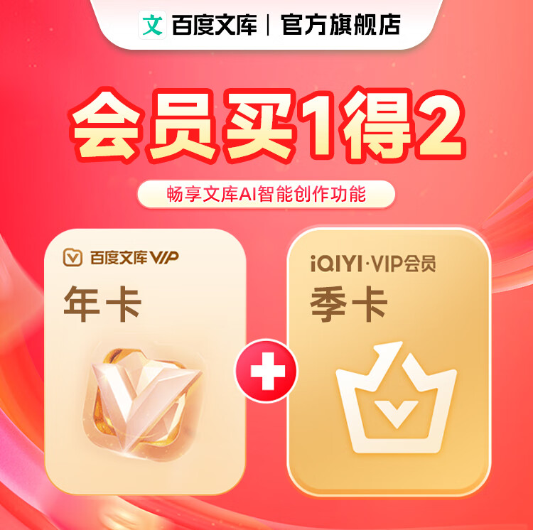 百度文库【买一赠一】百度文库会员2年卡+京东PLUS会员年卡【313】