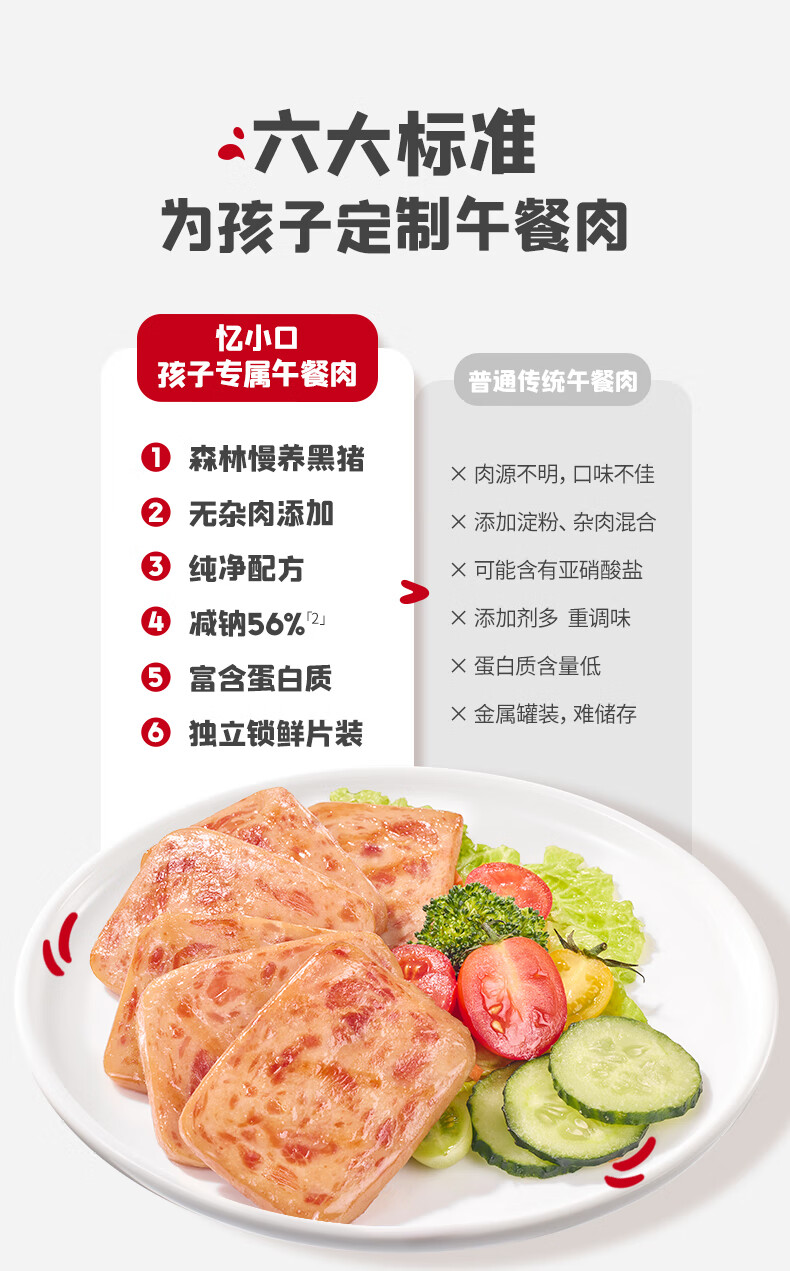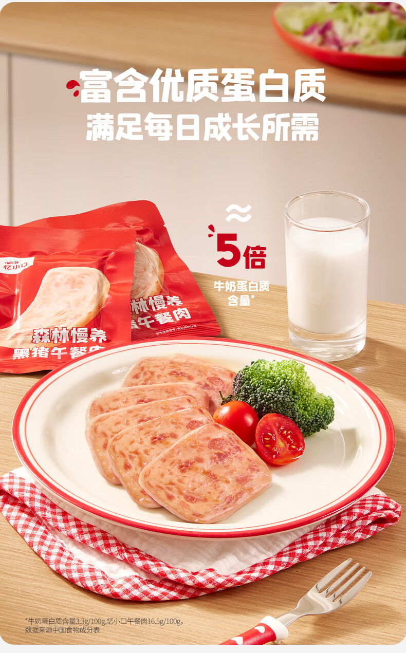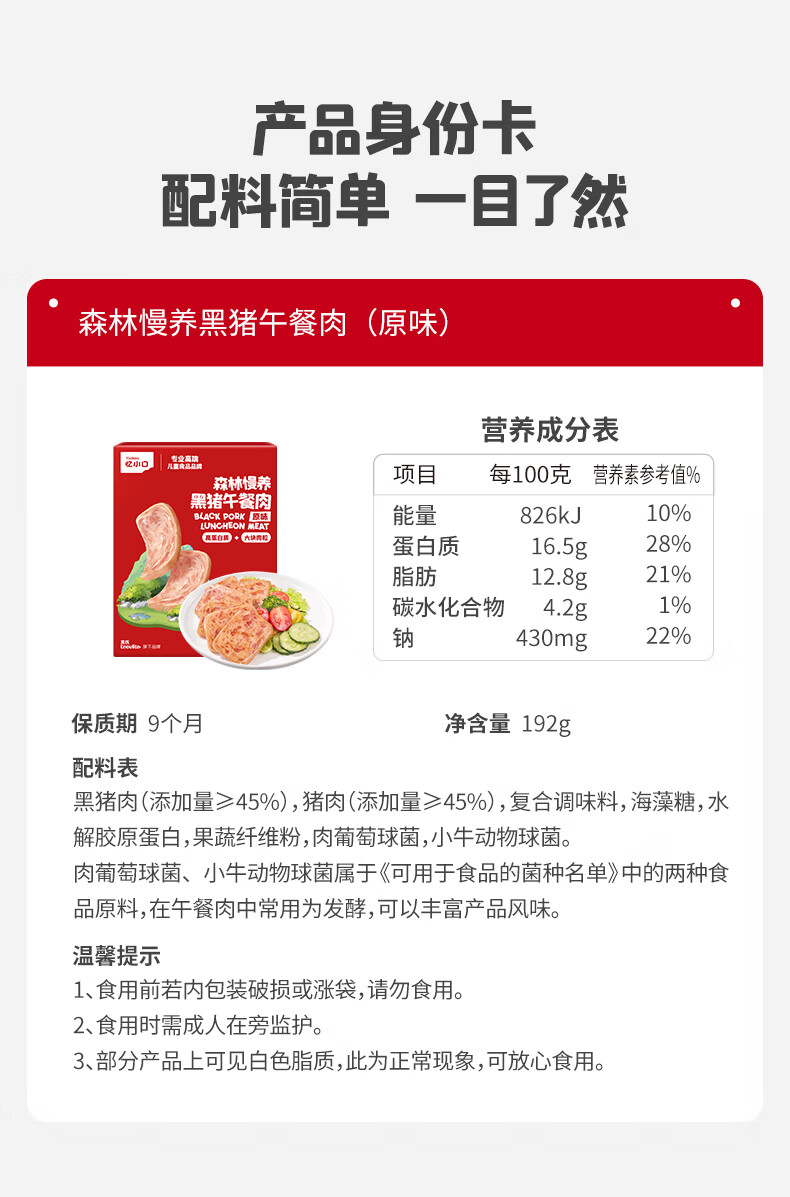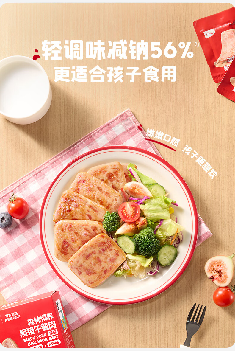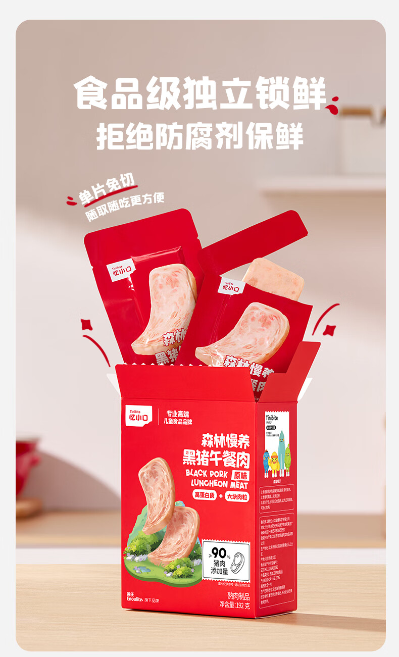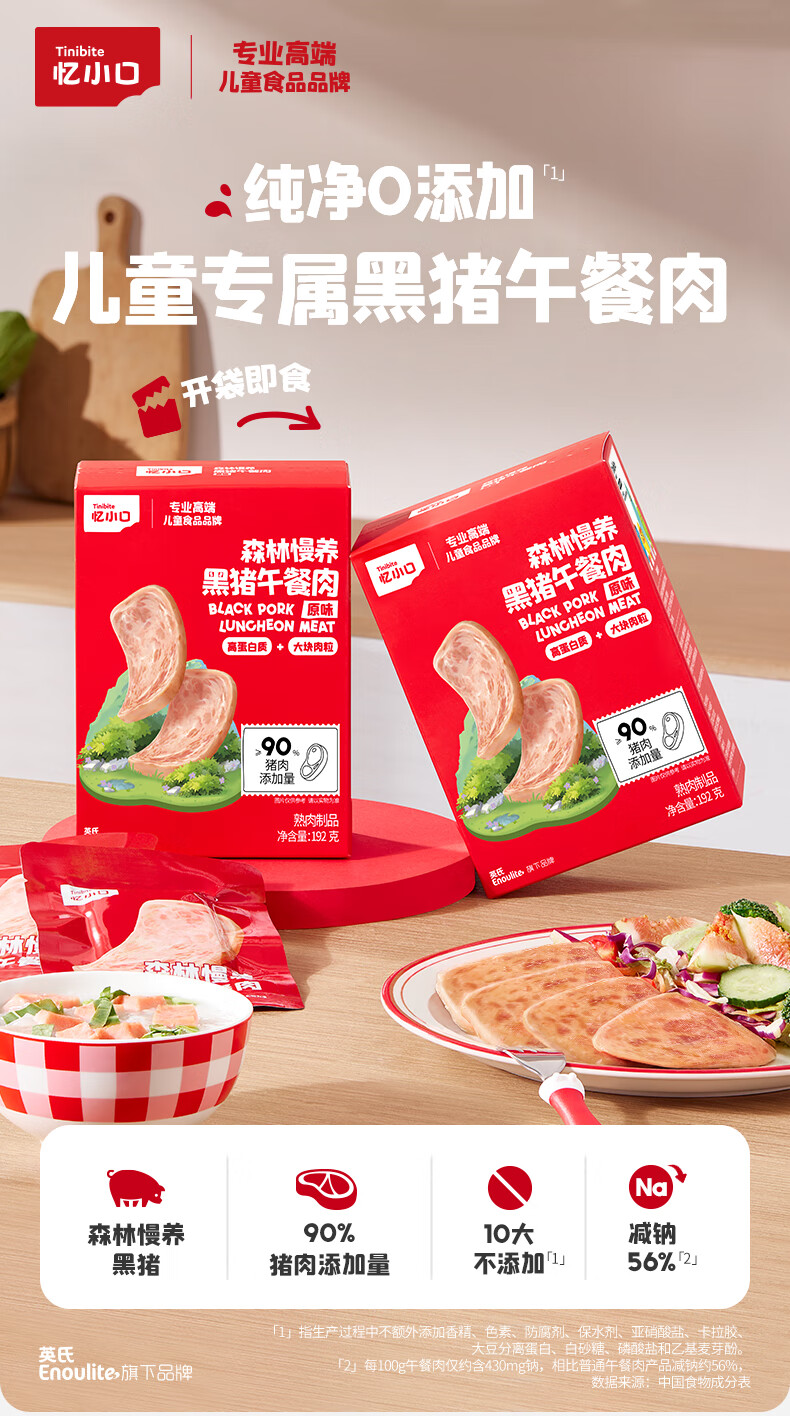 英氏(Engnice)忆小口儿童黑猪午餐肉独立包装0添加零食肉片192g 【≥90猪肉添加量】2盒