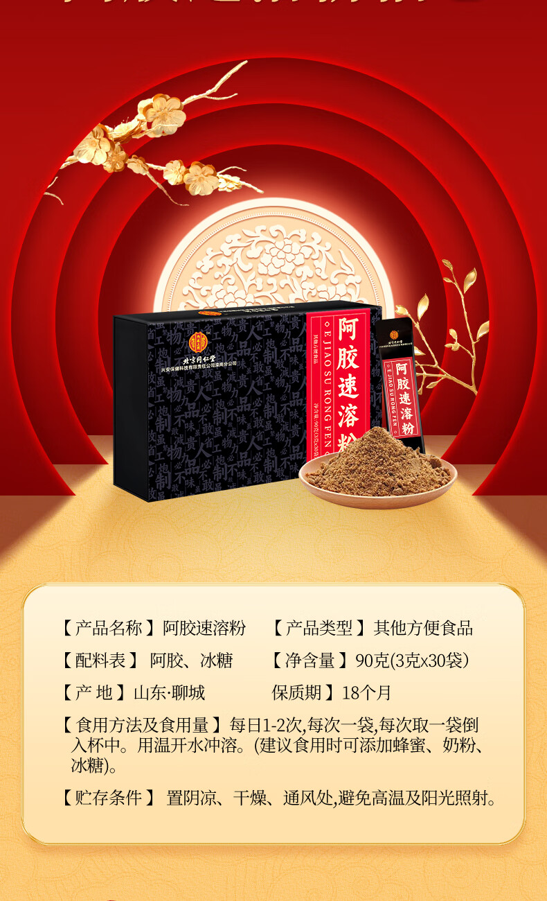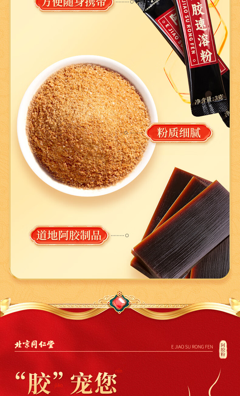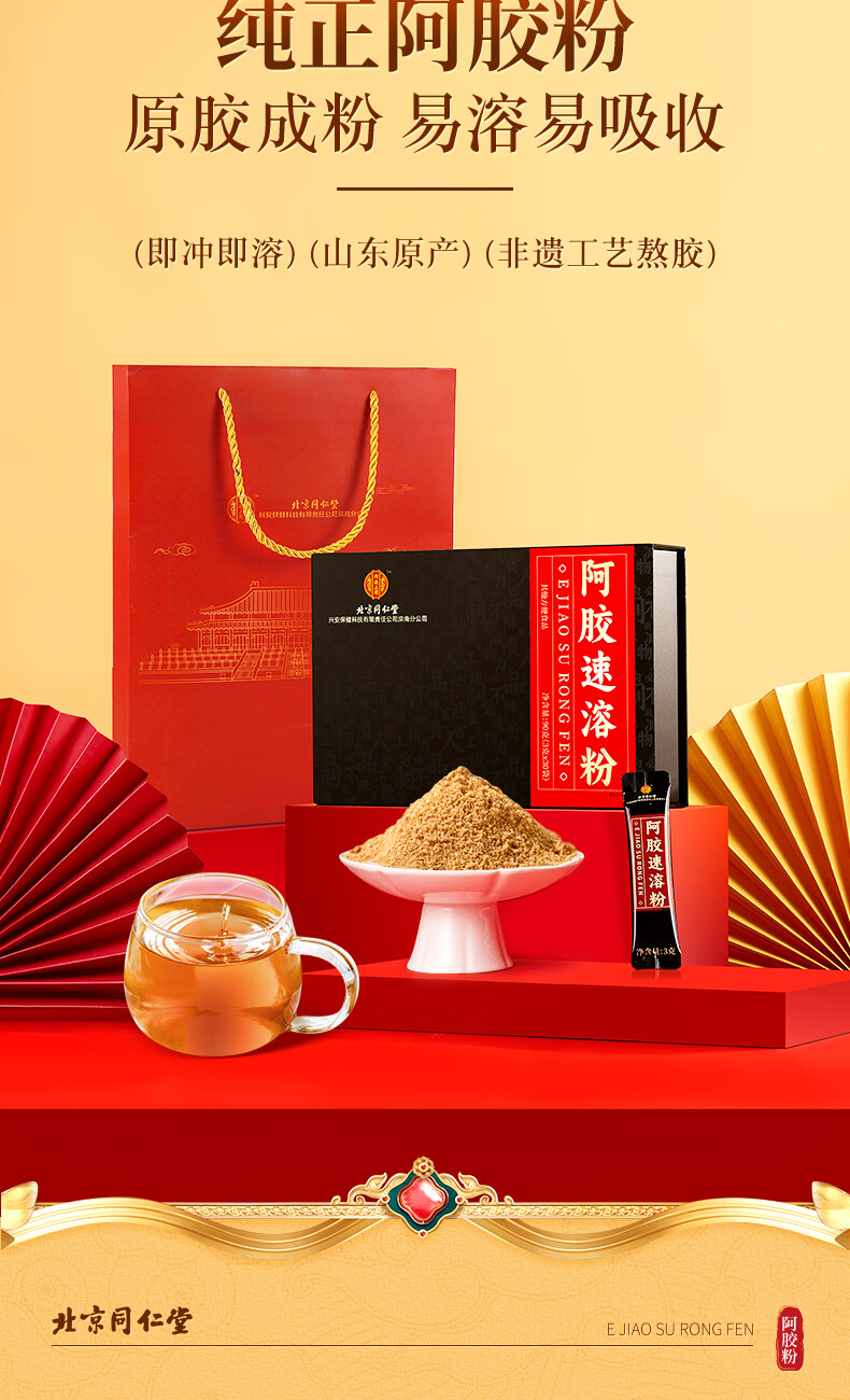 同仁堂阿胶速溶粉即食即冲送礼阿胶粉山东东阿县驴皮阿胶原粉礼盒装