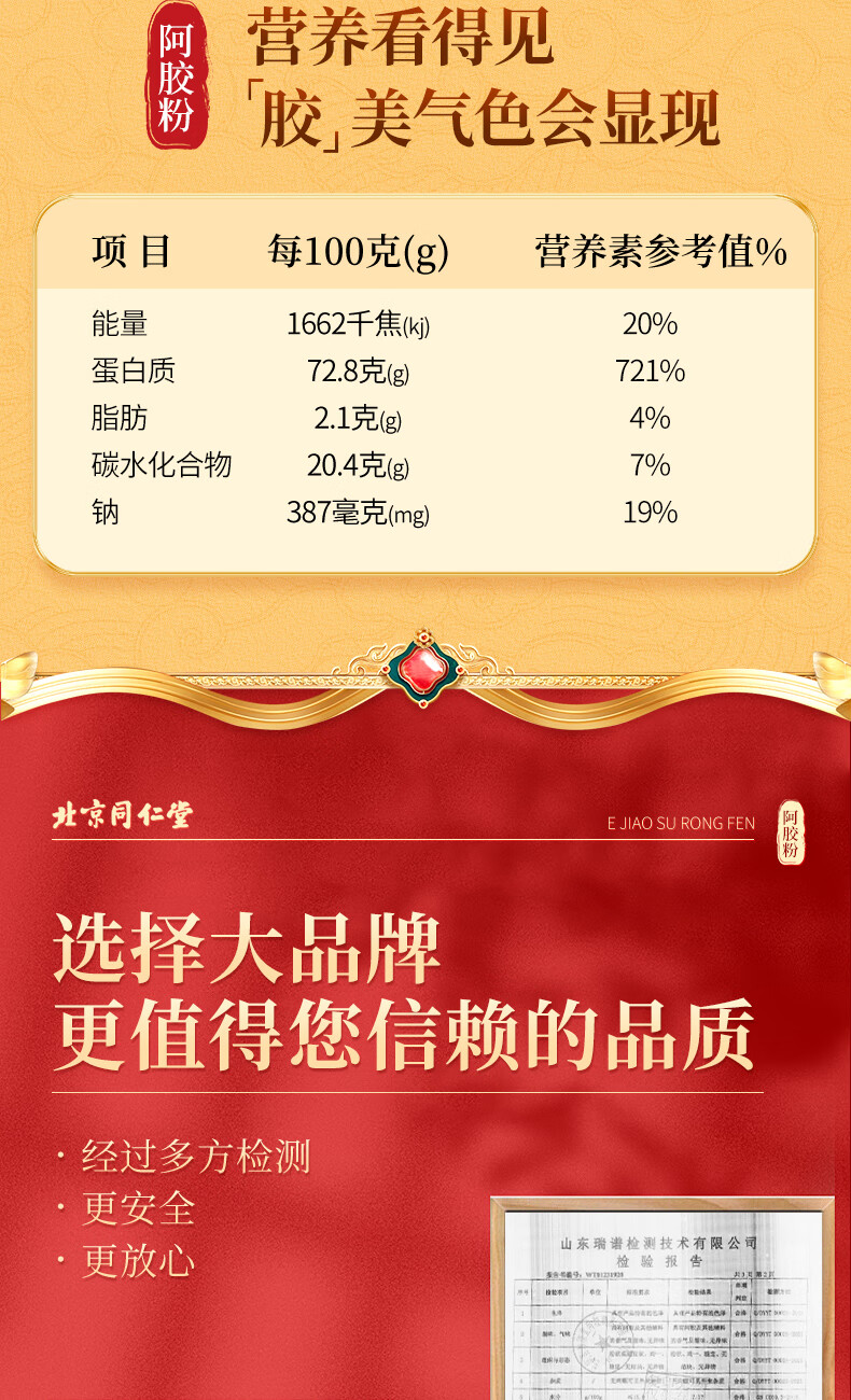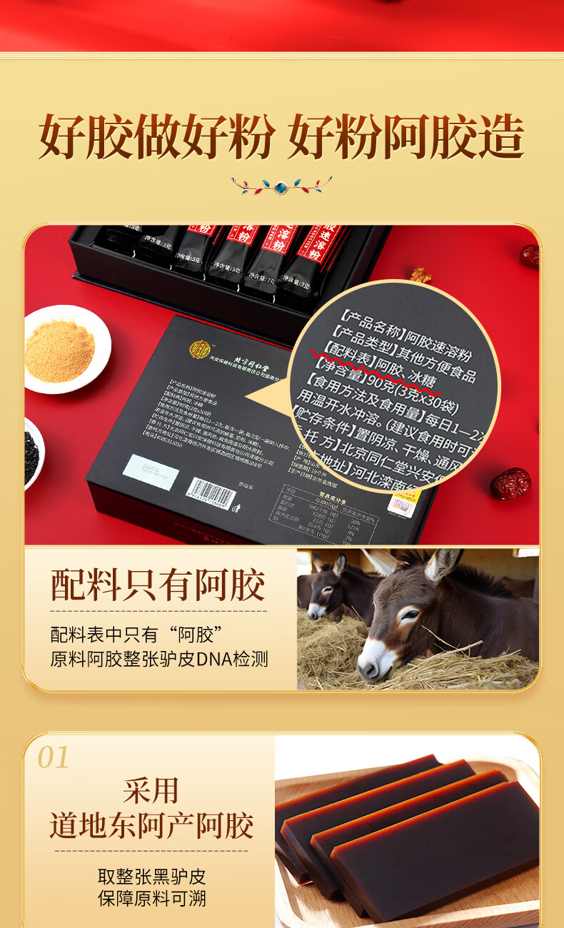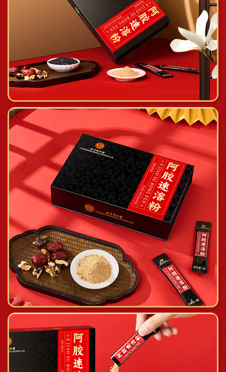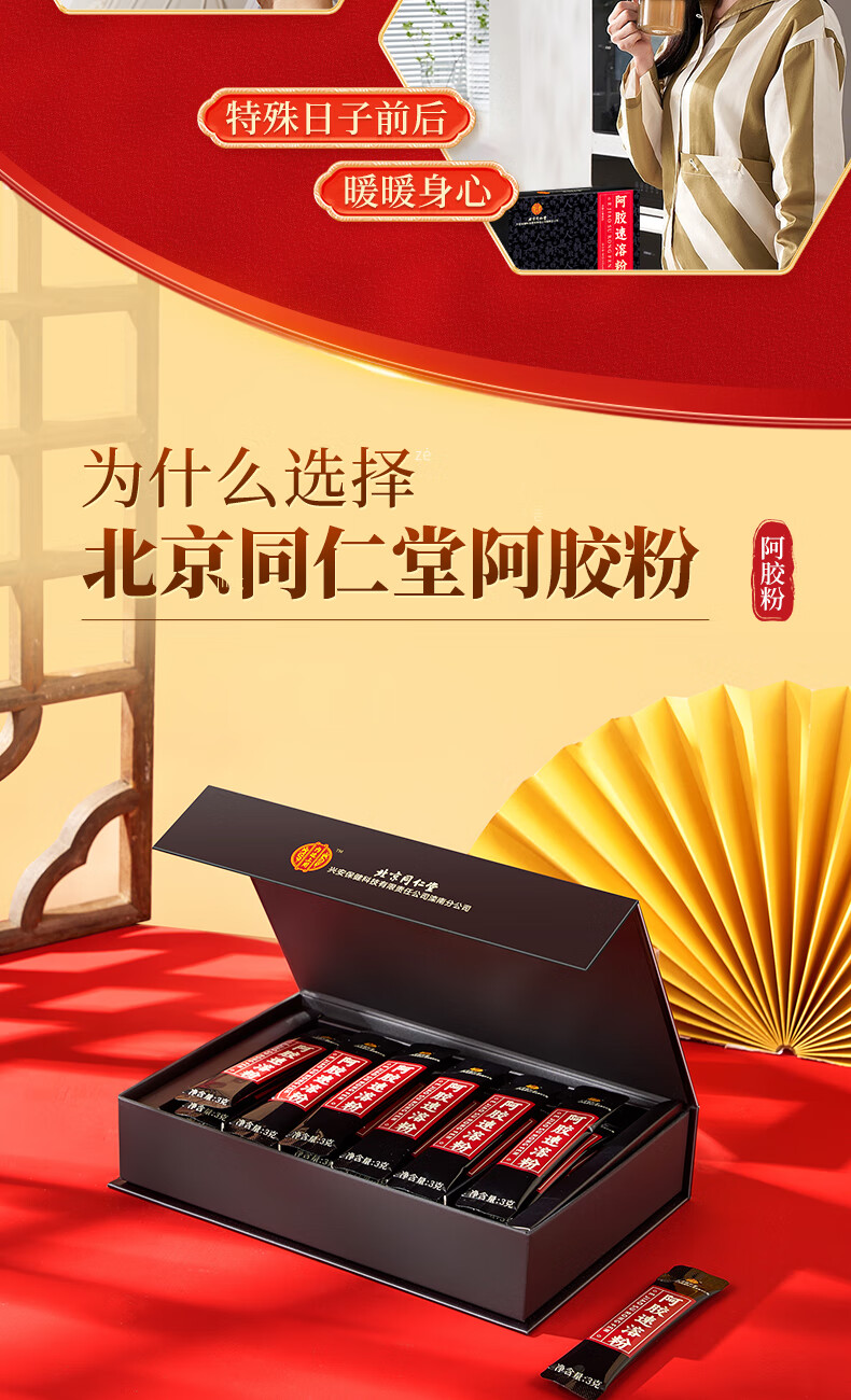 同仁堂阿胶速溶粉即食即冲送礼阿胶粉山东东阿县驴皮阿胶原粉礼盒装