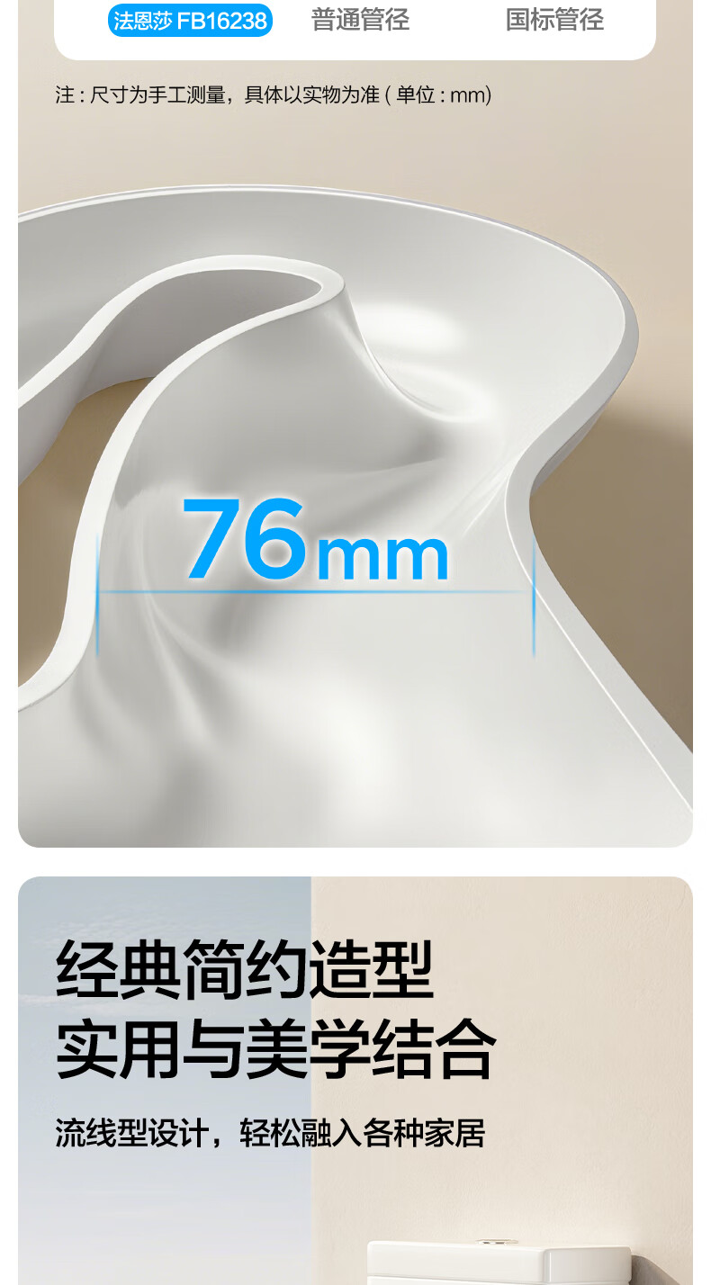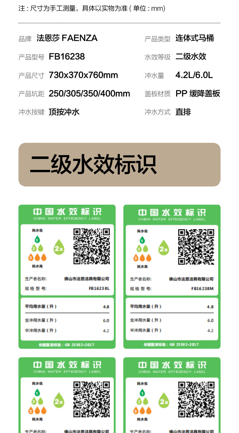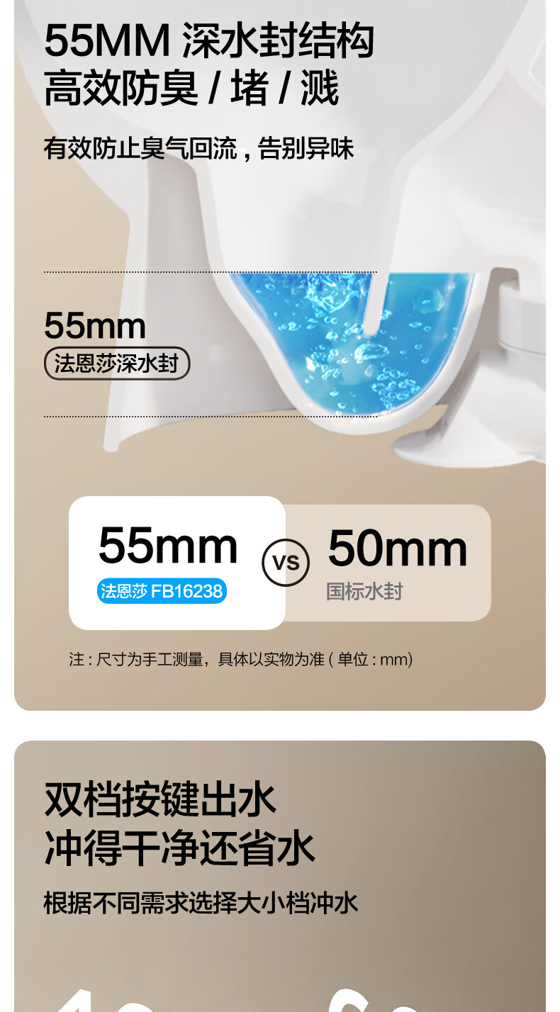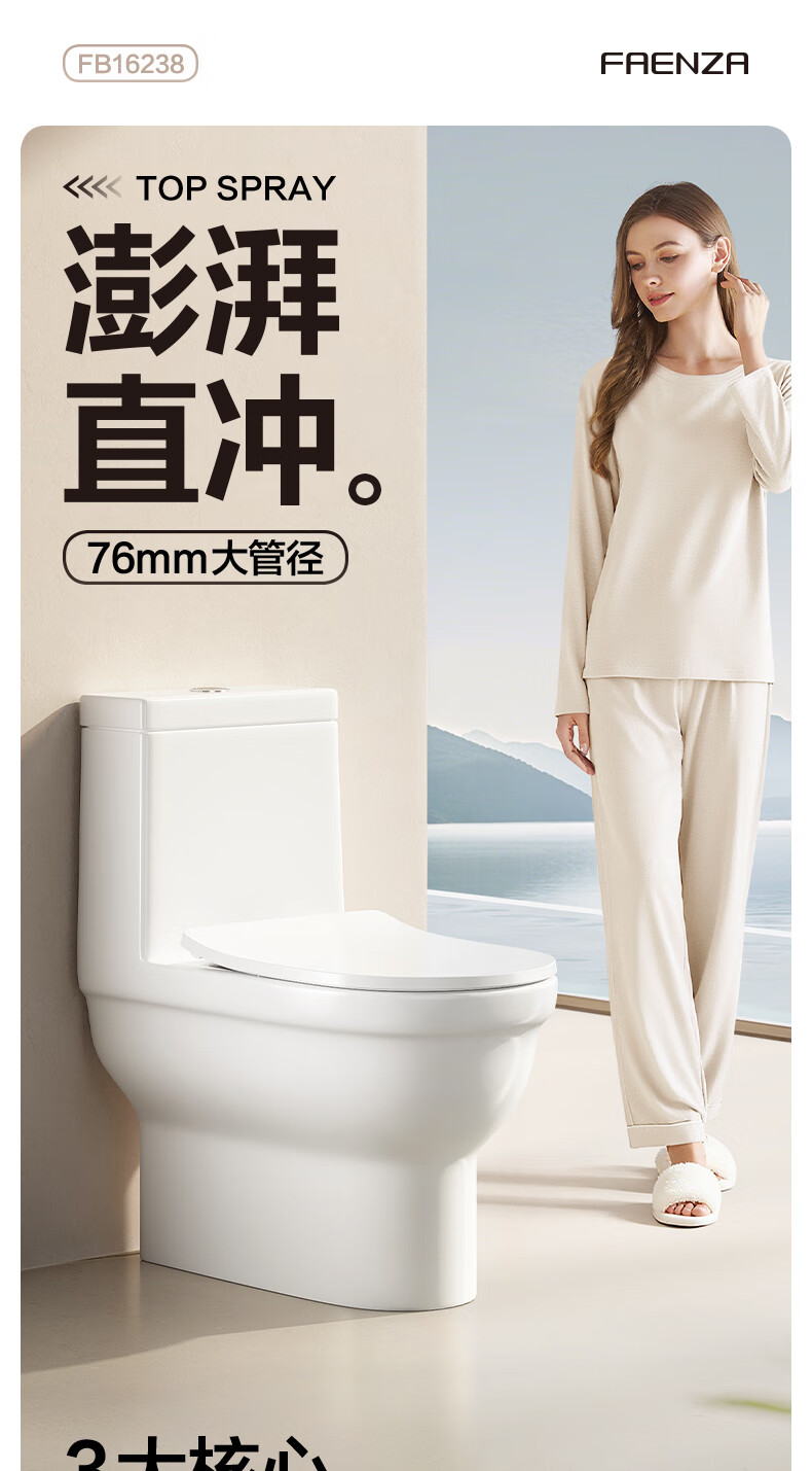 法恩莎(FAENZA)大口径大冲力直冲式落地普通马桶家用增压防臭超洁釉面缓降坐便器 FB16238 305/300mm 坑距(290-310以内适用)