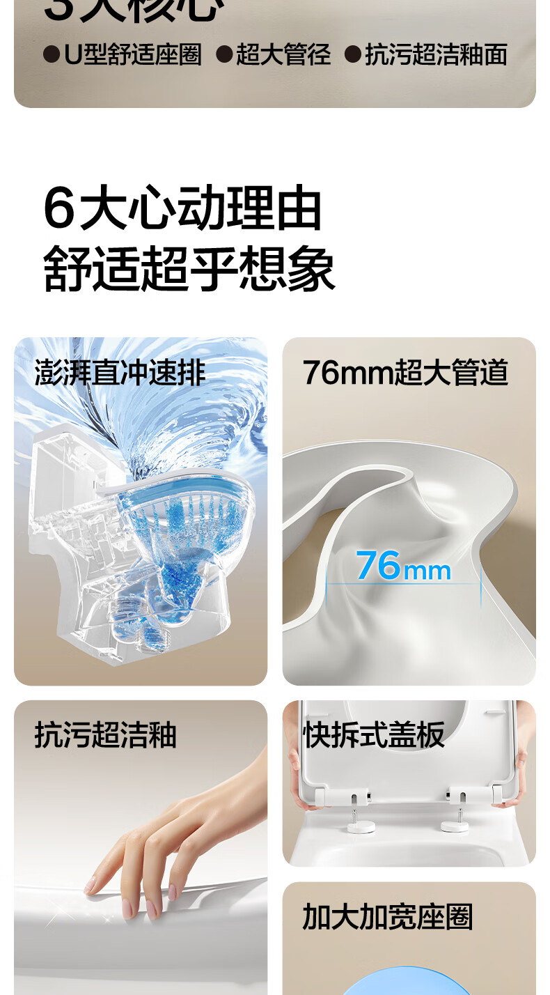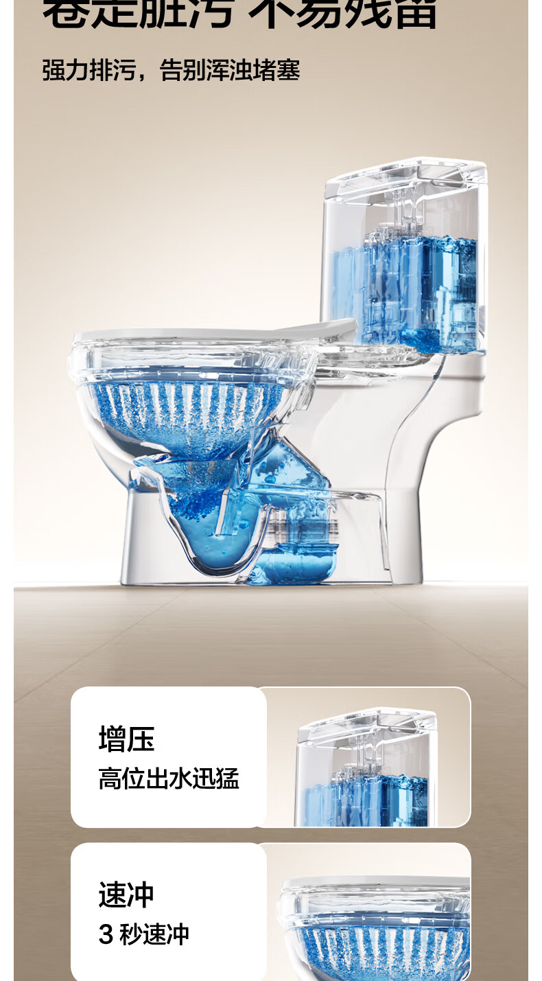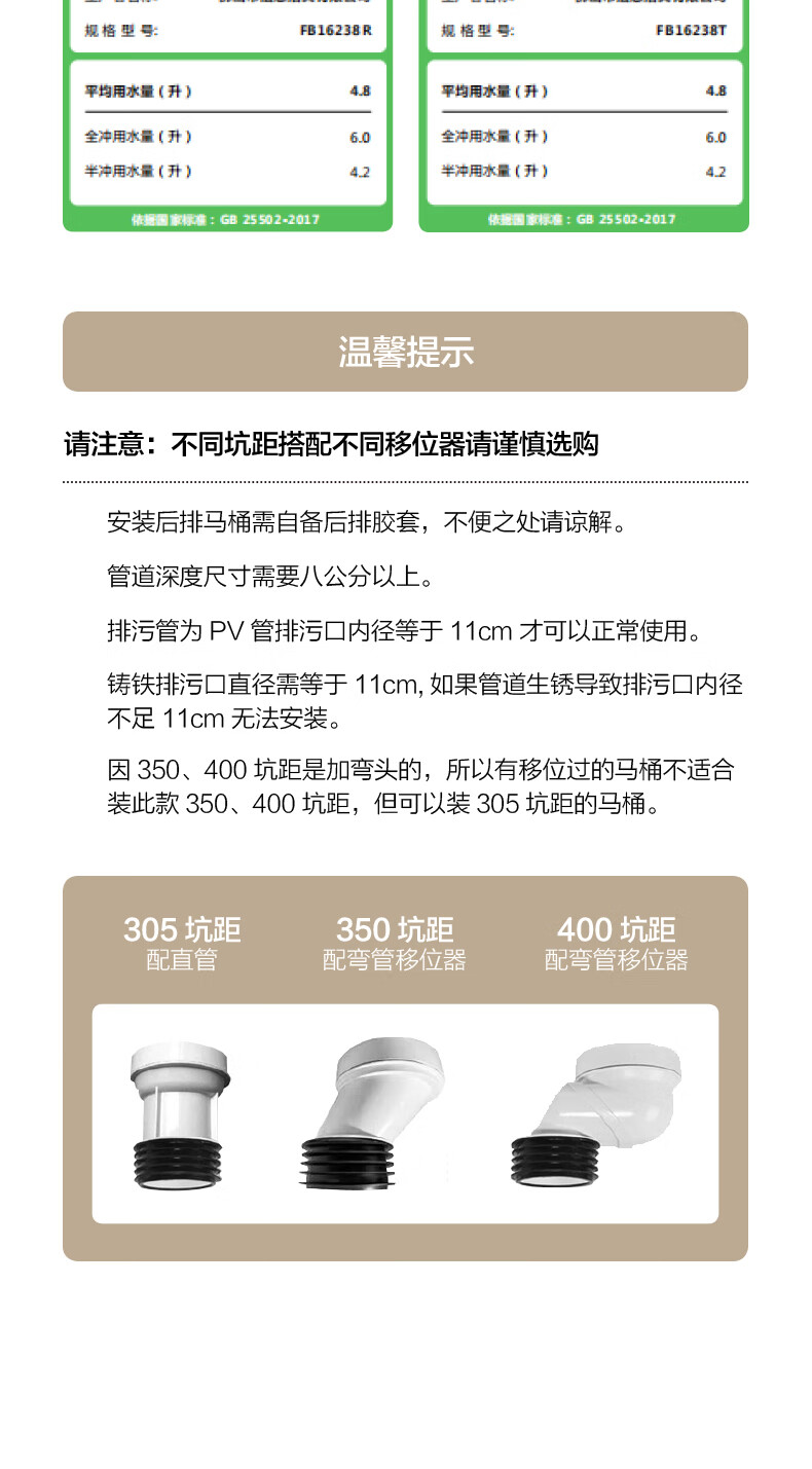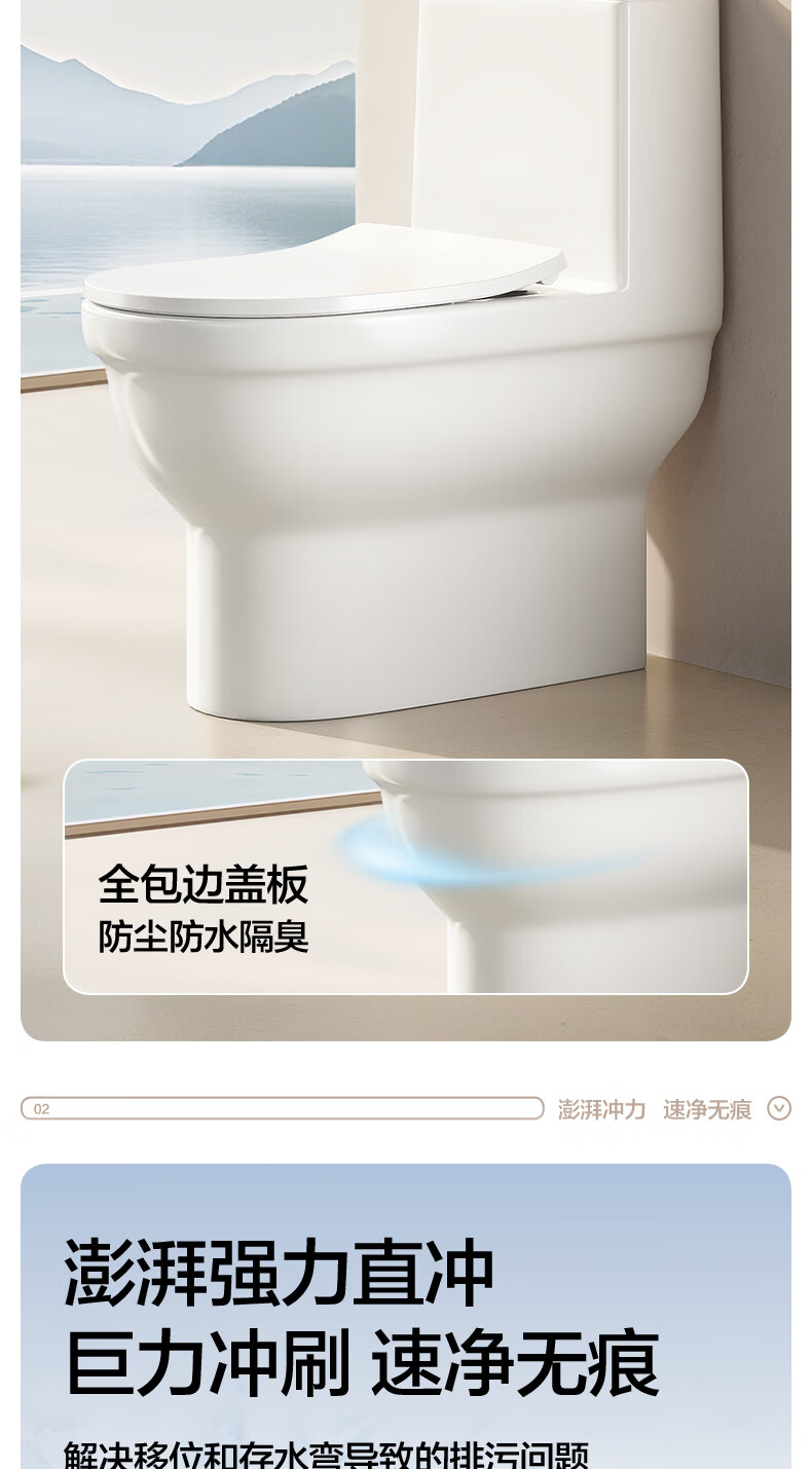 法恩莎(FAENZA)大口径大冲力直冲式落地普通马桶家用增压防臭超洁釉面缓降坐便器 FB16238 305/300mm 坑距(290-310以内适用)