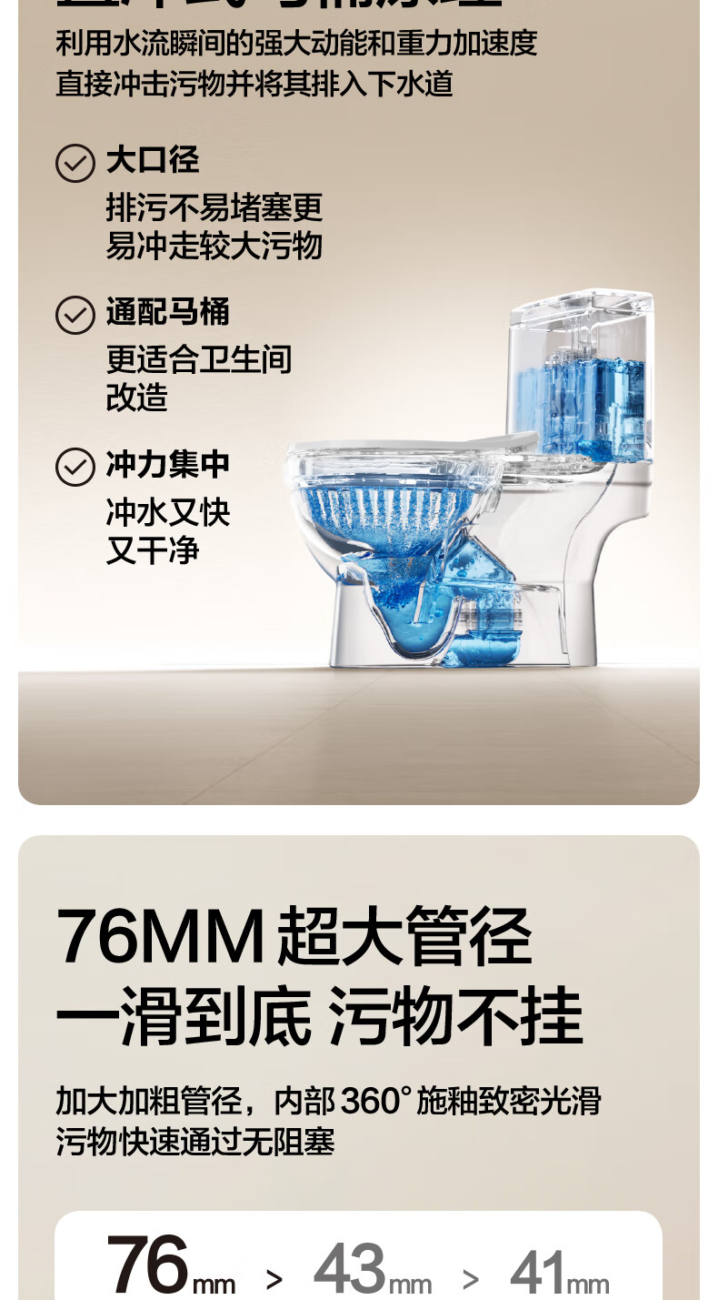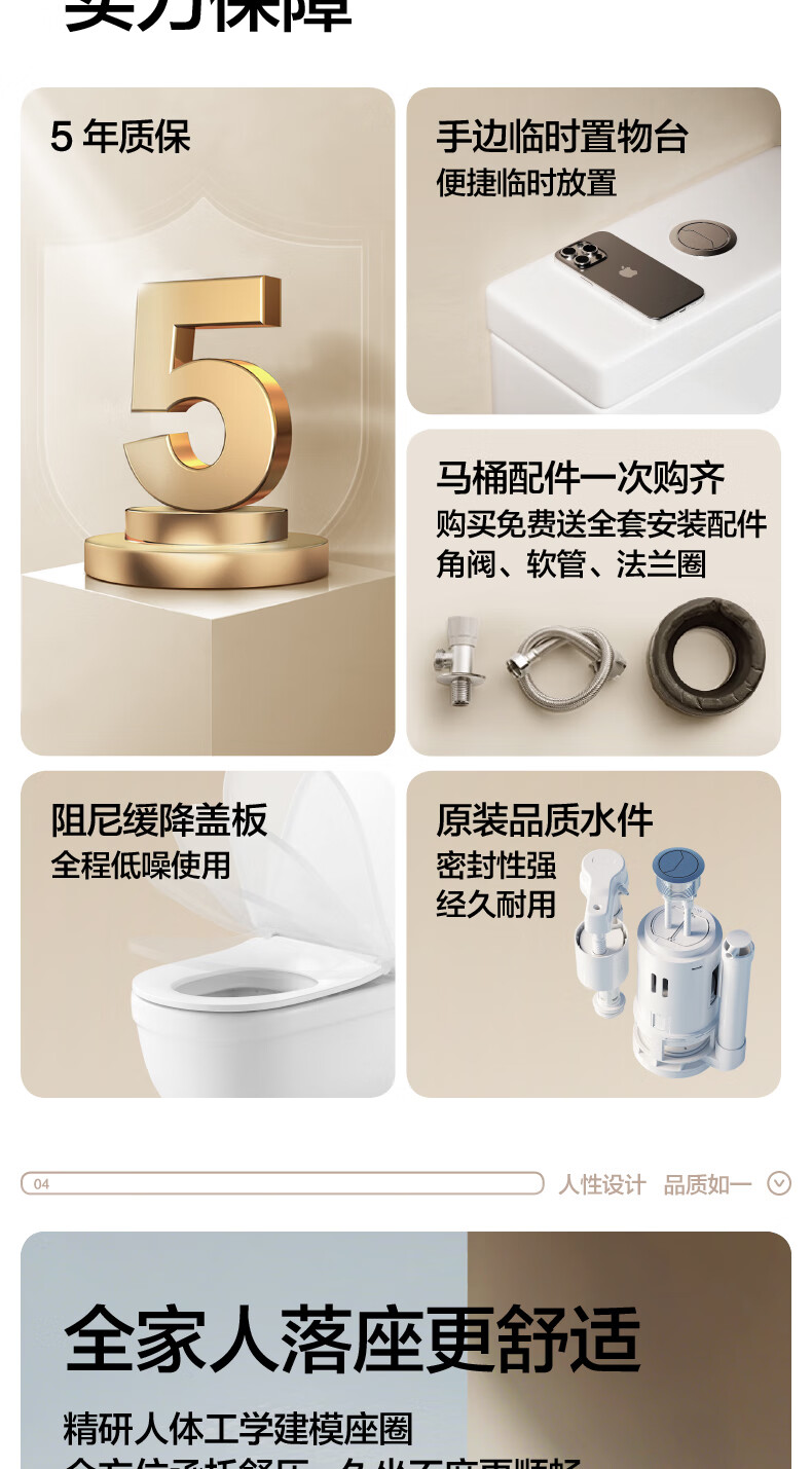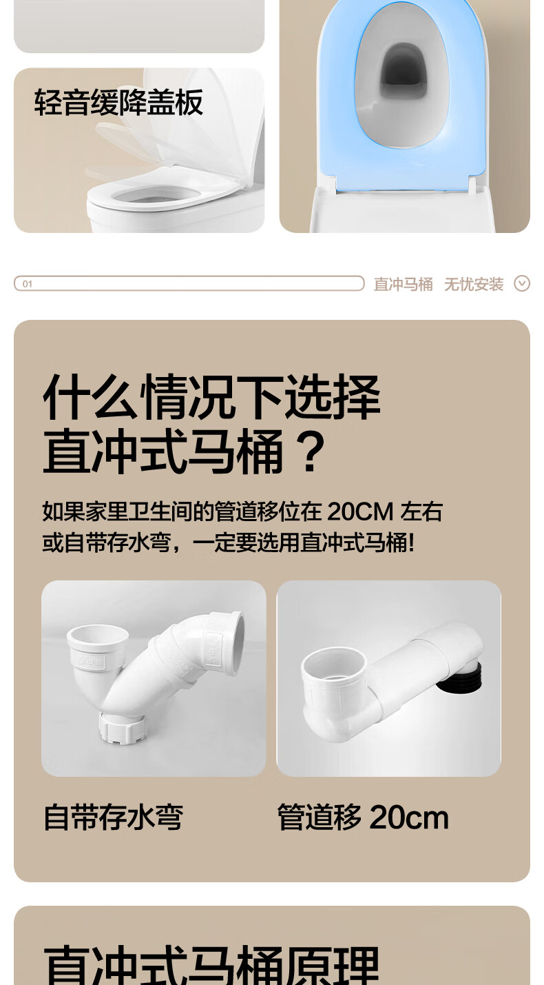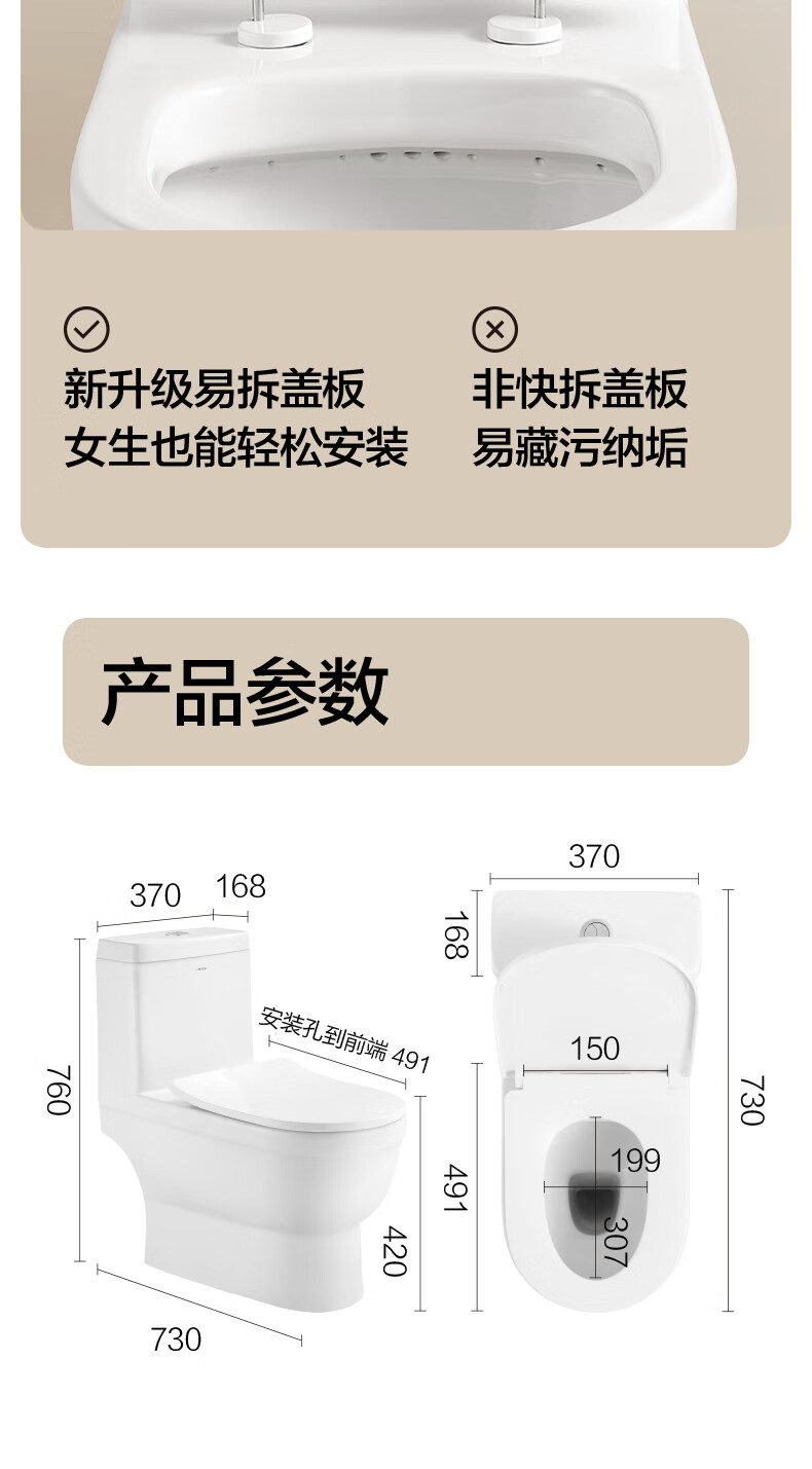 法恩莎(FAENZA)大口径大冲力直冲式落地普通马桶家用增压防臭超洁釉面缓降坐便器 FB16238 305/300mm 坑距(290-310以内适用)