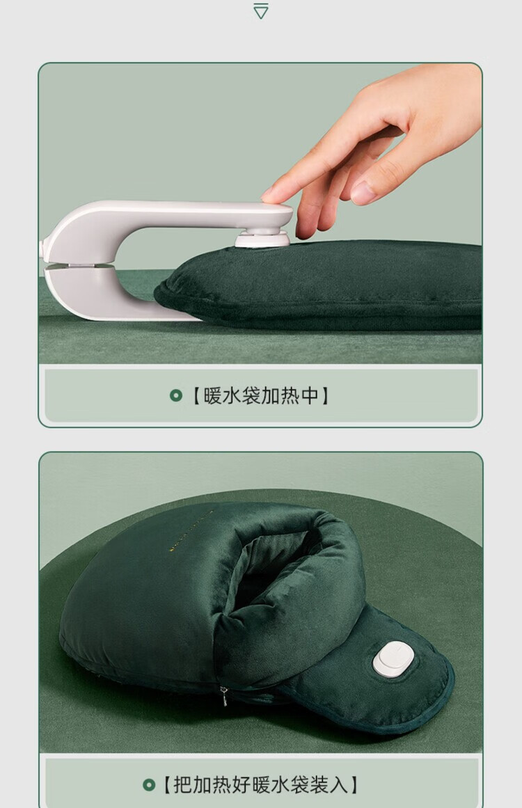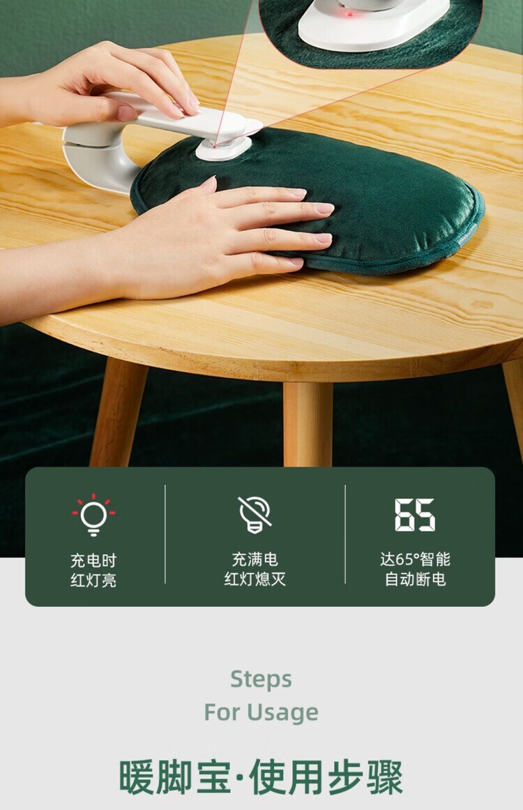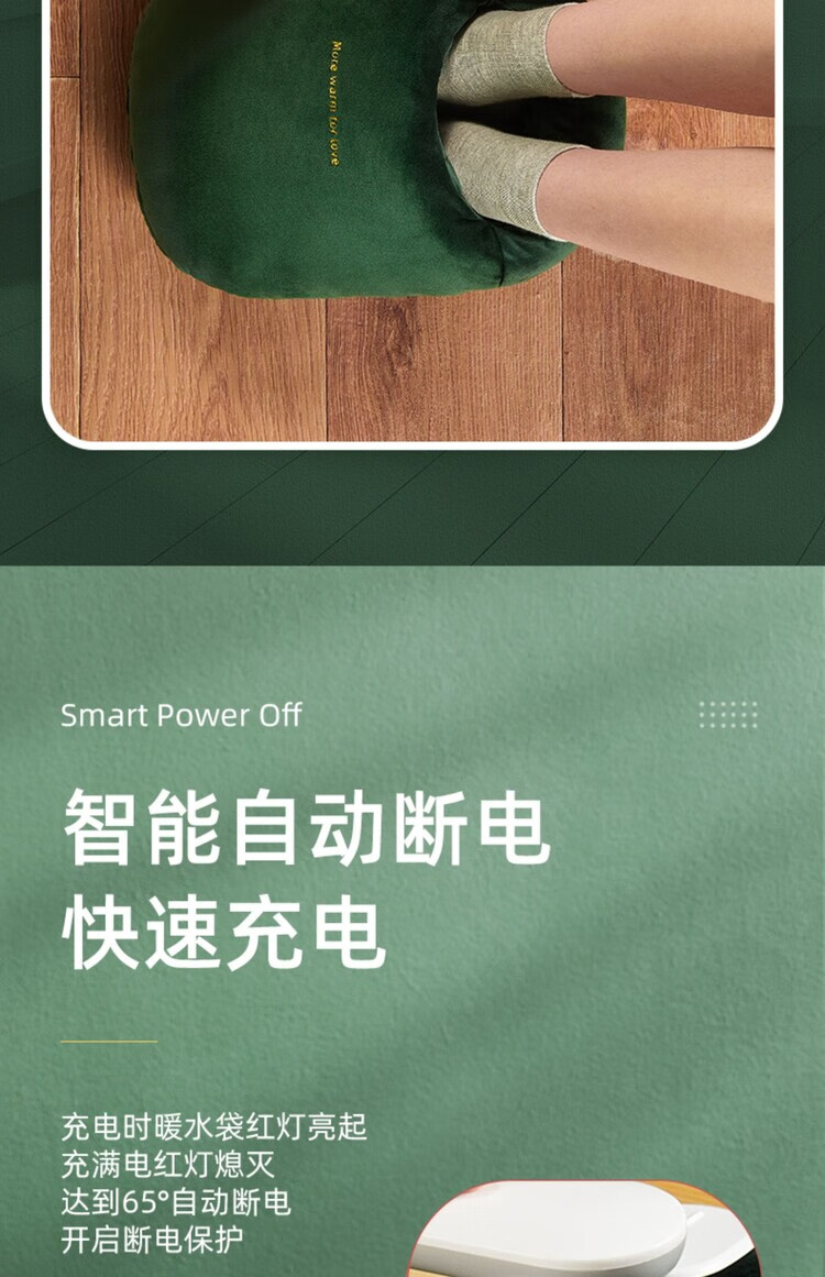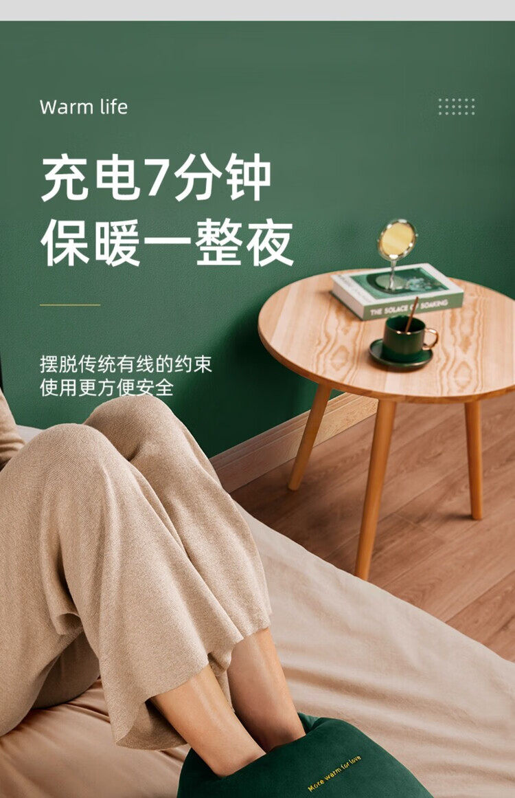 AILUKI日本暖脚宝床上睡觉被窝用充电热水袋取暖足冬天保暖捂热敷暖水袋 叶子绿【持续暖脚8h】高密度丝绒 可拆洗