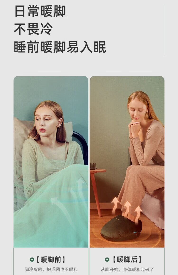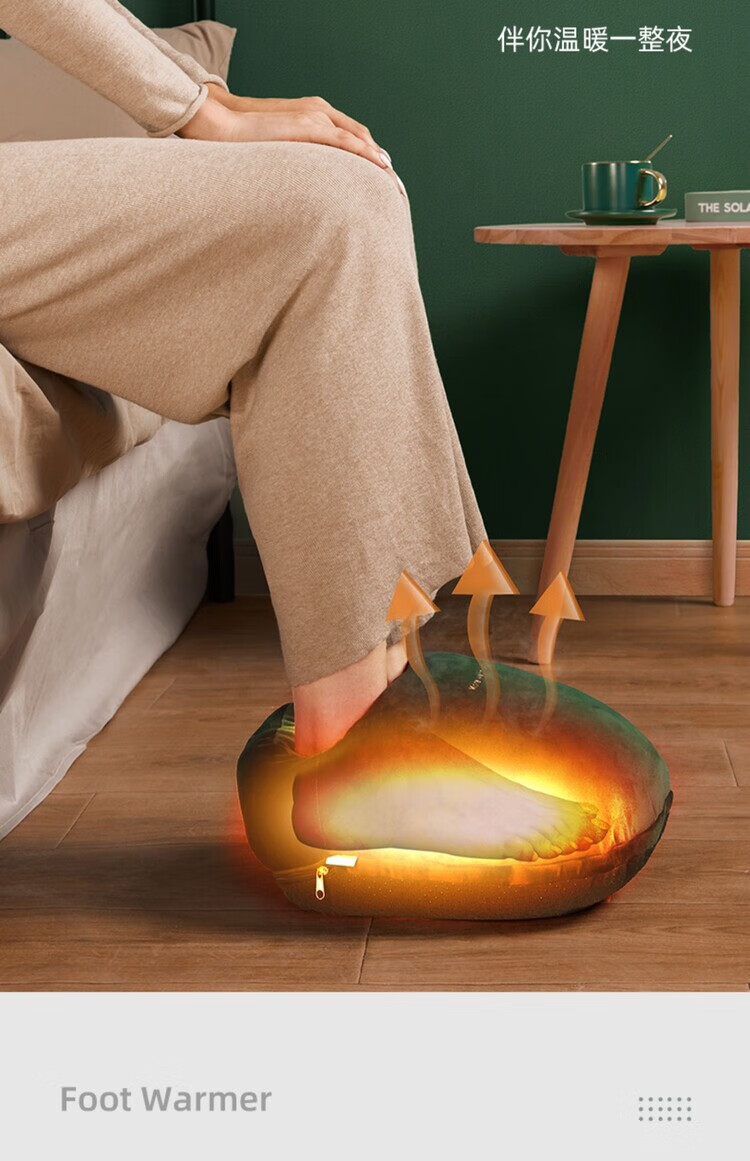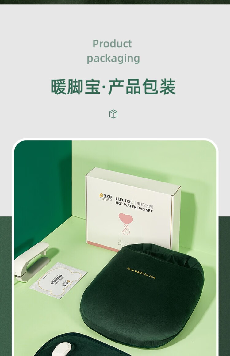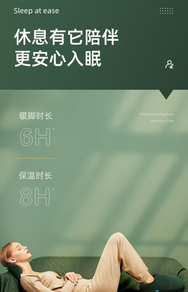 AILUKI日本暖脚宝床上睡觉被窝用充电热水袋取暖足冬天保暖捂热敷暖水袋 叶子绿【持续暖脚8h】高密度丝绒 可拆洗