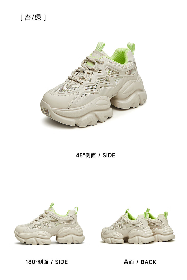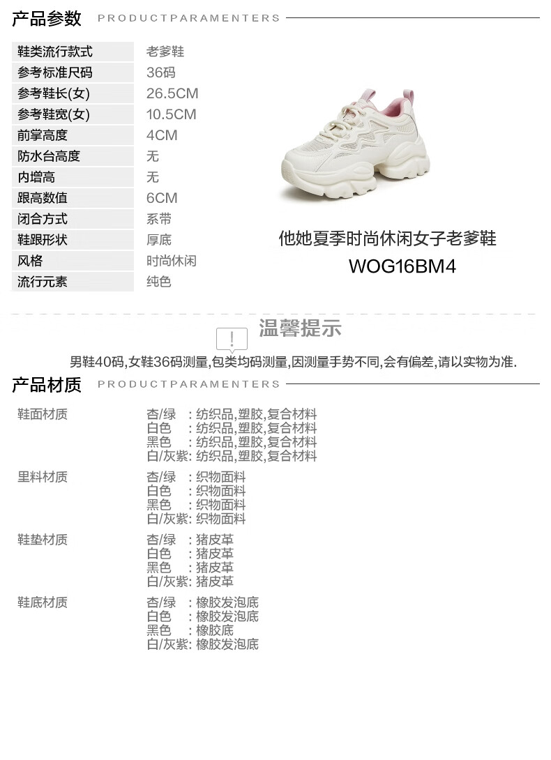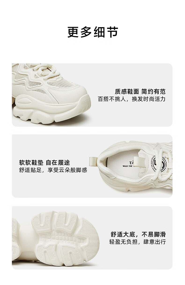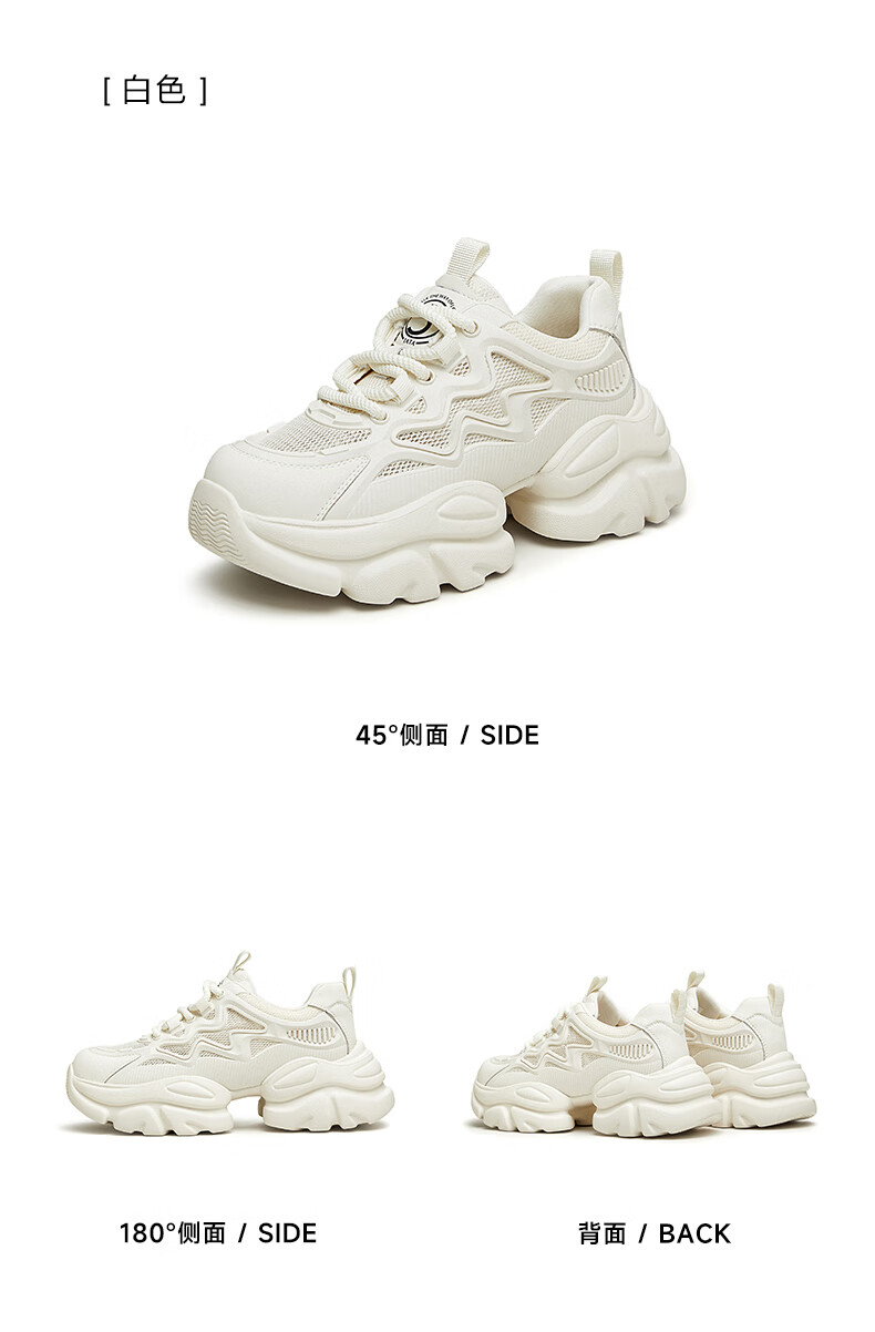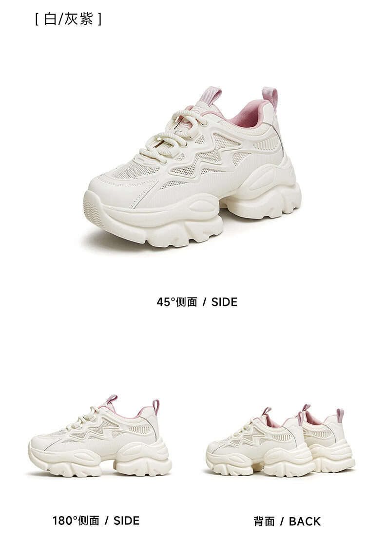 他她春秋厚底透气老爹鞋女鞋网面增高运动鞋新款WOG16BM4白/灰紫 37